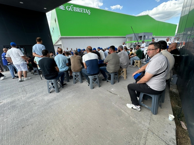 Grevdeki Gübretaş emekçileri bir yandan alınterinin karşılığını alabilmek için mücadele ederken diğer taraftan sendikamız Avukatı İrfan Taşkın tarafından grev konularında bilgilendiriliyor.