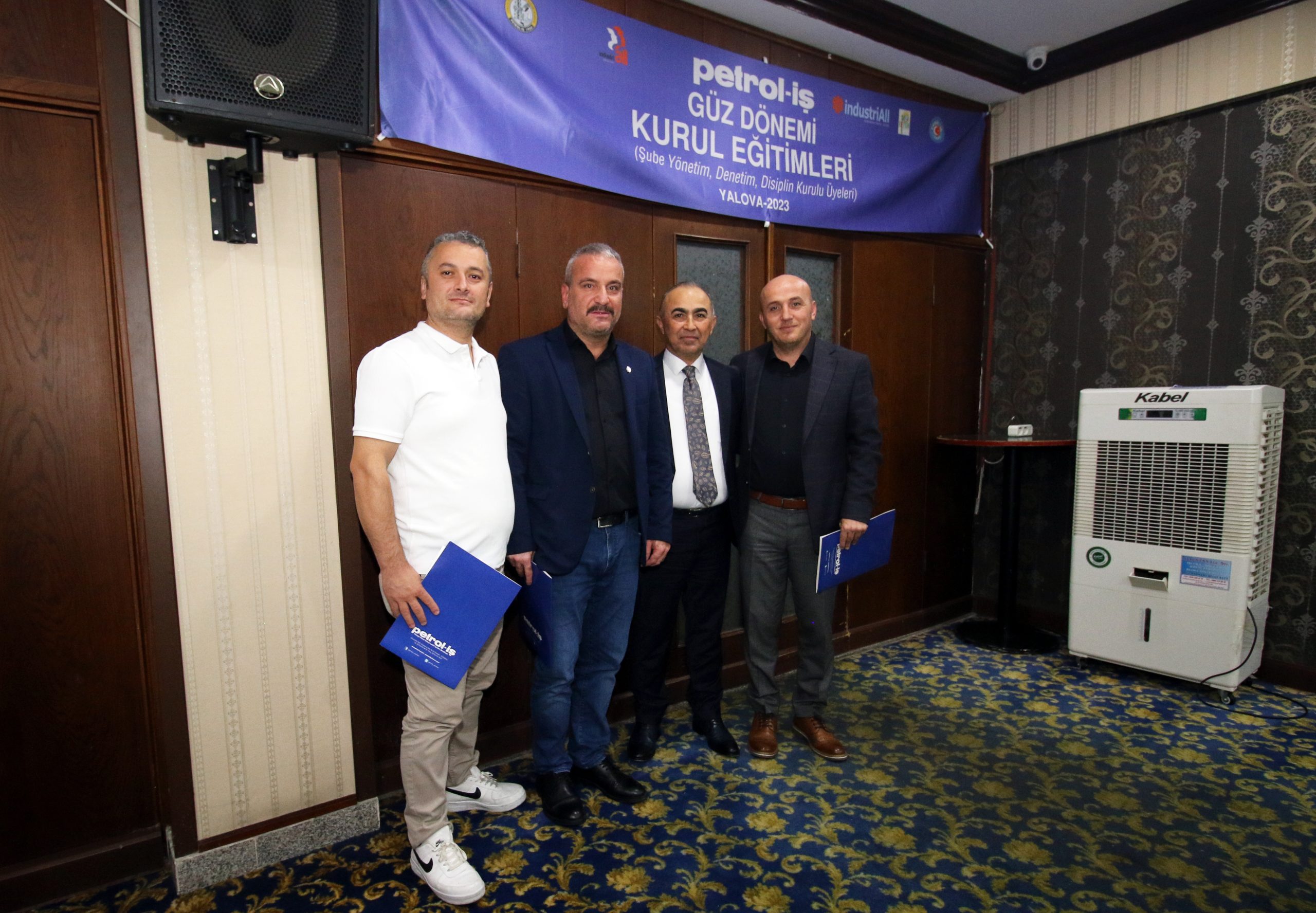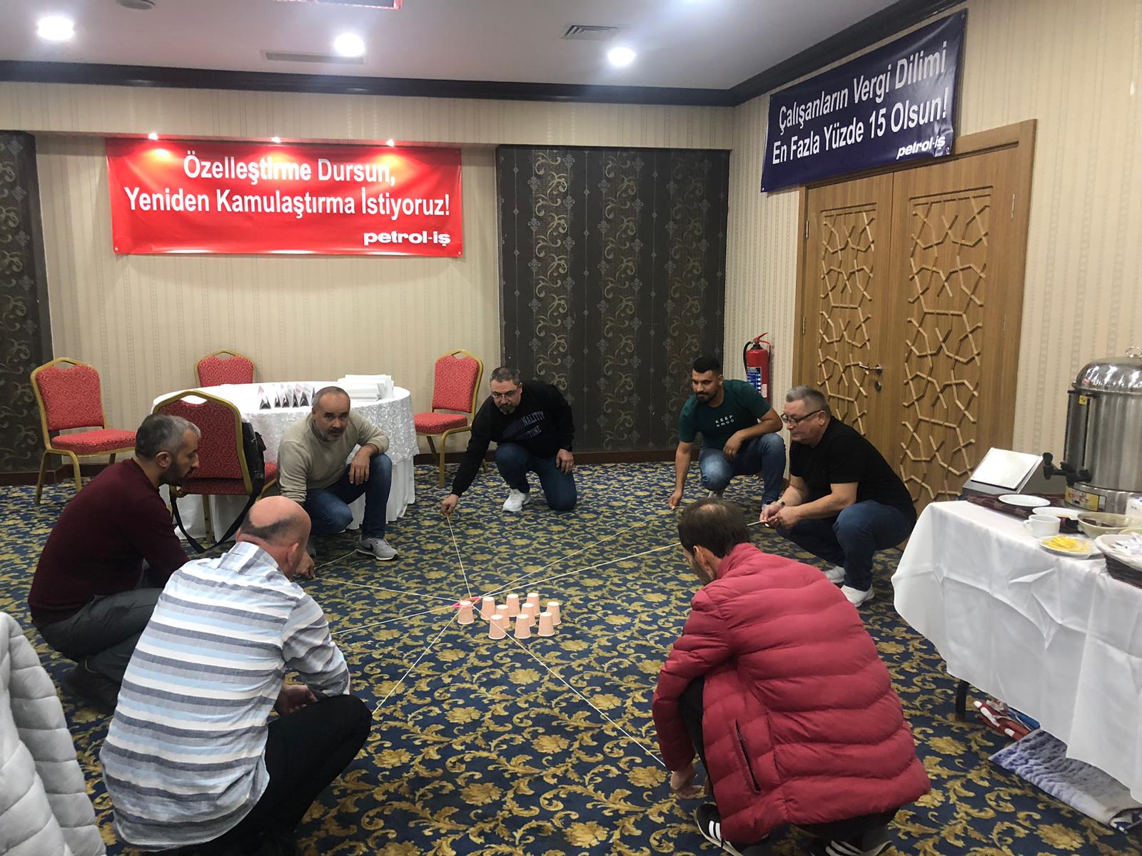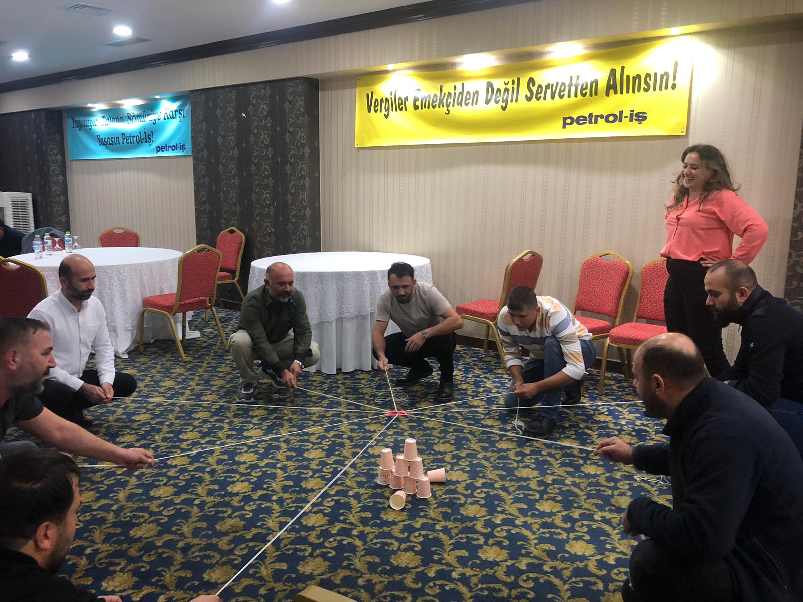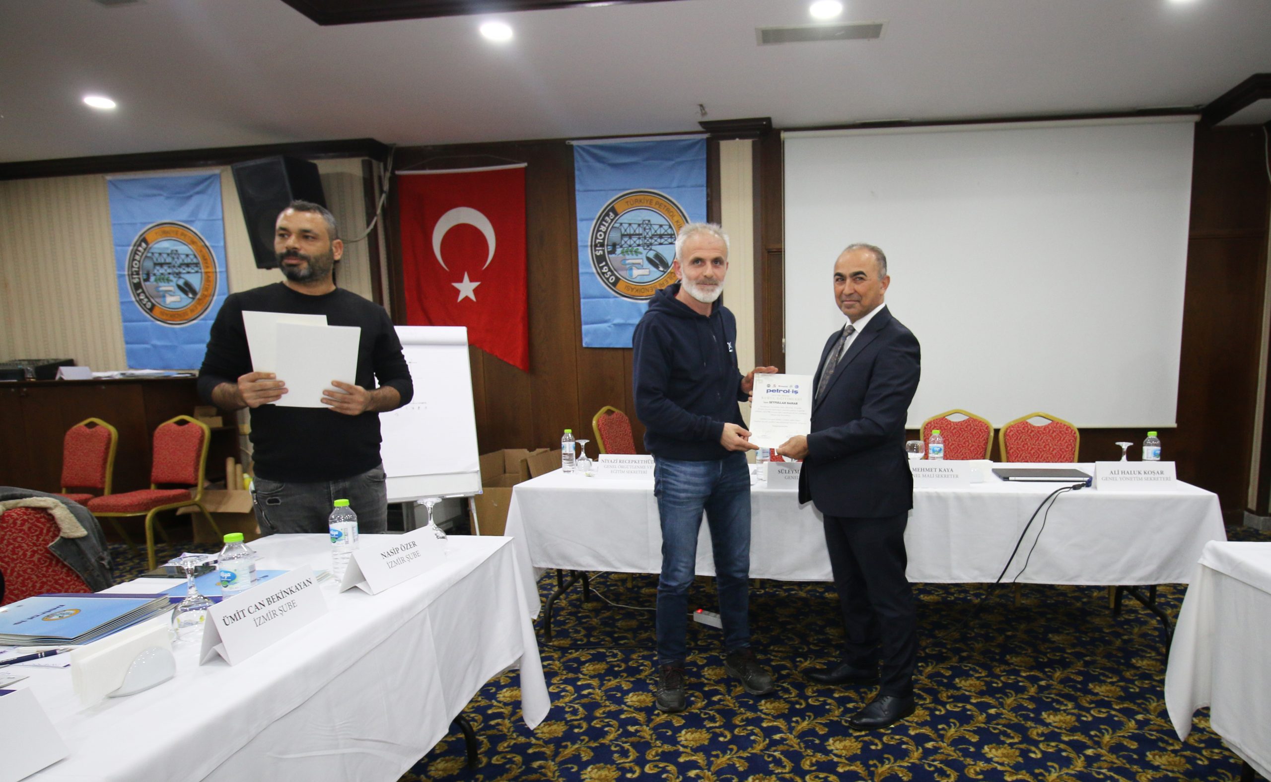 Sendikamız 2023 yılı Güz Dönemi Kurul Eğitimlerinin üçüncü grubu 23 Kasım Perşembe günü yapılan eğitimle sona erdi. Böylelikle üç farklı tarihte yapılan güz dönemi eğitimleri başarıyla sonuçlandı. Dün yapılan eğitimin son saatinde sendikamız Merkez Yönetim Kurulu Üyeleri şube disiplin kurulu üyeleri ile bir araya geldi. Yaklaşık 2 saat süren görüşmede Genel Merkez Yönetimi Petrol-İş’in idari ve örgütsel durumuna ilişkin bilgi verdi, gelen soruları yanıtladılar. Toplantı sertifika töreni ve toplu fotoğraf çekiminin ardından sona erdi.