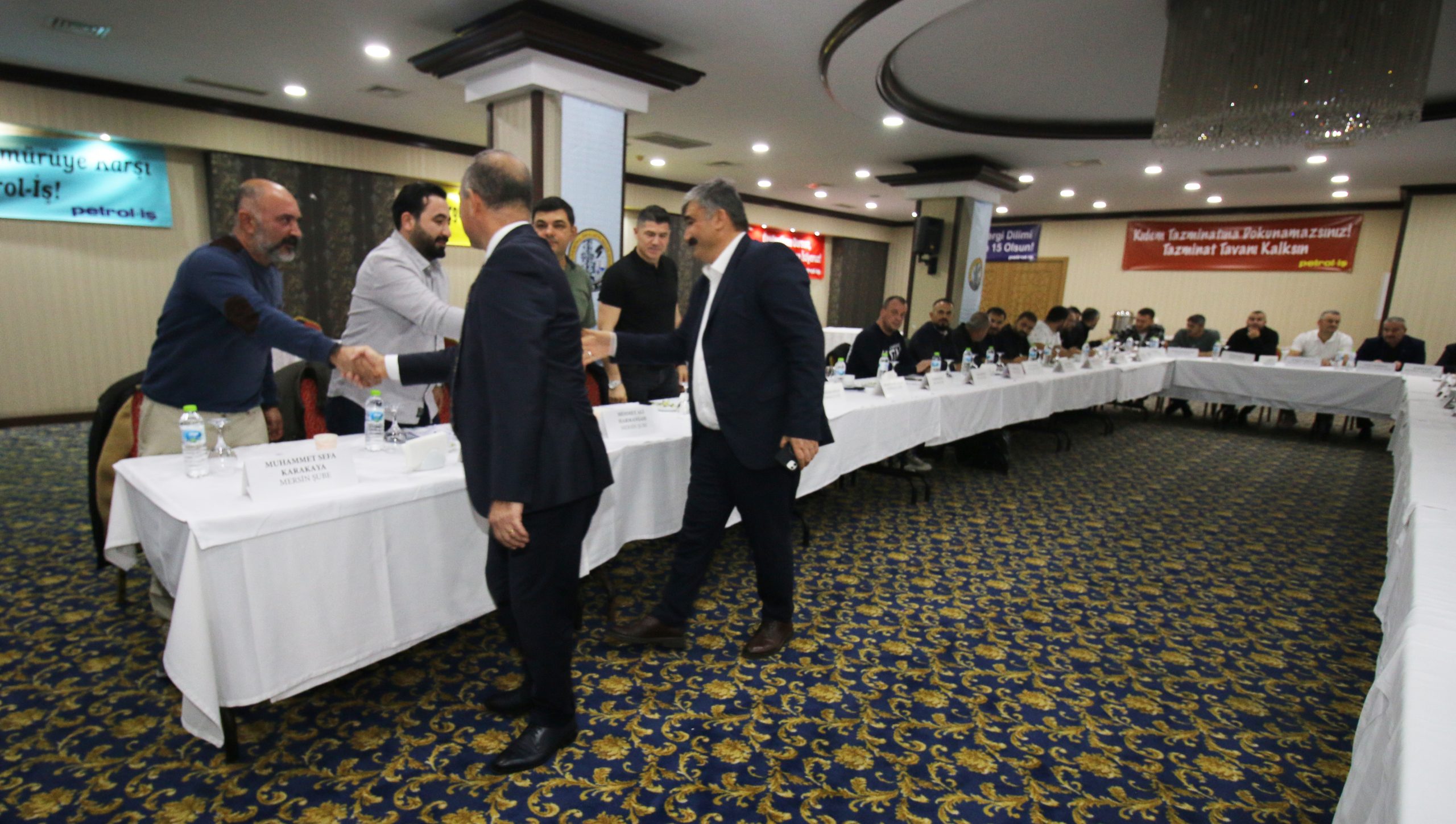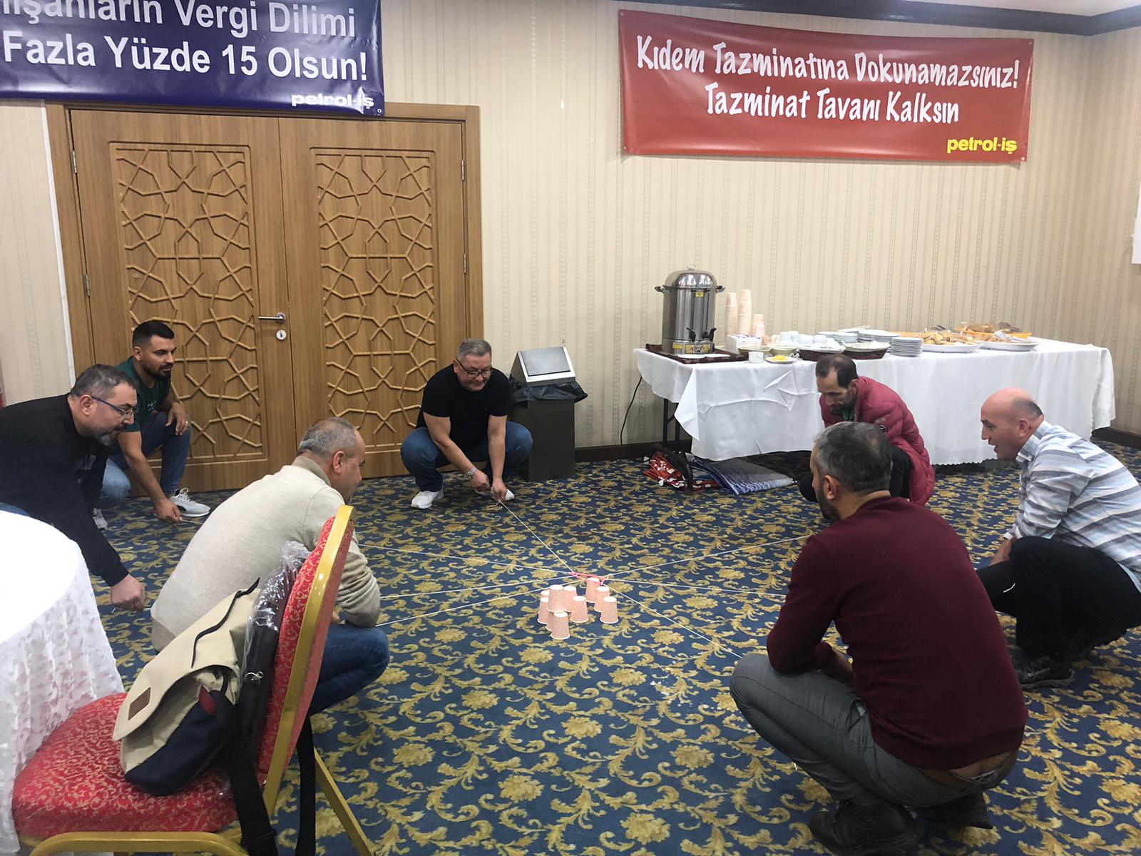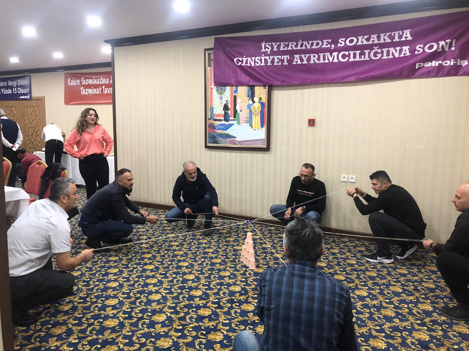 Sendikamız 2023 yılı Güz Dönemi Kurul Eğitimlerinin üçüncü grubu 23 Kasım Perşembe günü yapılan eğitimle sona erdi. Böylelikle üç farklı tarihte yapılan güz dönemi eğitimleri başarıyla sonuçlandı. Dün yapılan eğitimin son saatinde sendikamız Merkez Yönetim Kurulu Üyeleri şube disiplin kurulu üyeleri ile bir araya geldi. Yaklaşık 2 saat süren görüşmede Genel Merkez Yönetimi Petrol-İş’in idari ve örgütsel durumuna ilişkin bilgi verdi, gelen soruları yanıtladılar. Toplantı sertifika töreni ve toplu fotoğraf çekiminin ardından sona erdi.