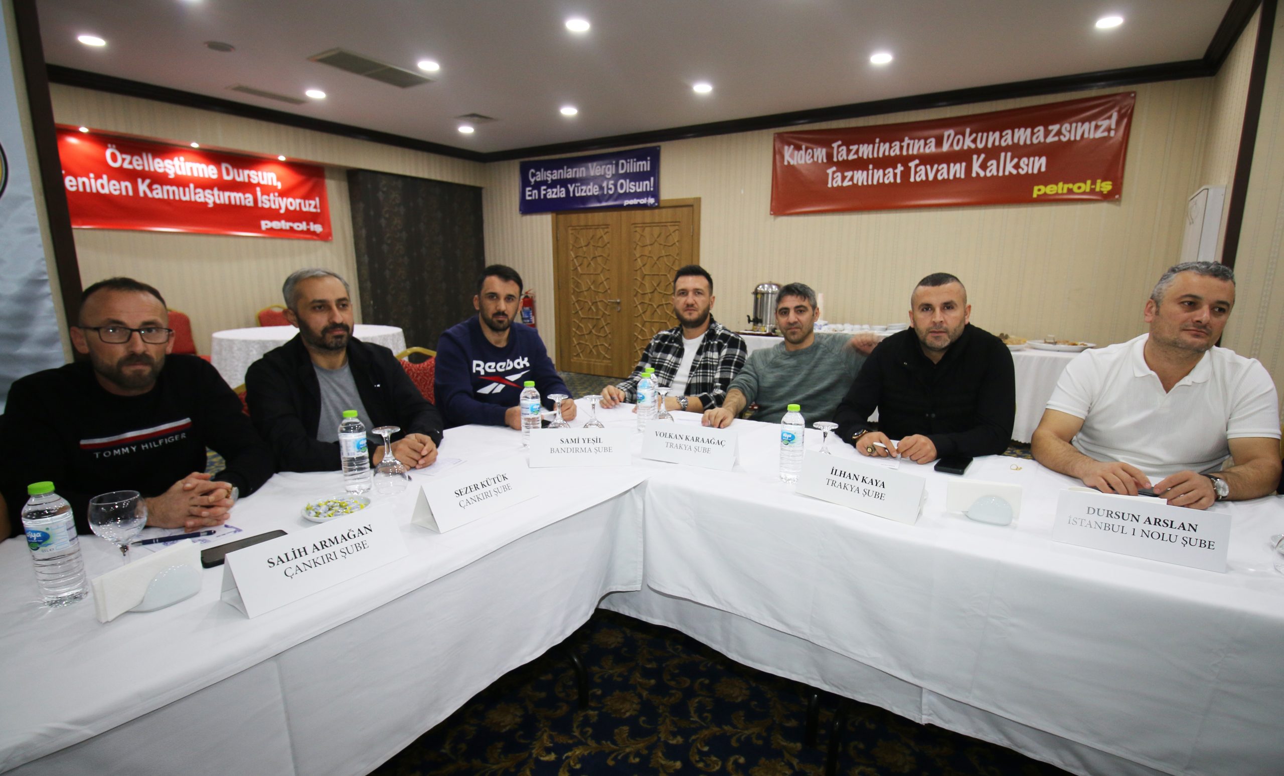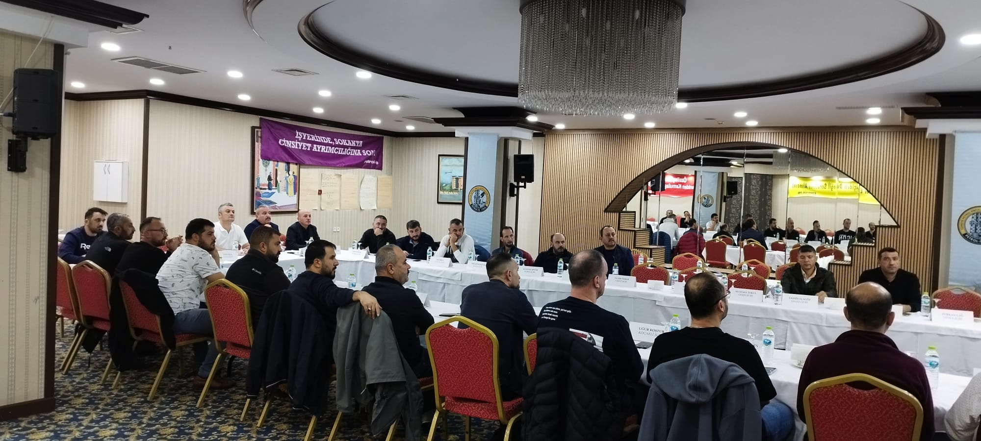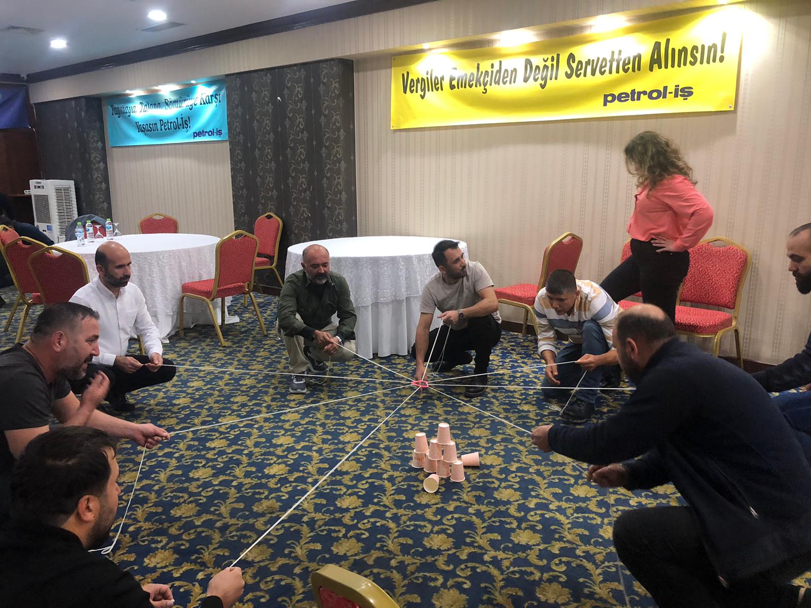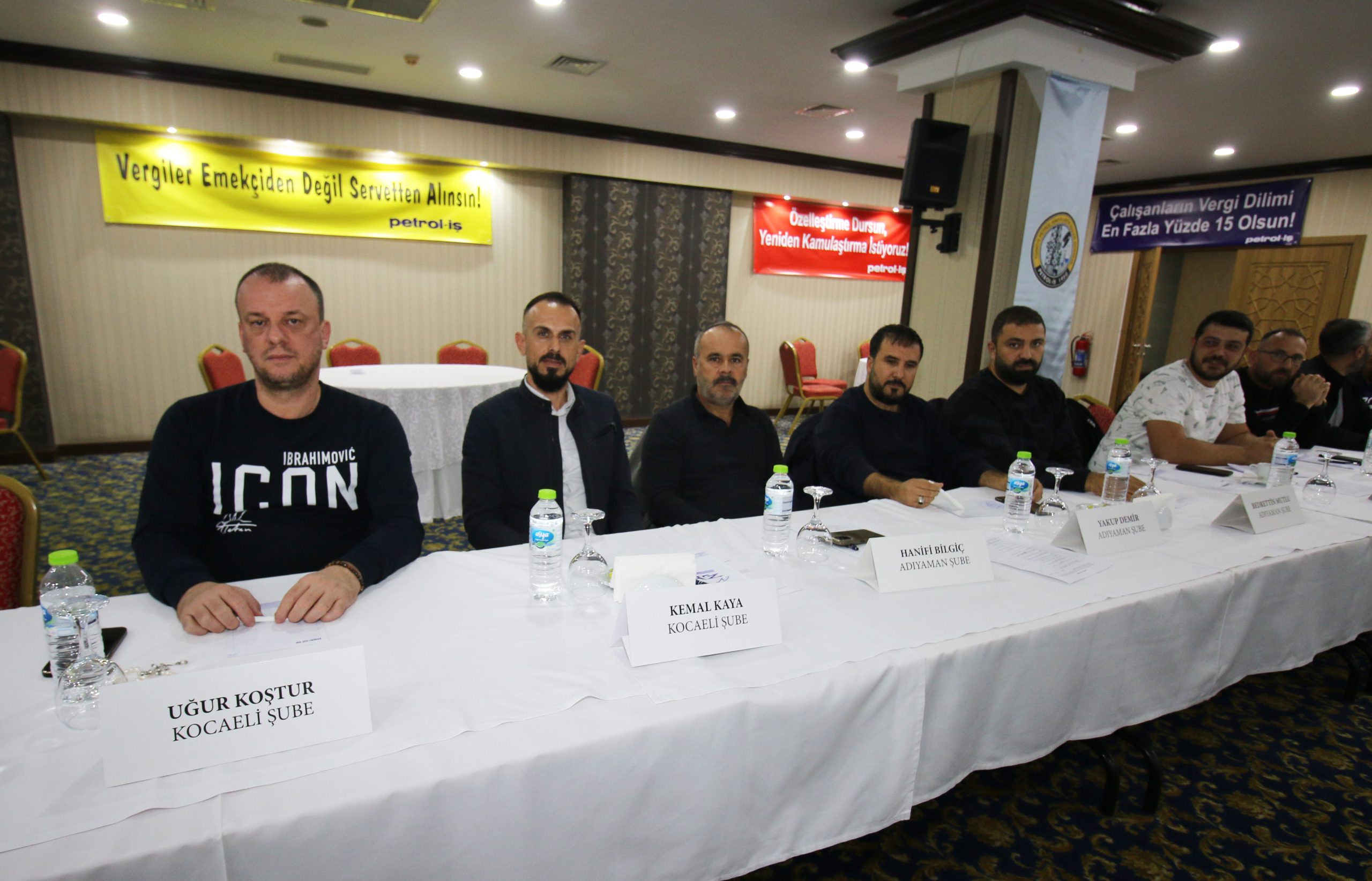 Sendikamız 2023 yılı Güz Dönemi Kurul Eğitimlerinin üçüncü grubu 23 Kasım Perşembe günü yapılan eğitimle sona erdi. Böylelikle üç farklı tarihte yapılan güz dönemi eğitimleri başarıyla sonuçlandı. Dün yapılan eğitimin son saatinde sendikamız Merkez Yönetim Kurulu Üyeleri şube disiplin kurulu üyeleri ile bir araya geldi. Yaklaşık 2 saat süren görüşmede Genel Merkez Yönetimi Petrol-İş’in idari ve örgütsel durumuna ilişkin bilgi verdi, gelen soruları yanıtladılar. Toplantı sertifika töreni ve toplu fotoğraf çekiminin ardından sona erdi.