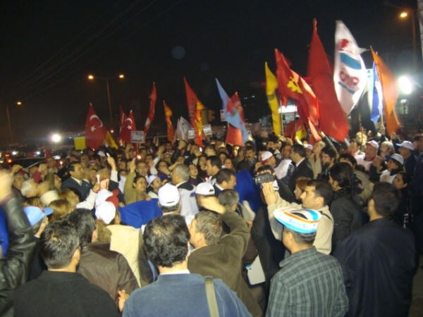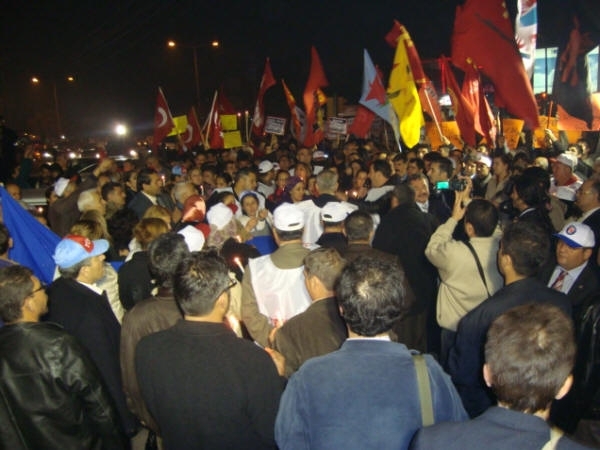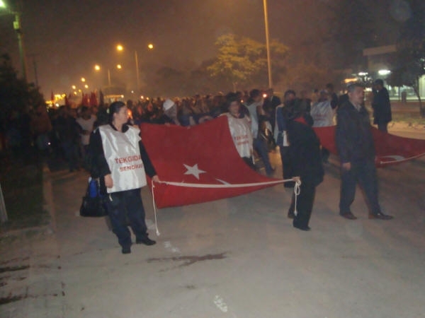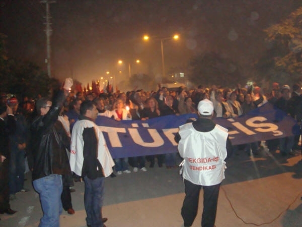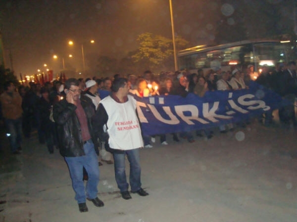 Türk-İş' e bağlı sendikalar ve çeşitli sivil toplum örgütlerinin katılımıyla hükümeti protesto ve tekel işçilerine destek amacıyla Mimar Sinan Kültür Merkezi önünde toplanıp AKP İl Binası önüne kadar yürüyerek basın açıklaması yapıldı.