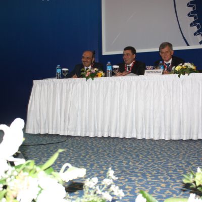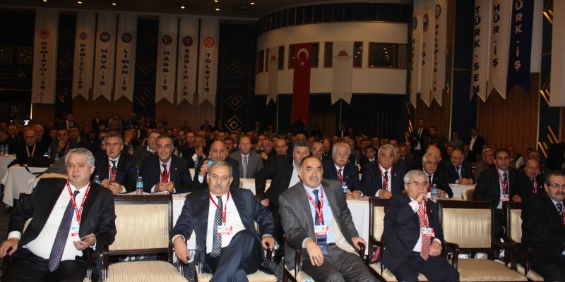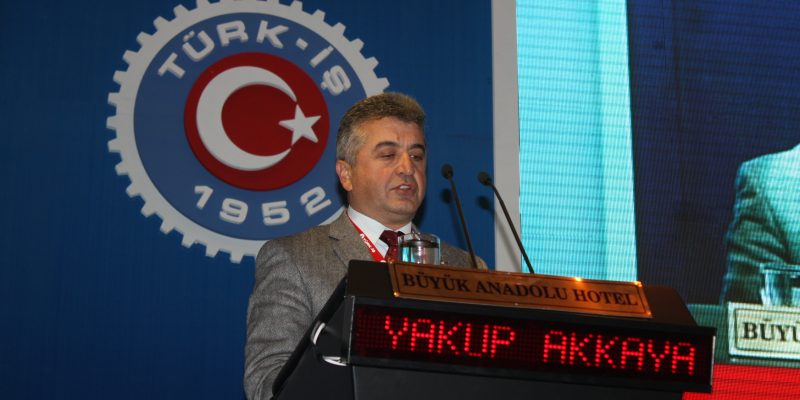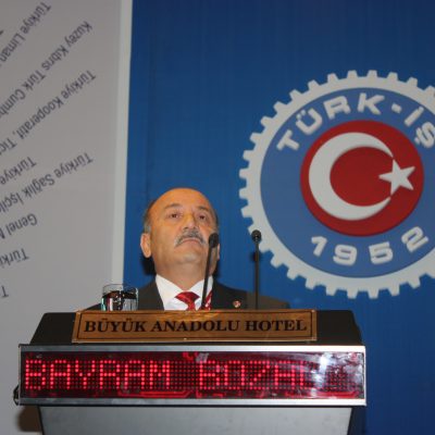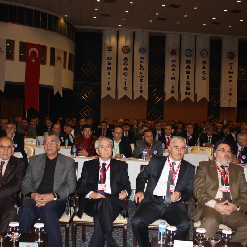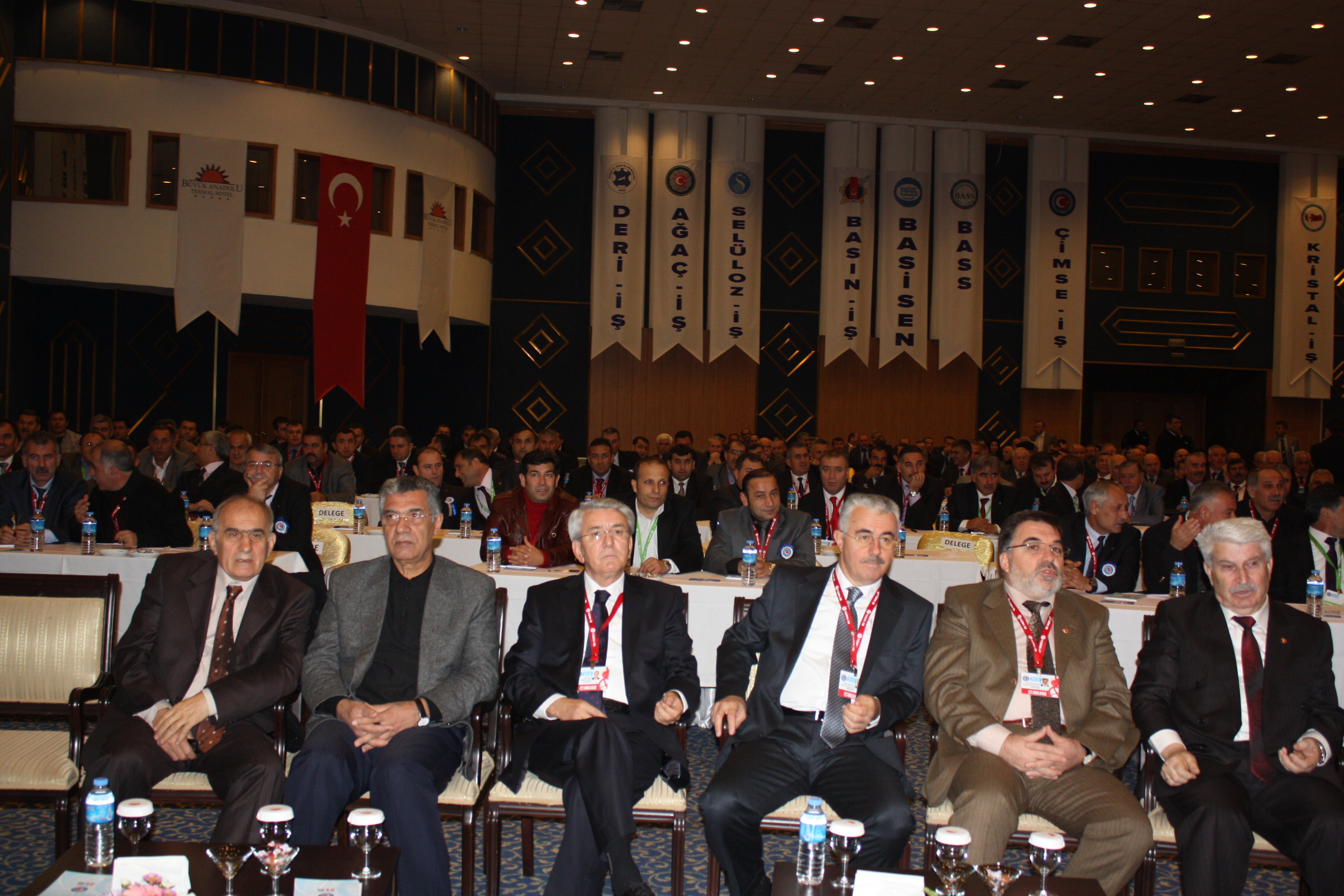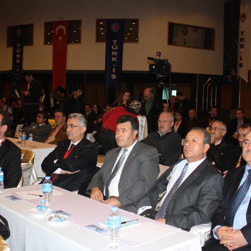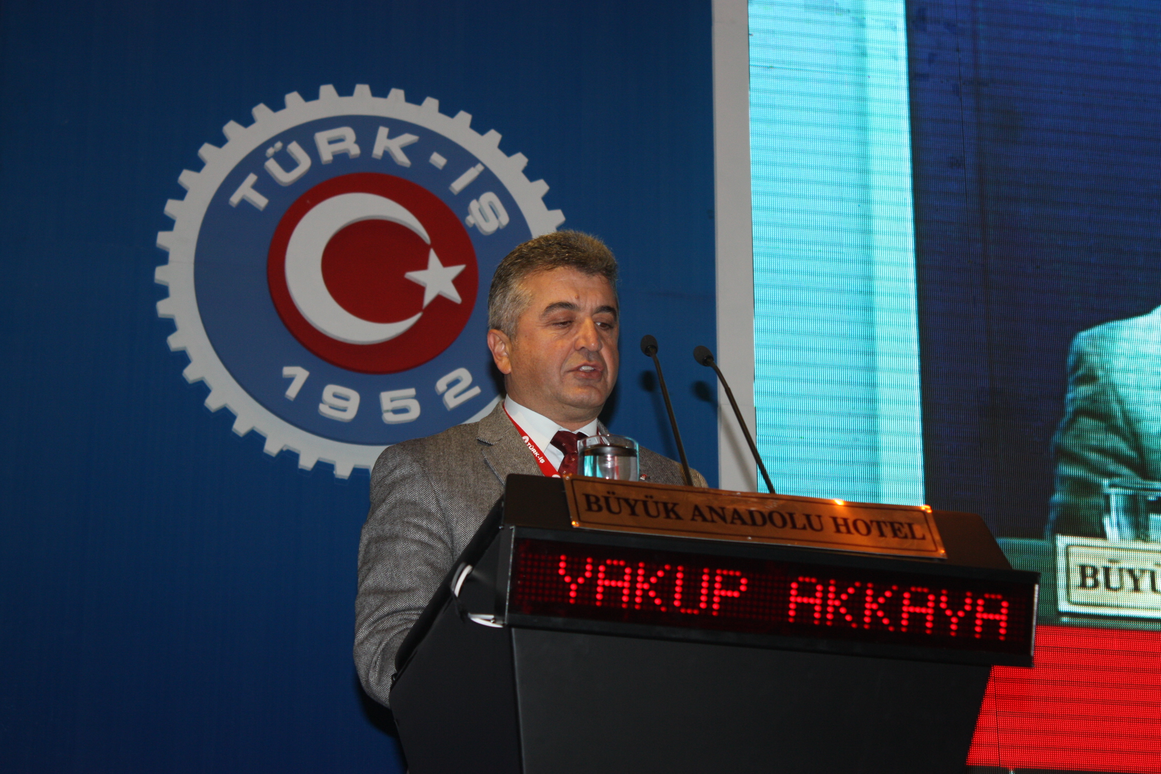 Ankara’da Büyük Anadolu Oteli’nde dün başlayan ve dört gün sürecek olan 21. Olağan Türk-İş Genel Kurulu’nun ikinci gününde kürsüde söz alacak olan konuşmacıların listesi belirlendi. Kura sonucu belirlenen listede; Türk Harb İş Sendikası, Basın İş Sendikası, Türkiye Denizciler Sendikası, Demiryol İş Sendikası, Tez Koop İş Sendikası genel başkanları konuşmalarını tamamladılar. Tez Koop İş Sendikası Genel Başkanı Osman Gürsu konuşmasını yaptığı sırada salonda bulunan Şok market işçileri “Ülker şaşırma sabrımızı taşırma” sloganları attı.