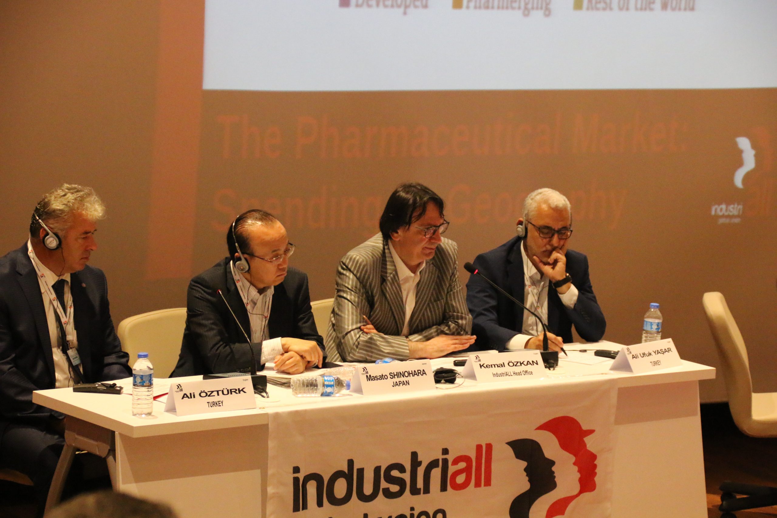 Bu oturumdaki son konuşmacı ise IndustriALL Küresel Sendika Genel Sekreter Yardımcısı Kemal Özkan’dı. Özkan konuşmasında, IndustriALL Küresel İlaç Ağı’nın oldukça güçlü olduğunu belirtti. Geleneksel olarak ilaç işkolunun kimya işkolundan farklı dinamiklere sahip olduğunu belirten Özkan, bu sebeple kimya işkolundan ayrı böyle bir toplantı örgütlendiğini belirtti.