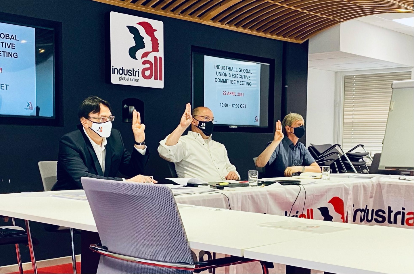 Yönetim Kurulu toplantısı aynı zamanda Almanya IG-Metal Sendikası başkanı da olan IndustriALL Küresel Sendika Başkanı Jörg Hofmann’ın açılış konuşması ile başladı. Hofmann konuşmasında dünya genelinde sendikal haklar ve insan hakları ihlalleri ve bu ihlallere karşı mücadele, Covid-19’un çalışma yaşamı ve sendikalar üzerinde etkisi ve olumsuz etkileri ile sendikal mücadele yöntemleri ve küresel sendikal dayanışma konularında görüşlerini sundu. Hofmann Covid-19 aşısı hakkındaki sözlerini “Aşıya dünyadaki herkes adil bir şekilde erişebilmelidir. Herkes güvende olana kadar hiç kimse güvende değildir” diyerek bitirdi. Gelişmiş ülkelerin bencillik yapmayarak dayanışma içerinde aşıyı diğer ülkelerle paylaşması gerektiğini vurguladı.