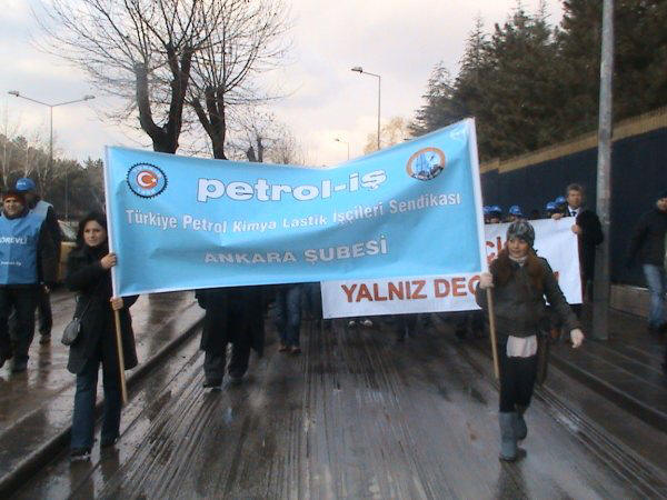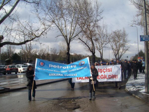 Konfederasyonumuz Türk-İş ile birlikte 6 konfederasyonun Tekel işçisine destek olmak, dayanışma göstermek ve işçilere yönelik tüm saldırılara karşı 4 Şubat 2010 Perşembe günü için aldığı iş bırakma eylemi Ankara Şubemize bağlı işyerlerimizde başarı ile gerçekleştirildi. Sabah işyerlerine gelerek işbaşı yapmayan üyelerimiz saat 10.00’da servislerle Çalışma Bakanlığı önüne geldiler. Yüzlerce üyemiz Türk-İş Genel Merkezi önündeki Tekel işçilerini ziyaret etmek amacıyla harekete geçtiler.