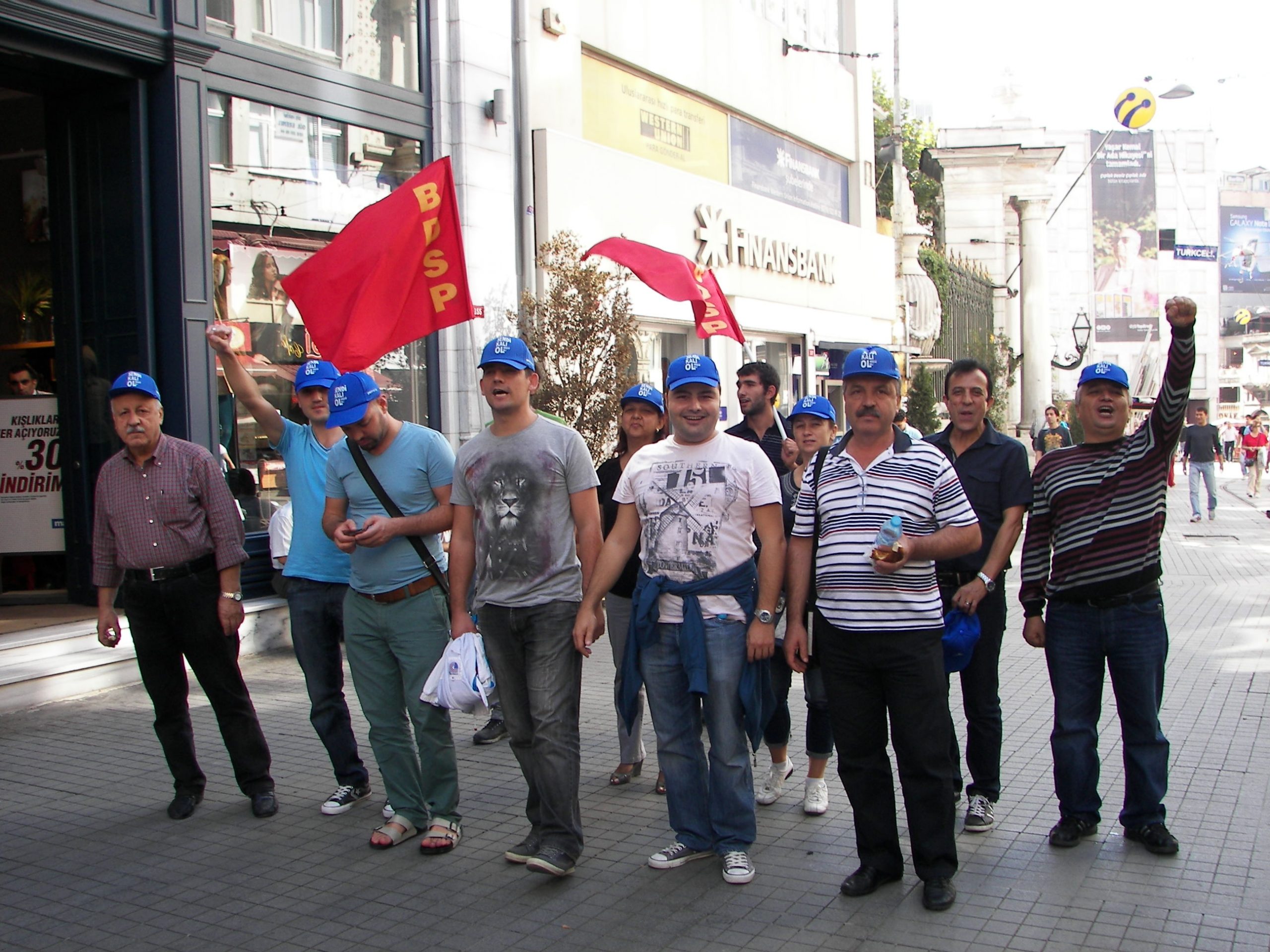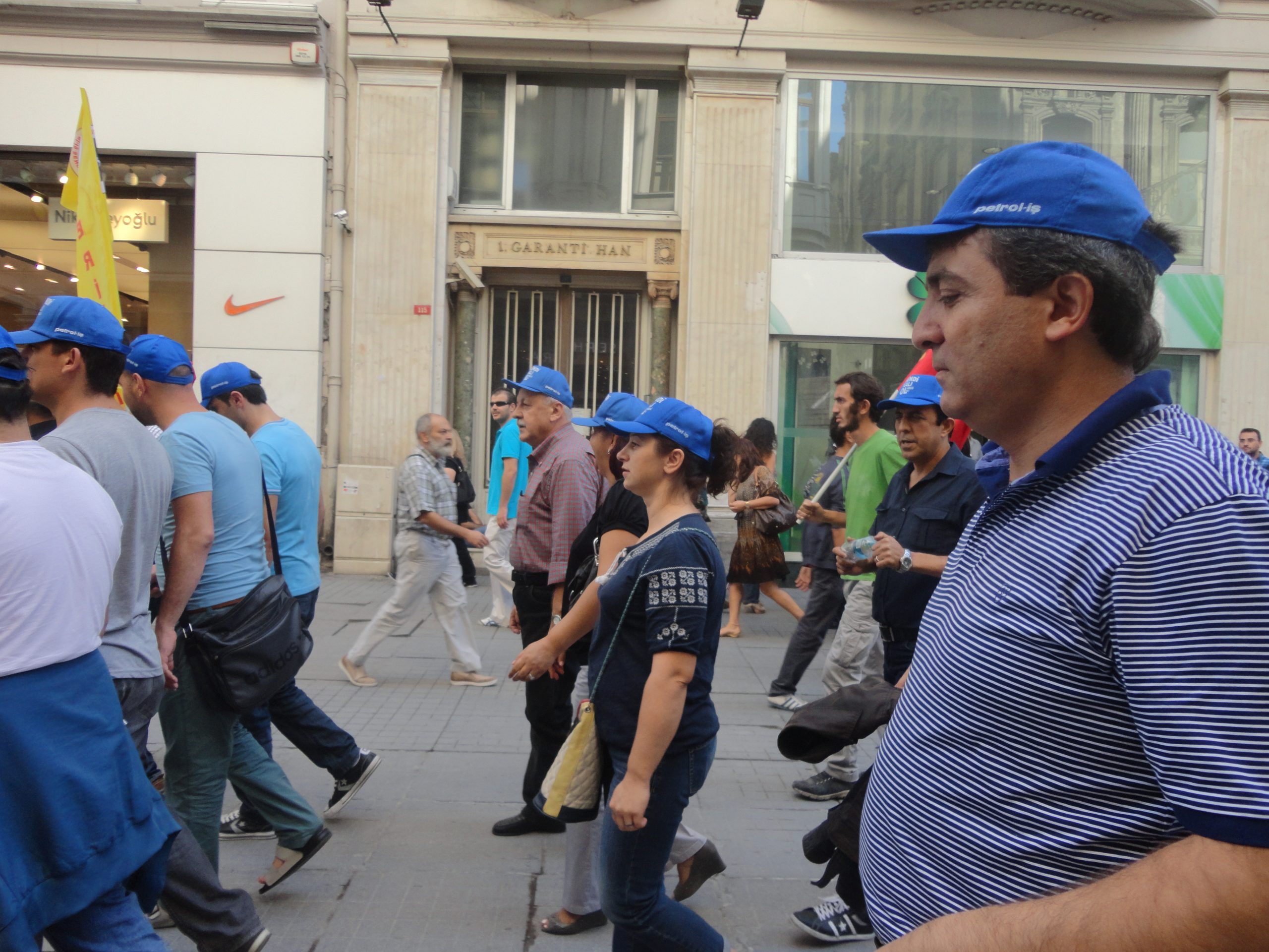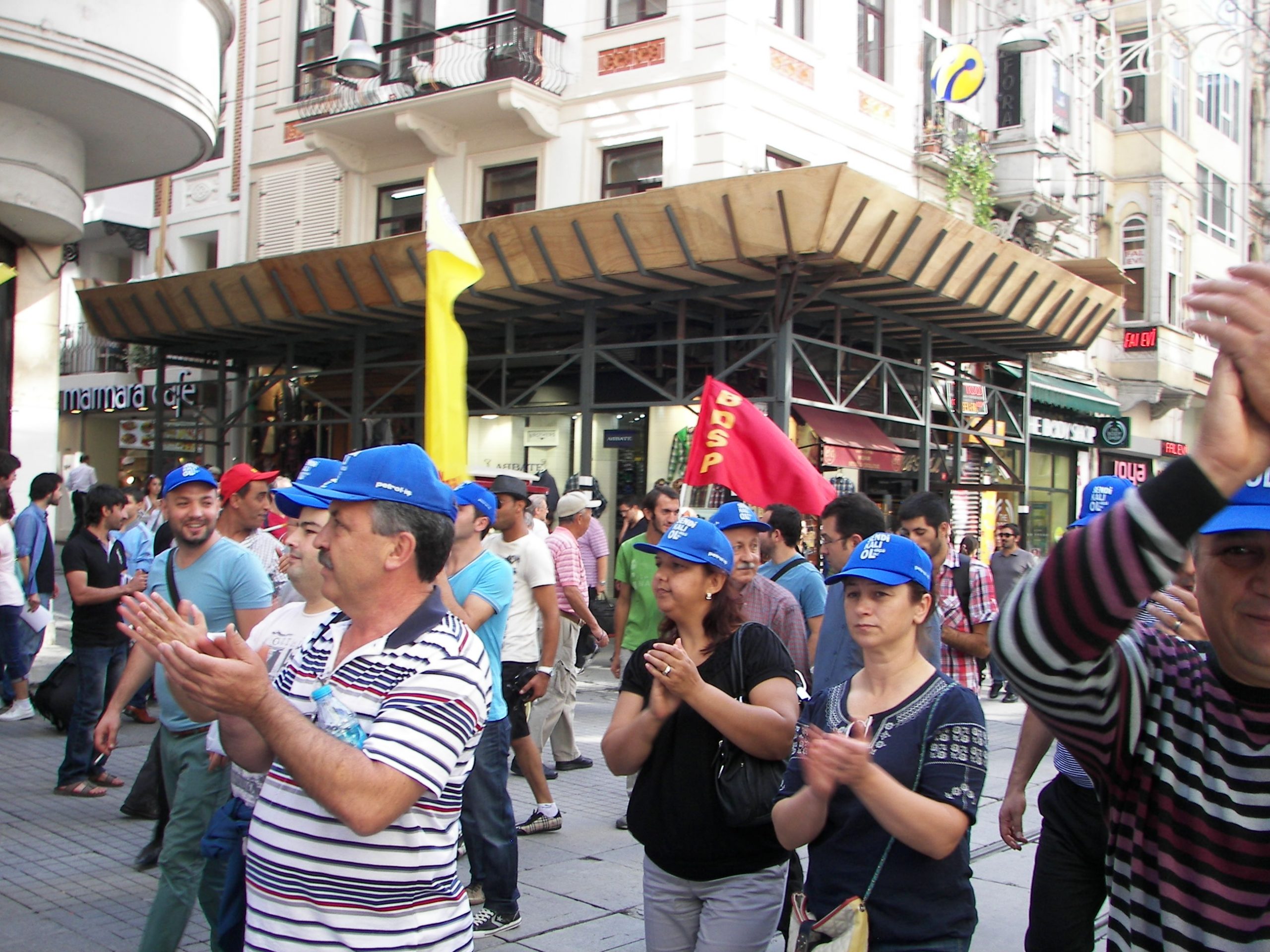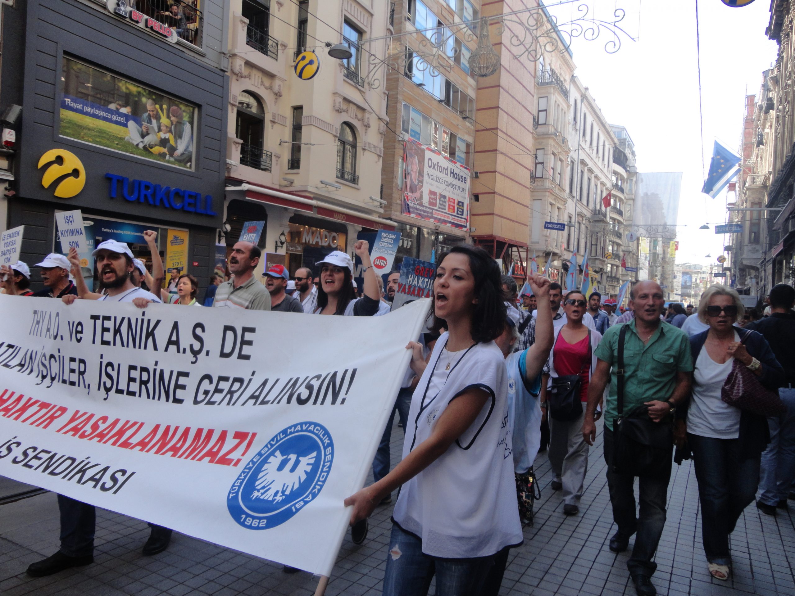 Sendikal Güç Birliği Platformu (SGBP), patron kuruluşlarının talepleri doğrultusunda hazırlanan, ancak Türk-İş ve Hak-İş yönetimlerinin de imzaladıkları protokolle destekledikleri “Sendikalar ve Toplu İş Sözleşmesi Yasa Tasarısı”nı 16 Ekim Salı günü Türkiye genelinde yapılan çeşitli eylemlerle bir kez daha protesto etti. Sabahleyin SGBP’nin bileşeni sendikaların örgütlü olduğu işyerlerinde 1 saat iş bırakıldı, tasarıyla ilgili bildiriler okundu. Aynı gün saat 13.00’den  itibaren başta İstanbul – Taksim olmak üzere, Ankara, İzmir, Bursa, Adana, G.Antep gibi merkezlerde de oturma eylemleri yapıldı. Taksim’de yapılan eyleme Genel Mali Sekreterimiz İbrahim Doğangül, Genel Yönetim Sekreterimiz Ahmet Kabaca, şube başkan, yönetici ve işyeri temsilcilerimizle Petrol-İş üyesi işçiler de katıldı.