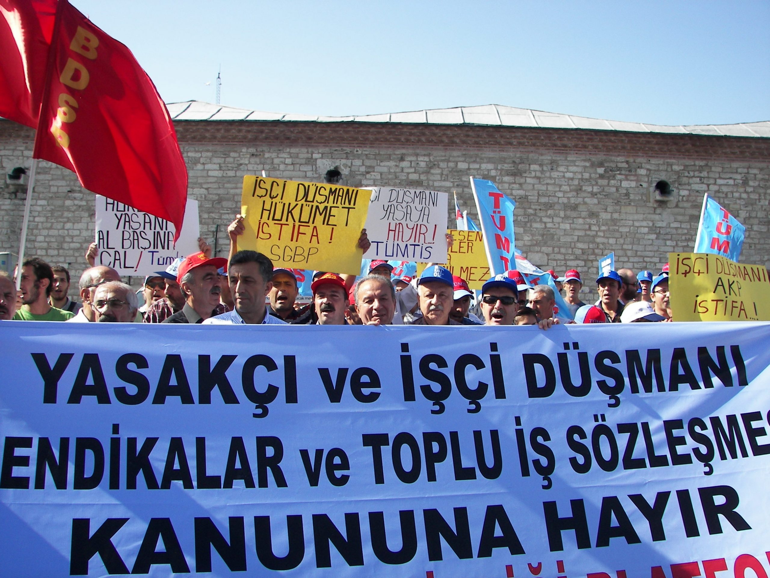Türkiye Büyük Millet Meclisi, çalışma yaşamını ve sendikal hayatı ciddi biçimde değiştirecek bir yasa tasarısını görüşüyor. Aylardır toplu sözleşme hakkımızı bu yasayı bahane ederek gasp eden, yetki işlemlerini dondurup işçileri sözleşmesiz bırakan iktidar, şimdi büyük bir hızla, işveren örgütlerinin dikte ettiği maddeleri meclisten geçirmek için yoğun mesai yapıyor. Bu yasa ile bütün sendikal güvenceler elimizden alınıyor, barajlarla sendikalar bitiriliyor, grev yasakları devam ettiriliyor.