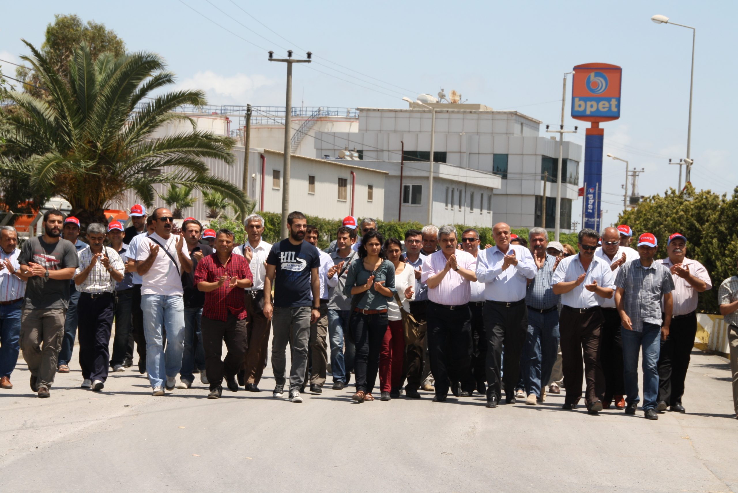 26 Mayıs’ta BDP Mersin Milletvekili Ertuğrul Kürkçü, Akdeniz Belediye Başkanı Fazıl Türk, BDP İl Başkanı Musa Kumlu yanlarındaki Heyetle grevci işçileri ziyaret ederek, greve destek verdiler.