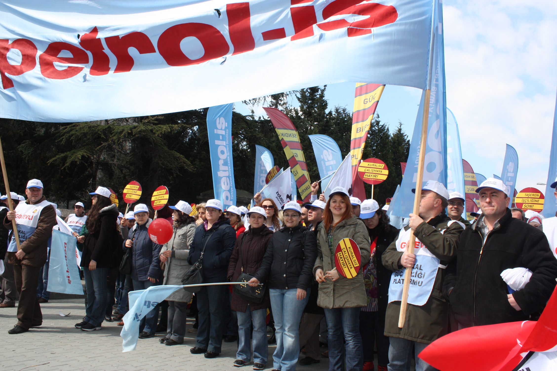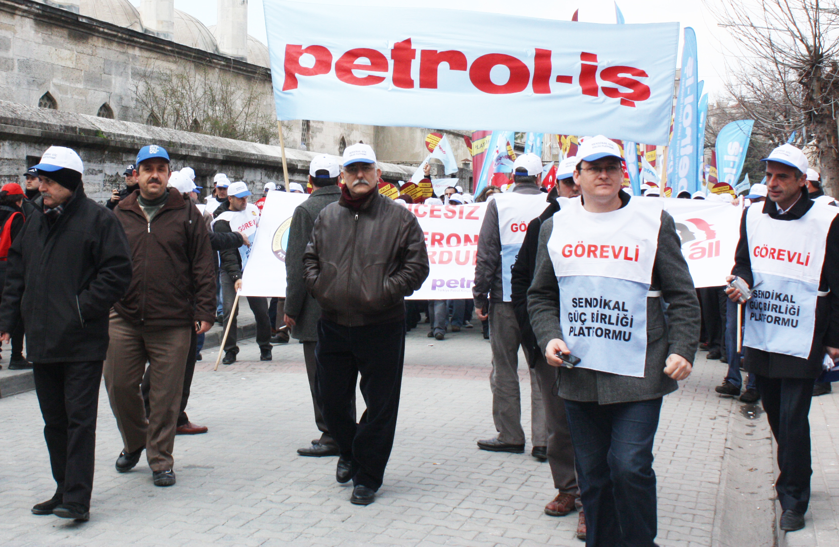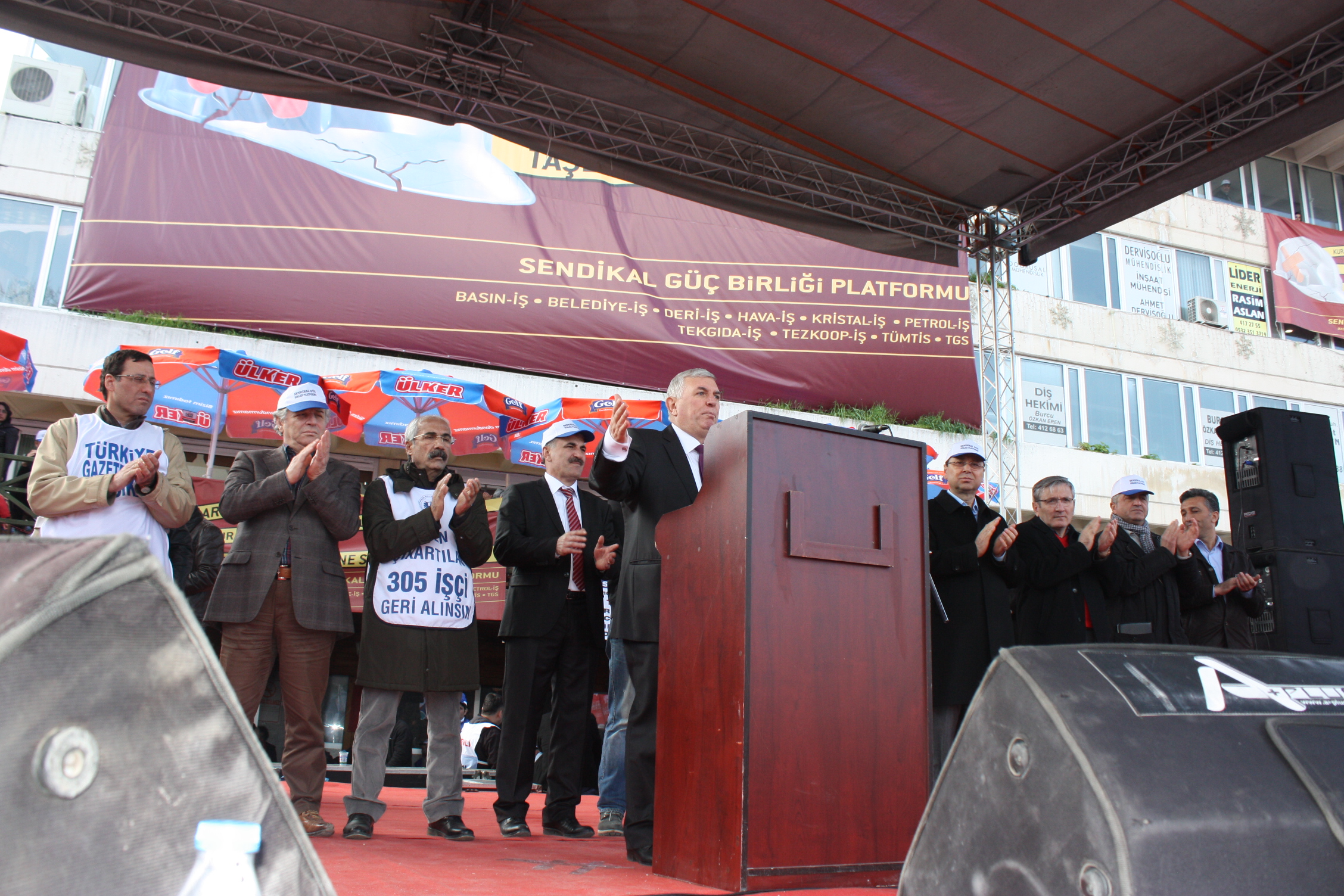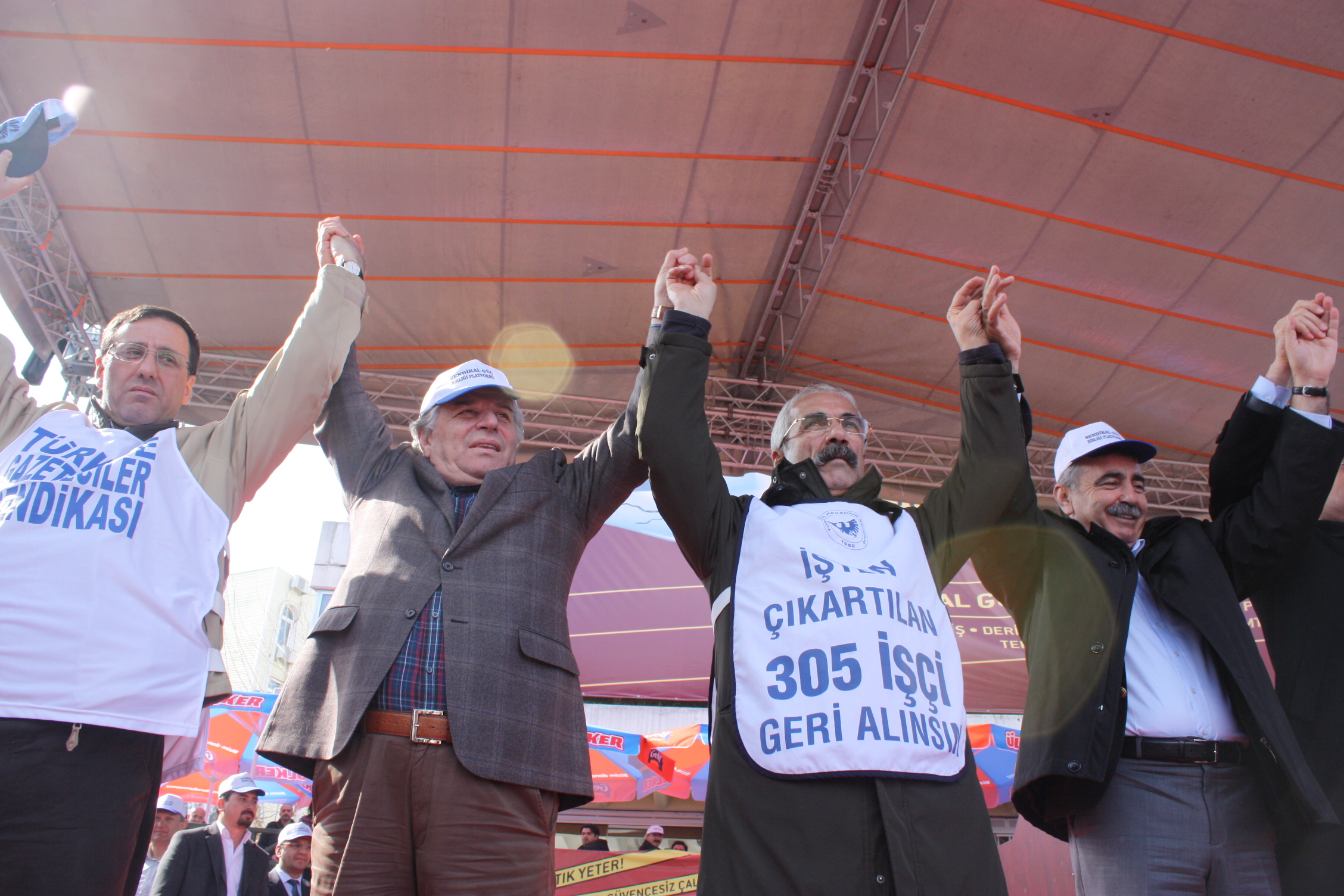 Mitinge Sendikal Güç Birliği Platformunu oluşturan Petrol-İş, Kristal-İş, Tek Gıda-İş, Hava-İş, Tez Koop-İş, Belediye-İş, Deri-İş, Basın-İş, TÜMTİS ve TGS’nin yanı sıra, Türk-İş’e bağlı Genel Maden-İş ile Yol-İş de katıldı.