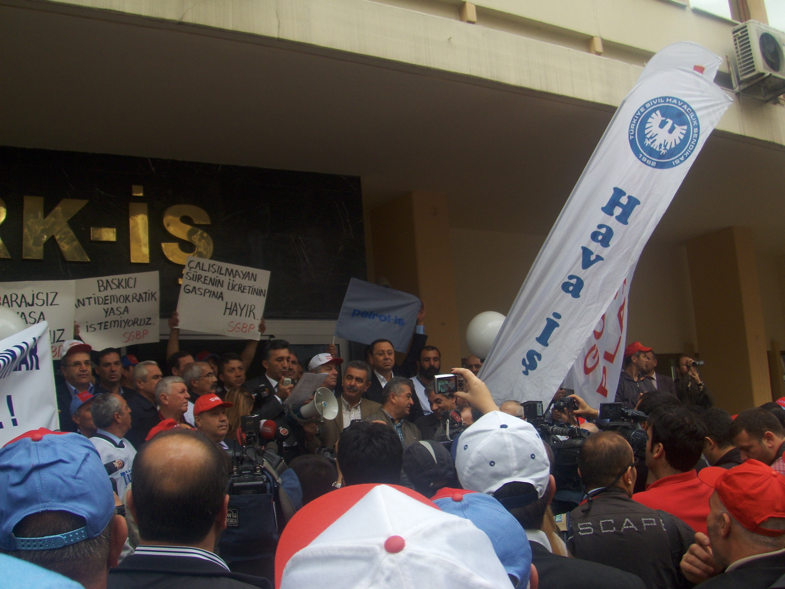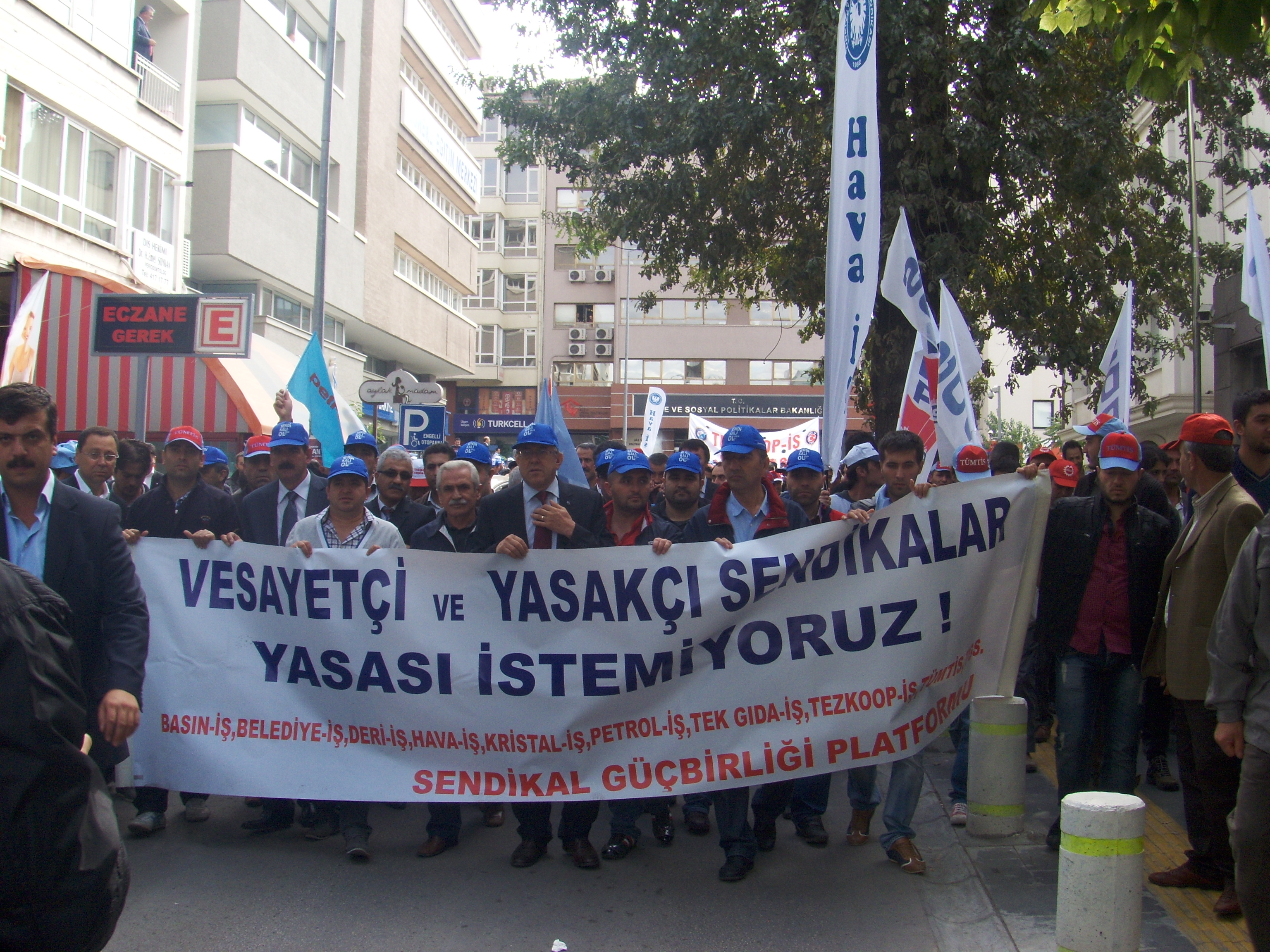 Toplu İş İlişkileri Yasa Tasarısının 09.10.2012 Salı günü meclis gündeminde olması nedeniyle, 09.10.2012 Salı günü saat 10.00’da Türk-İş Genel Merkezi önünde Sendikal Güç Birliği Platformu’nu oluşturan sendikalar bir basın açıklaması yaptı. Sendikalar, daha sonra TBMM önünde de bir basın açıklaması yapmak ve tasarıyı protesto etmek için buradan Meclis’e yürüyüşe geçti ancak polis engeliyle karşılaşmıştı. Petrol-İş Genel Başkanı Mustafa ÖZTAŞKIN, Genel Örgütlenme ve Eğitim Sekreteri Nimetullah SÖZEN, Bandırma ve Kırıkkale Şube Yöneticileri ile Ankara Şube Yöneticileri ve Temsilcileriyle eyleme katılım sağladılar. Eylem sonrasında Genel Başkanımız Mustafa ÖZTAŞKIN, Temsilci ve Yöneticilerimize konu ile ilgili bilgilendirme toplantısı yaptı.