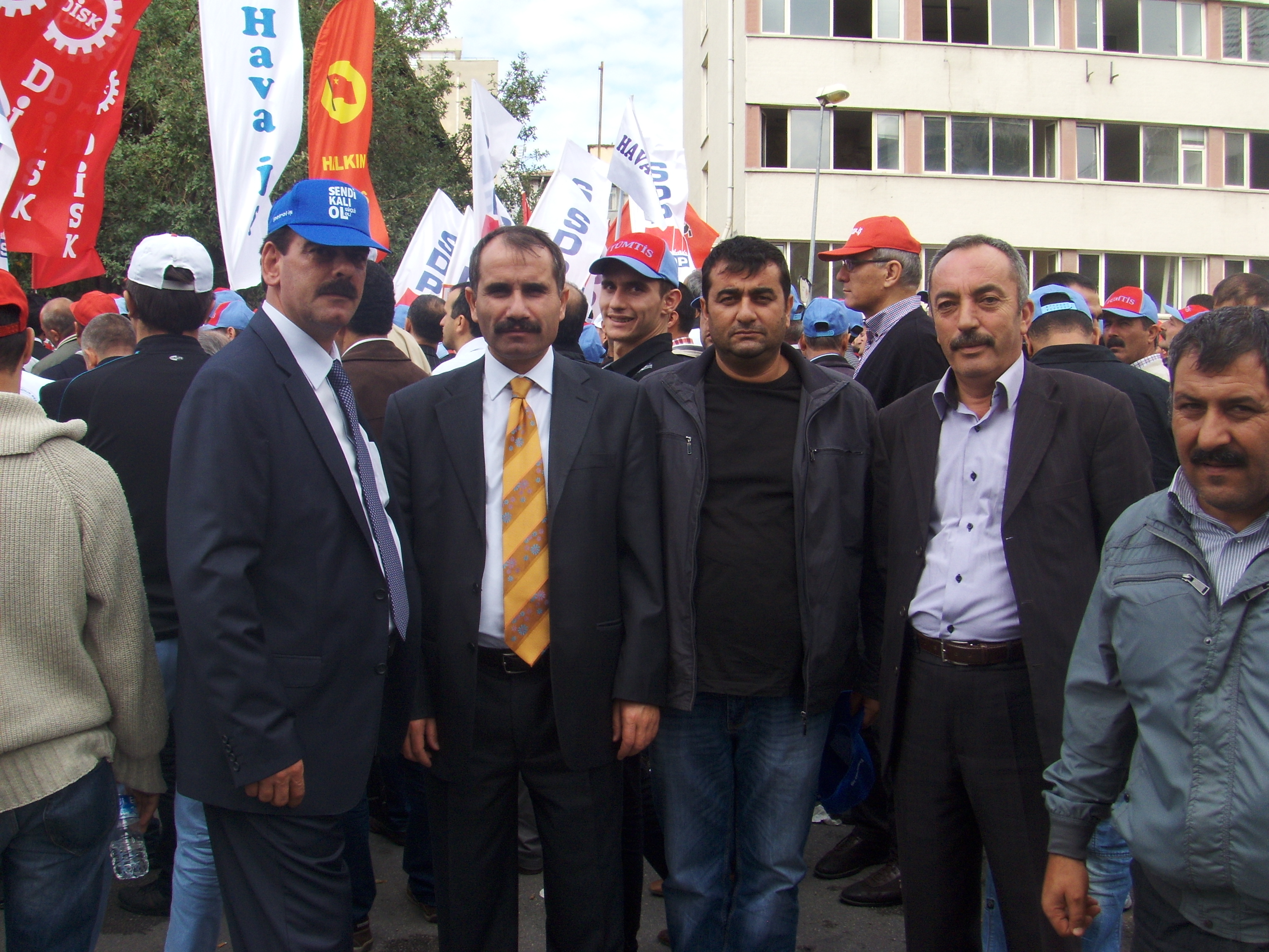Hava-İş üyesi direnişteki Türk Hava Yolları (THY) işçileri, Deri-İş üyesi işten atılan TOGO işçileri, TÜMTİS üyesi direnişteki DHL işçileri de Türk-İş önündeydi.