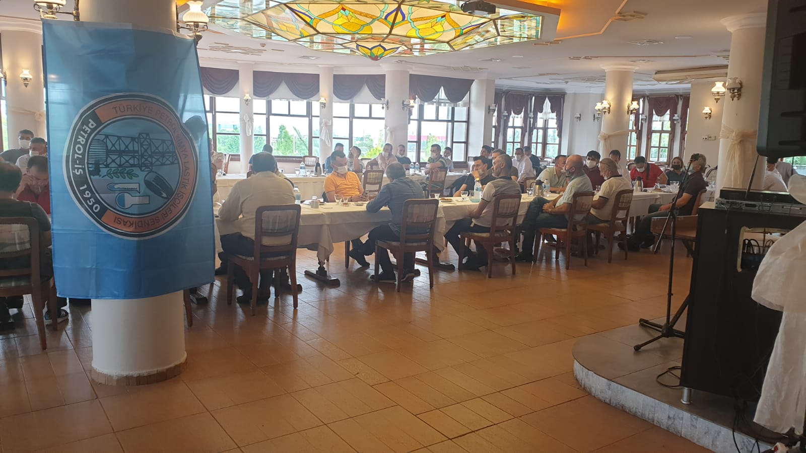 Temsilciler Kurulunda Şube Başkanımız Abdullah Çilli bir konuşma yaptı. Abdullah Çilli konuşmasında Covid-19 salgınının şubemizin örgütlü olduğu işyerlerinde nasıl bir etki yarattığı ve sendikamızın aldığı tedbirler üzerine şunları söyledi: “Dünya genelinde milyonlarca insanı etkileyen Covid-19 pandemisi ülkemizde de ciddi hasarlar meydana getirdi. Ülkemizde de can kayıpları yaşandı, yaklaşık 200 bin kişi enfekte oldu. Virüs nedeniyle tedavisi devam eden tüm hastalara acil şifalar, hayatını kaybedenlere de Allahtan rahmet diliyoruz. Covid-19’un ülkemizde etkisini göstermeye başlamasıyla birlikte örgütlü olduğumuz işyerlerimizin ilgili departmanları, işyeri temsilcilerimiz ve üyelerimizle birlikte alınması gereken tedbirlerle ilgili acil eylem planları hazırlayıp, gerekli temasları kurduk. Virüs hakkında bilgi içeren doküman ve broşür hazırlanması, maske, eldiven, tulum (v.b) gibi koruyucu ekipmanların sağlanması, servislerdeki koltukların isimlendirilerek herkesin aynı yere oturmasını sağlama, servis araçlarının dezenfekte edilmesi, servis şoförleri ile araya mesafe koymak için plastik panel konması, ateş ölçer cihazının temin edilmesi, yemekhanelerdeki oturma düzenlerinin sosyal mesafeye uygun planda olması gibi birçok önlemi alarak üyelerimizi bu süreçten en az şekilde etkilenmesine çalıştık. Alınan tüm bu tedbirlere rağmen 48 üyemiz Covid-19 virüsüne yakalandı. Bu arkadaşlarımızdan 44 kişi iyileşti, 4 arkadaşımızın ise iyileşme süreci devam ediyor. Örgütlü olduğumuz işyerlerinden Ece Boya, Mehmetçik Vakfı-Tuzla/Maslak işyerleri, Mutlu Akü ve Mutlu Plastik, Neşe Plastik, Nitto Otomotiv, Recticel, Varroc Lighting ve Aypol Solvent işyerlerinde kısa çalışma uygulamasına başvuruldu. Arılı Plastik, Reckit Benckiser, Botaş İst. İşlt Müd. İstanbul Enerji, Mefar İlaç ve Greiner’de ise üretim normal bir şekilde devam etti. Bu süreçte üyelerimizin haklarında herhangi bir kayıp yaşanmadı.”