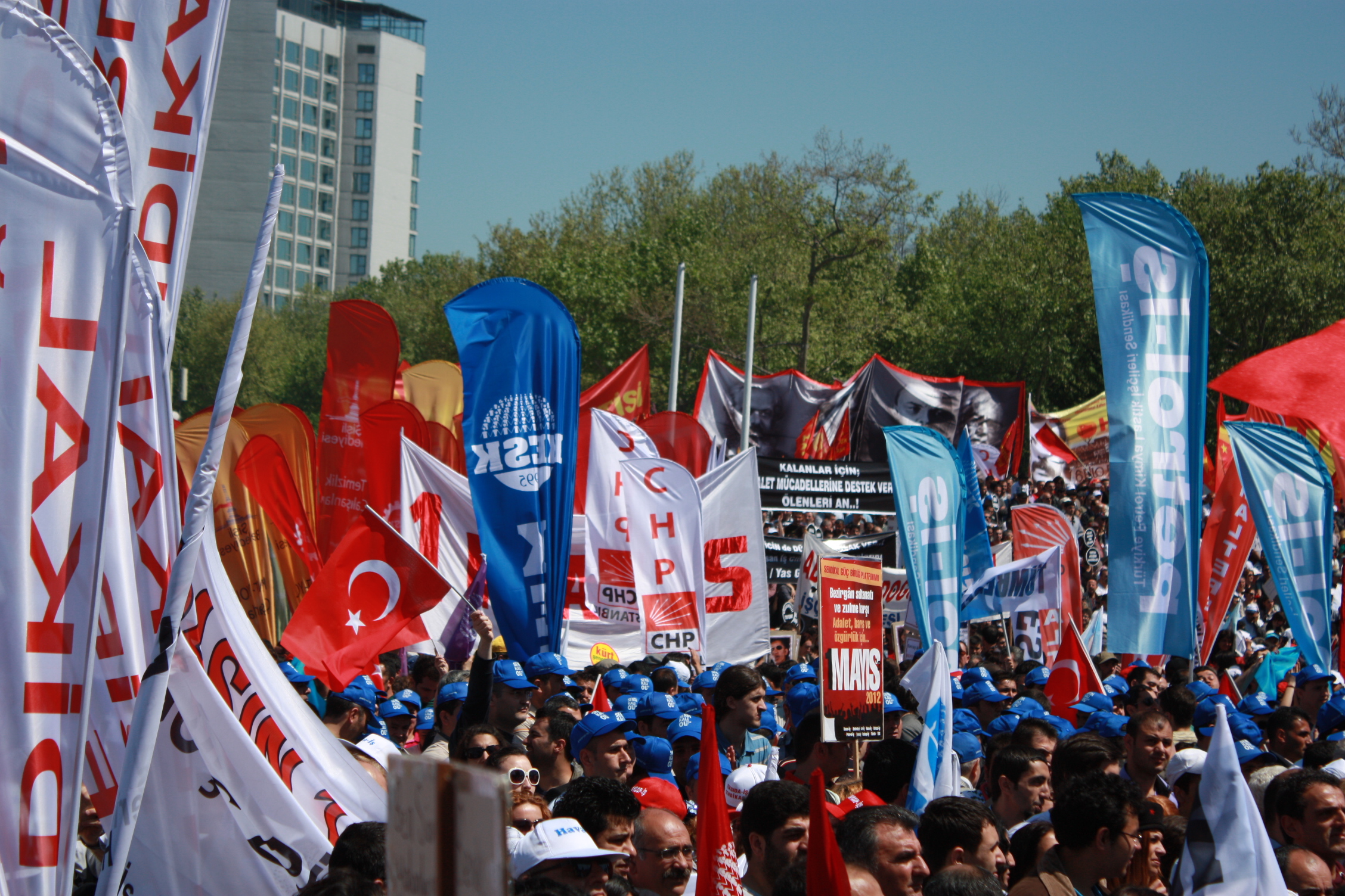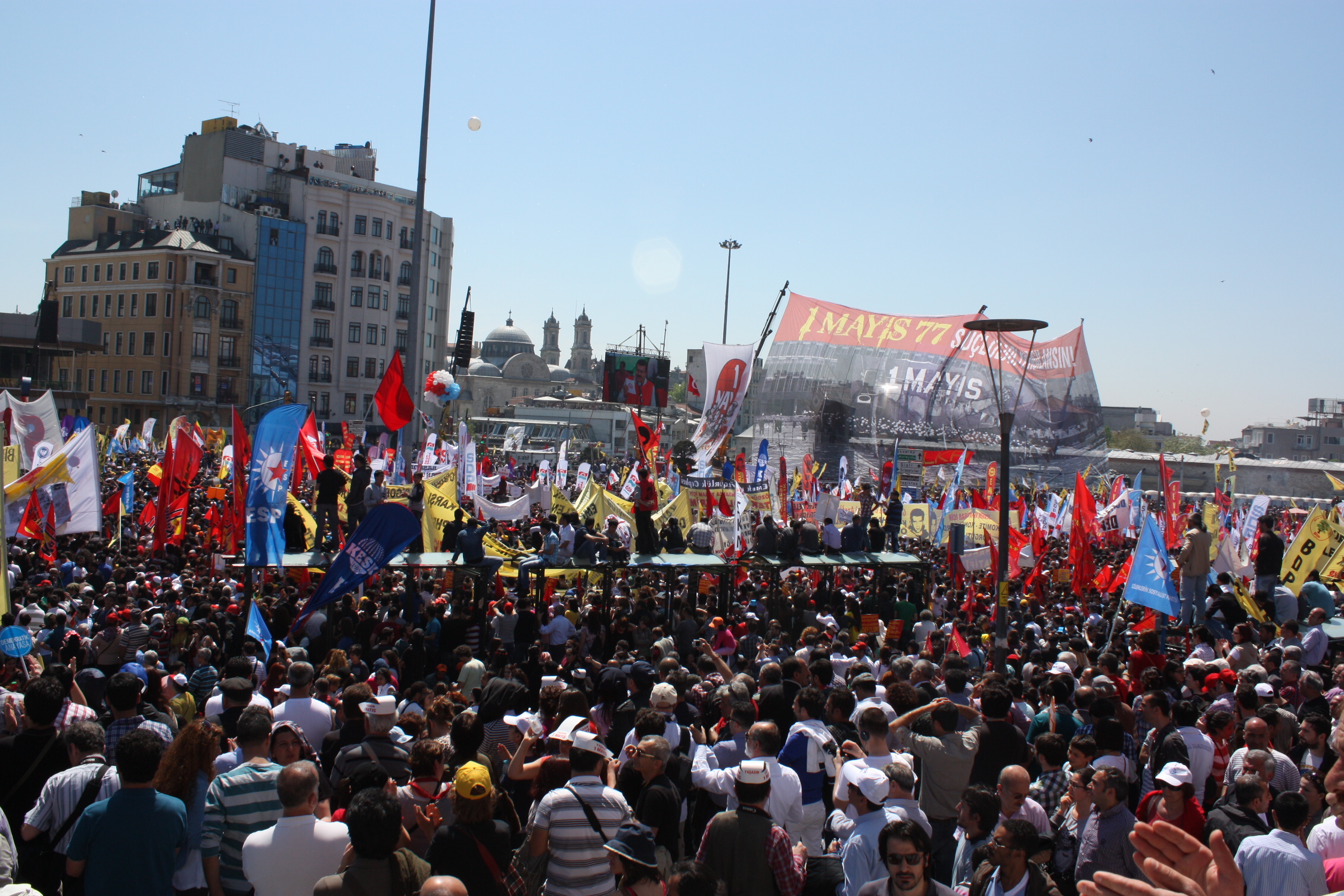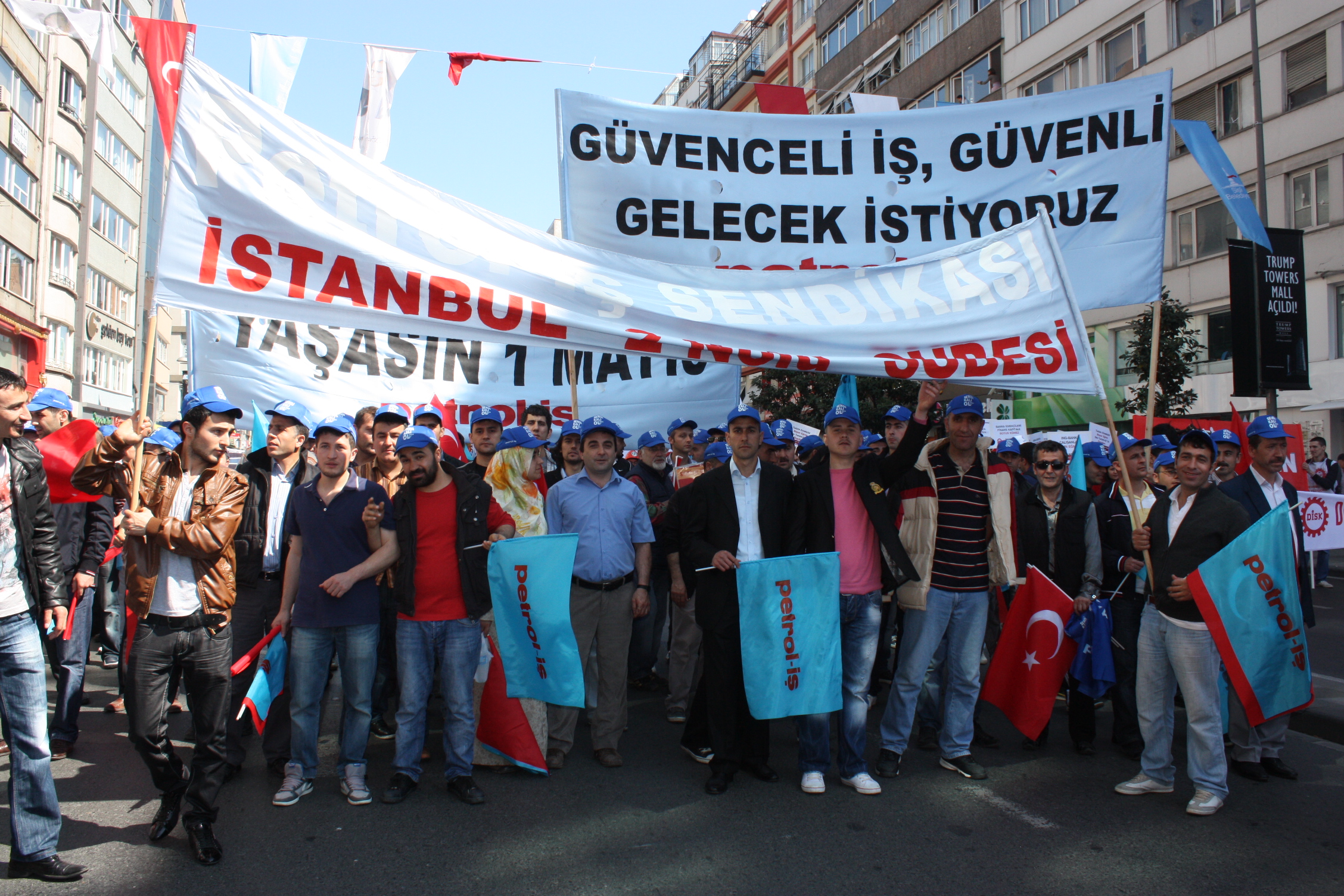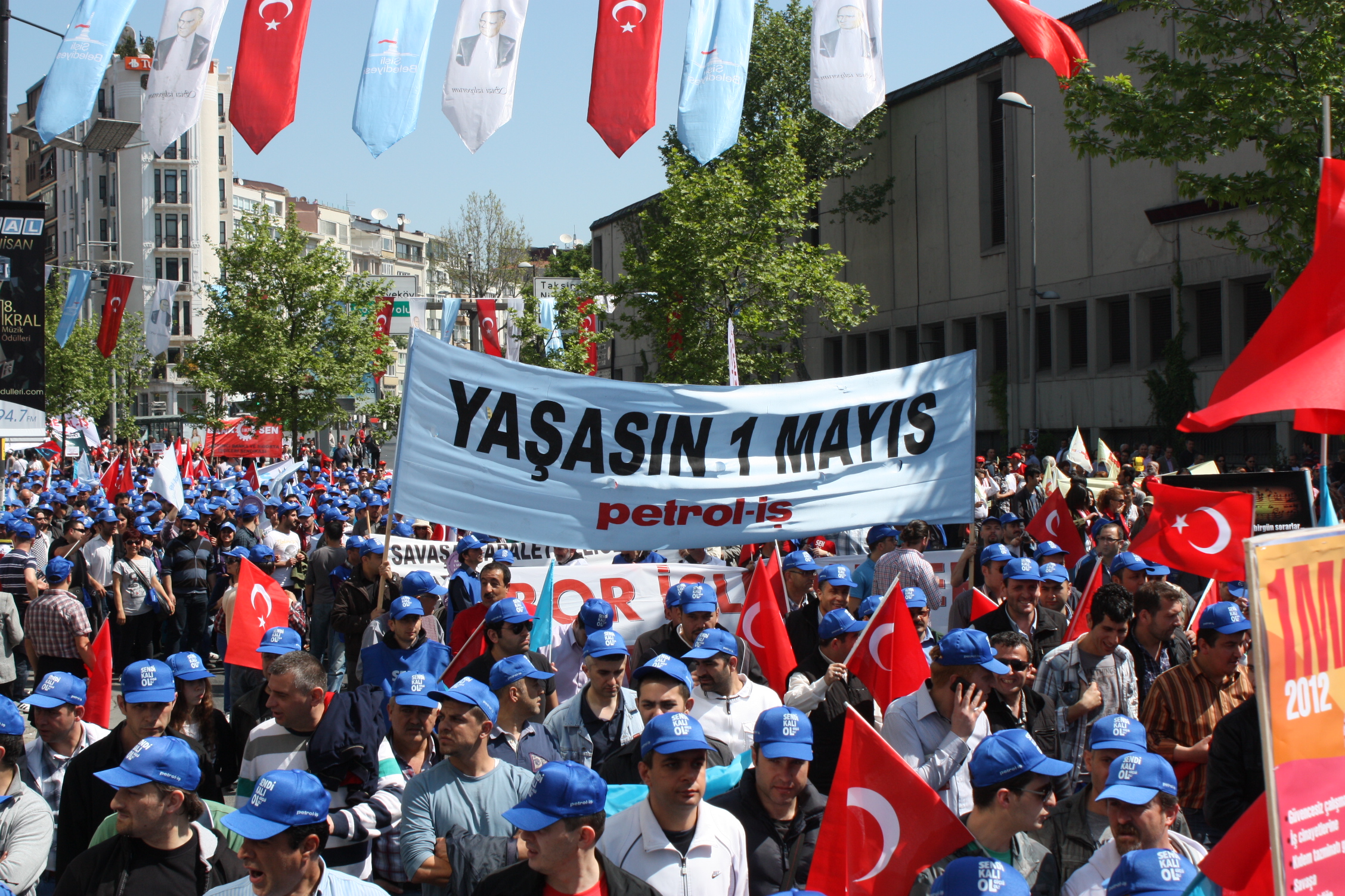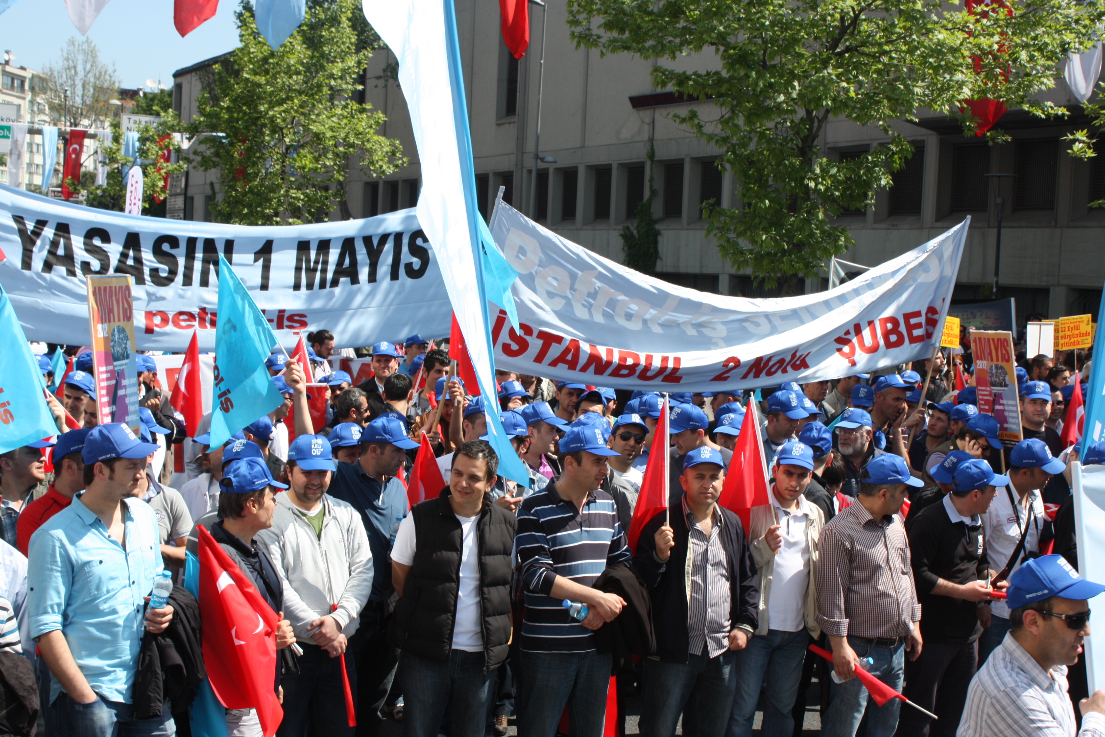 Taksim’deki coşkulu 1 Mayıs kutlamalarına İstanbul 2 Nolu Şubemiz de örgütlü olduğu işyerleri, Şube Başkanımız Ecvet Eşlegül ve şube yöneticileriyle birlikte katıldı. İstanbul 2 Nolu şubemizde örgütlü işçiler, “Bezirgan saltanatı ve zulme karşı, adelet, barış ve özgürlük için 1 Mayıs’a” pankart ve dövizlerini taşıdılar. İşçiler, ellerinde, ” Güvencesiz çalışmaya, iş cinayetlerine, kıdem tazminatının gaspına, savaşa, adaletsizliğe haykırmak için öfkemizi, emeğin hakları yolunda yükseltmek için sesimizi 1 Mayıs alanlarındayız” dövizlerini taşıdılar.