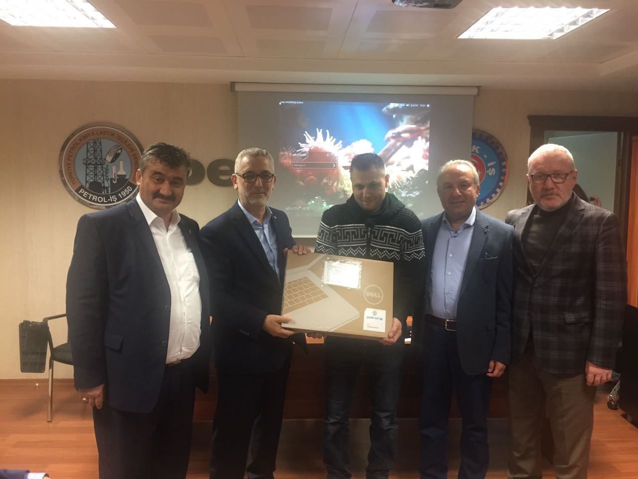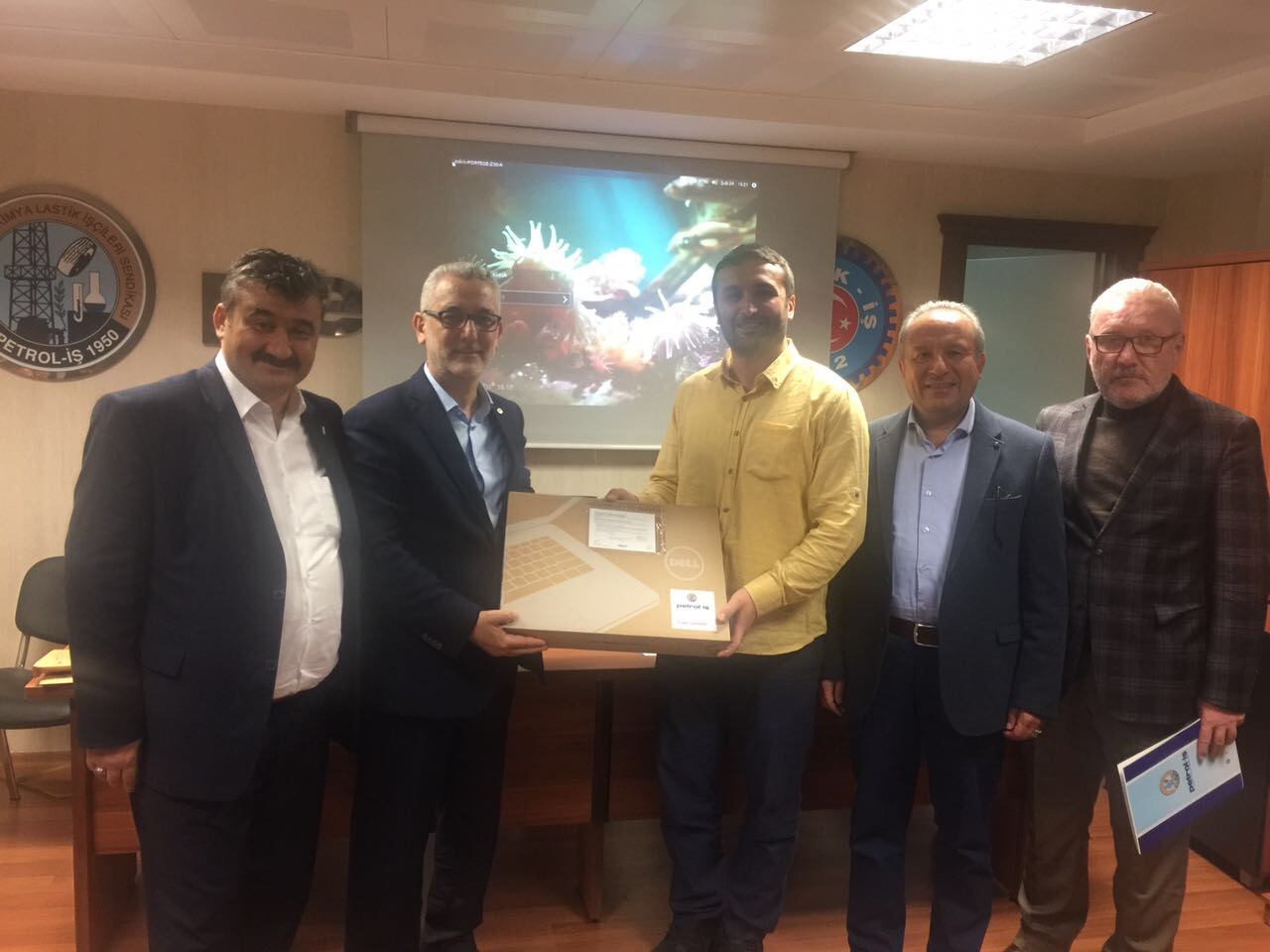 Genel Başkanımız Ali Ufuk Yaşar, Genel Sekreterimiz Ahmet Kabaca, Genel Yönetim Sekreterimiz Ünal Akbulut, İst 2 Nolu Şube Başkanımız Niyazi Recepkethüda, Şube Başkan Yardımcımız Satılmış Çilli, Şube Başkan Yardımcımız (Mali) Mehmet İldem’in katılımlarıyla 24 Şubat 2017 tarihinde, Petrol İş Marş Yarışmasında eseri ödüle layık görülen üyelerimize ödülleri veridi.