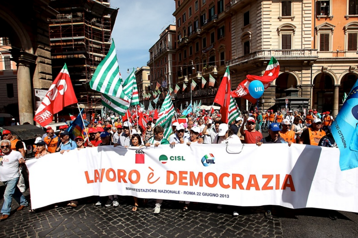 On yıldır ayrı ulusal toplu sözleşmeler yapan üç büyük İtalyan konfederasyonu CGIL, CISL ve UIL 22 Haziran Cumartesi günü Roma’nın San Giovanni meydanında güçlerini birleştirdi.