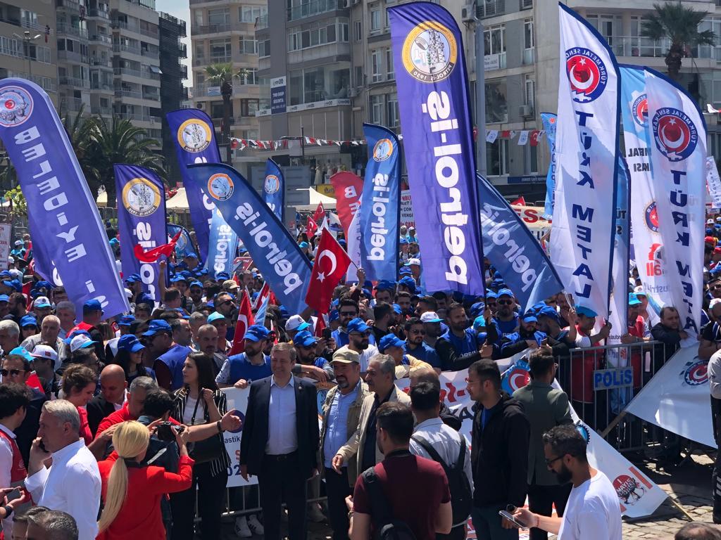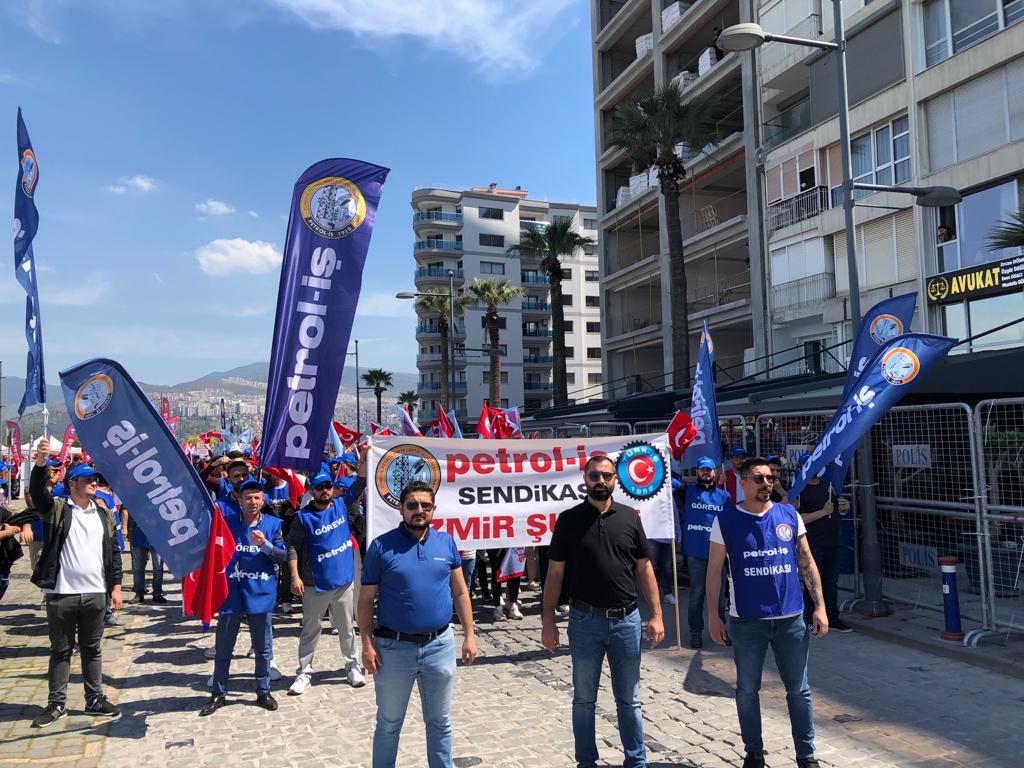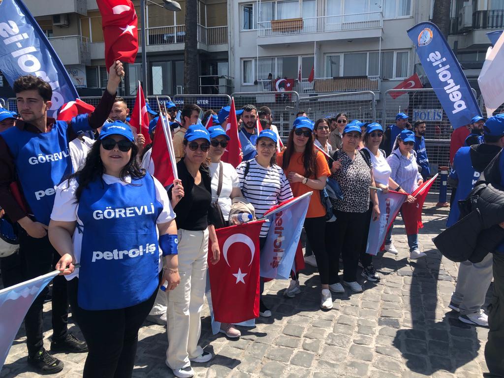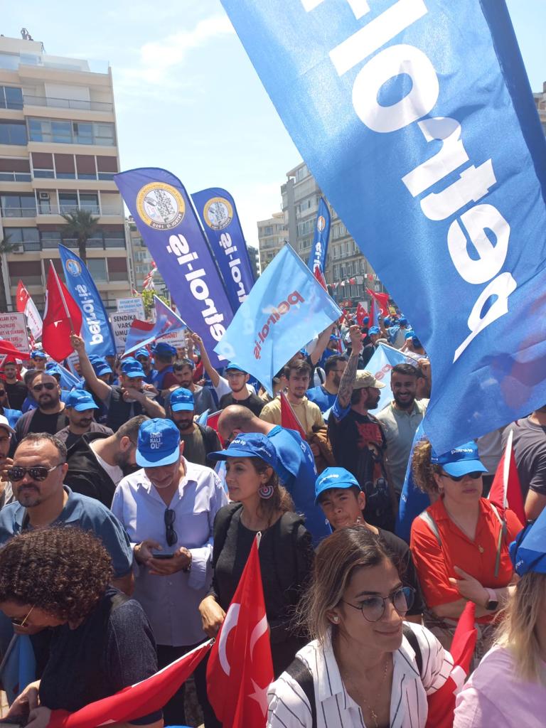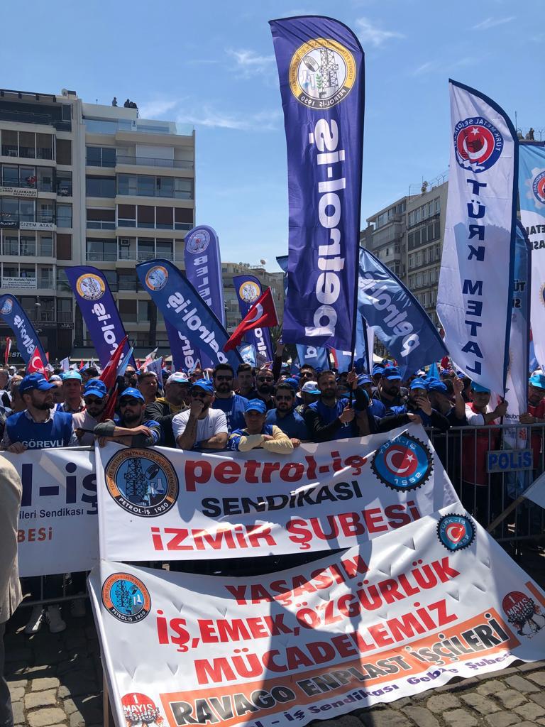 1 Mayıs İşçilerin Uluslararası Birlik, Mücadele ve Dayanışma günü İzmir’de, Gündoğdu Meydanın’da coşkulu bir şekilde kutlandı. Sendikaların öncülük ettiği 1 Mayıs kutlamasına katılım oldukça fazlaydı. Sendikamız İzmir Şube Yöneticileri ve Şubemize bağlı işyerlerinden üyelerimiz de haklarını korumak, taleplerini dile getirmek için Gündoğdu Meydanın’daydılar.