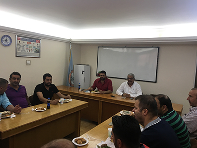 Bayramlaşma töreninde arkadaşlarımıza hitaben konuşma yapan Başkanımız A.Gani Gündoğdu, TPI A.Ş. Sasalı temsilcilerimizin getirdiği yemekleri yiyerek tüm üyelerimizin bayramlarını kutladı.