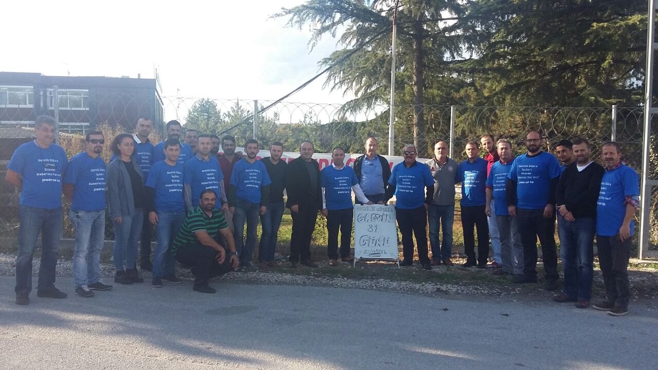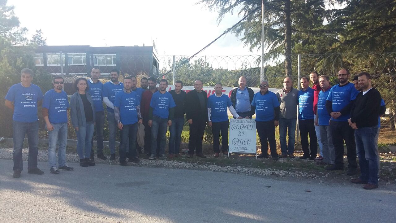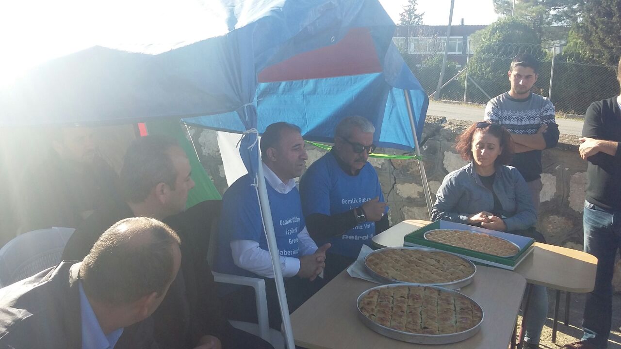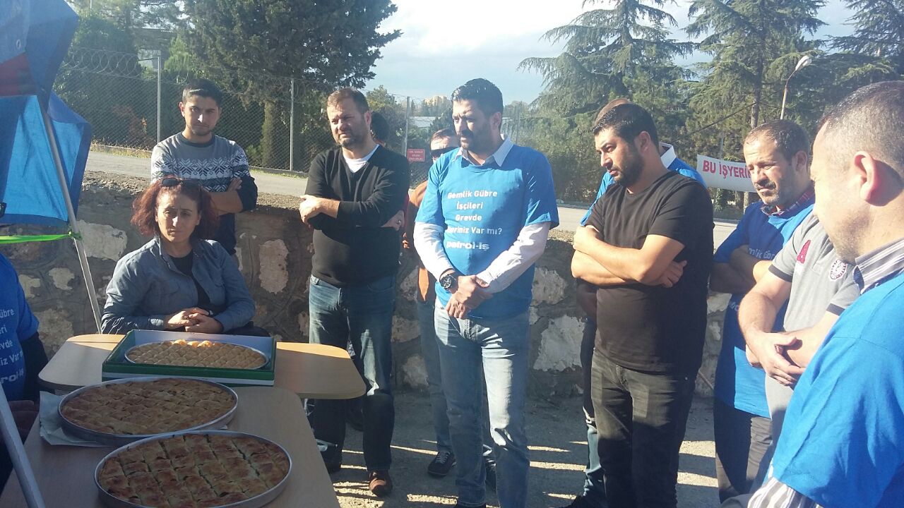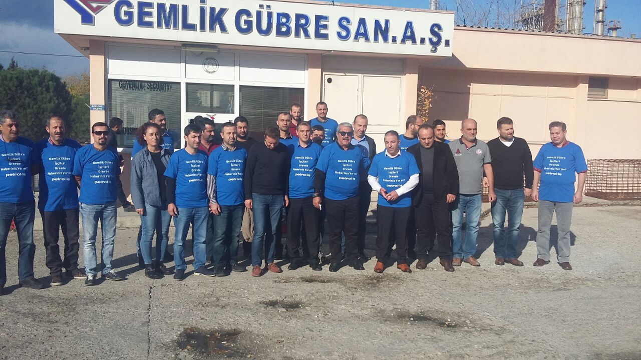 İzmir Şube Başkanımız A.Gani Gündoğdu, Başkan Yardımcılarımız Orhan Zengin, Özgür Şadi, işyeri temsilcilerimiz ve yönetimi Bursa Şubemize bağlı Gemlik Gübre A.Ş. işyerinde toplu iş sözleşmesinde yaşanan anlaşmazlıktan dolayı greve çıkan üyelerimize dayanışma ziyaretinde bulundular.