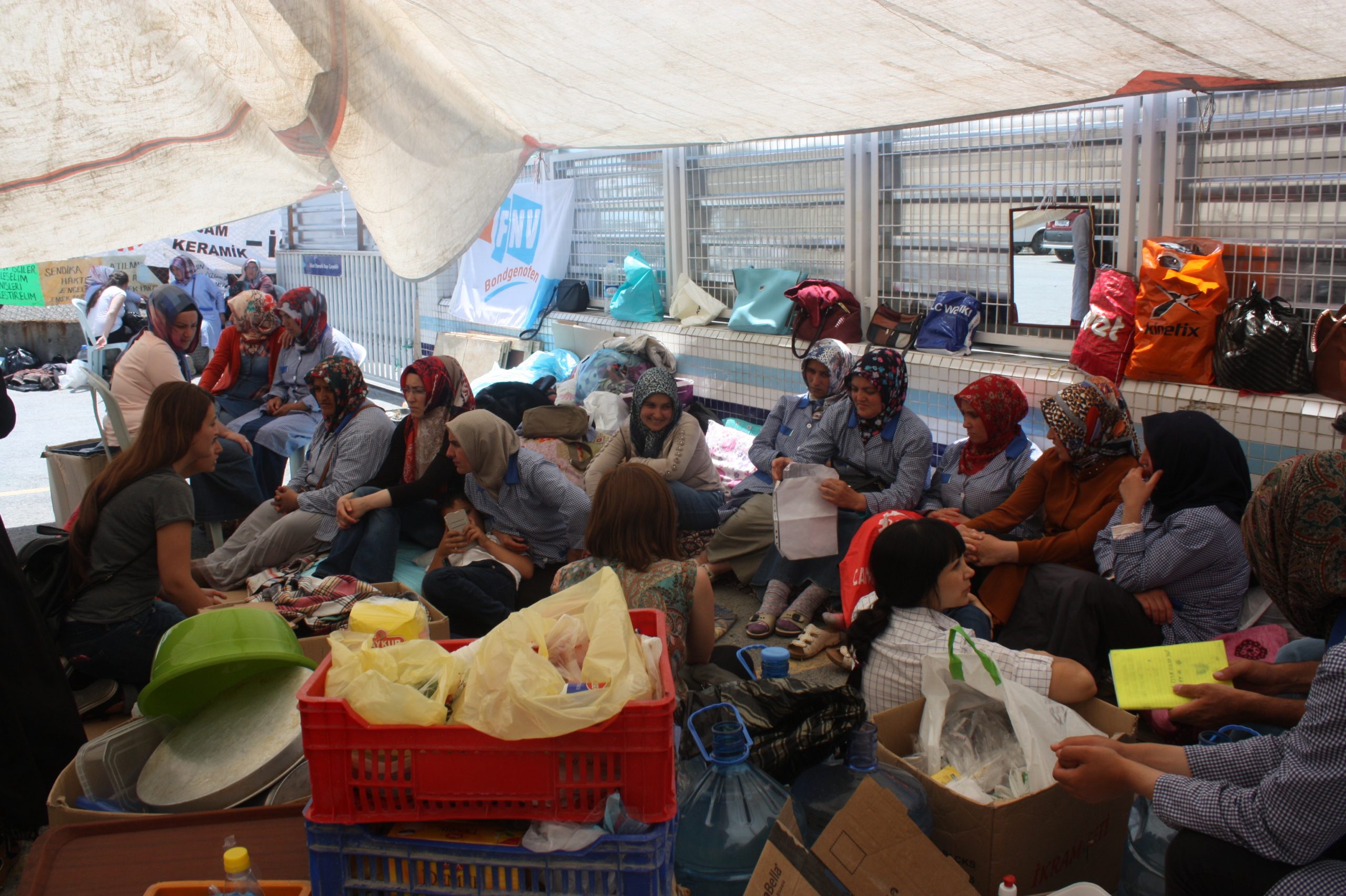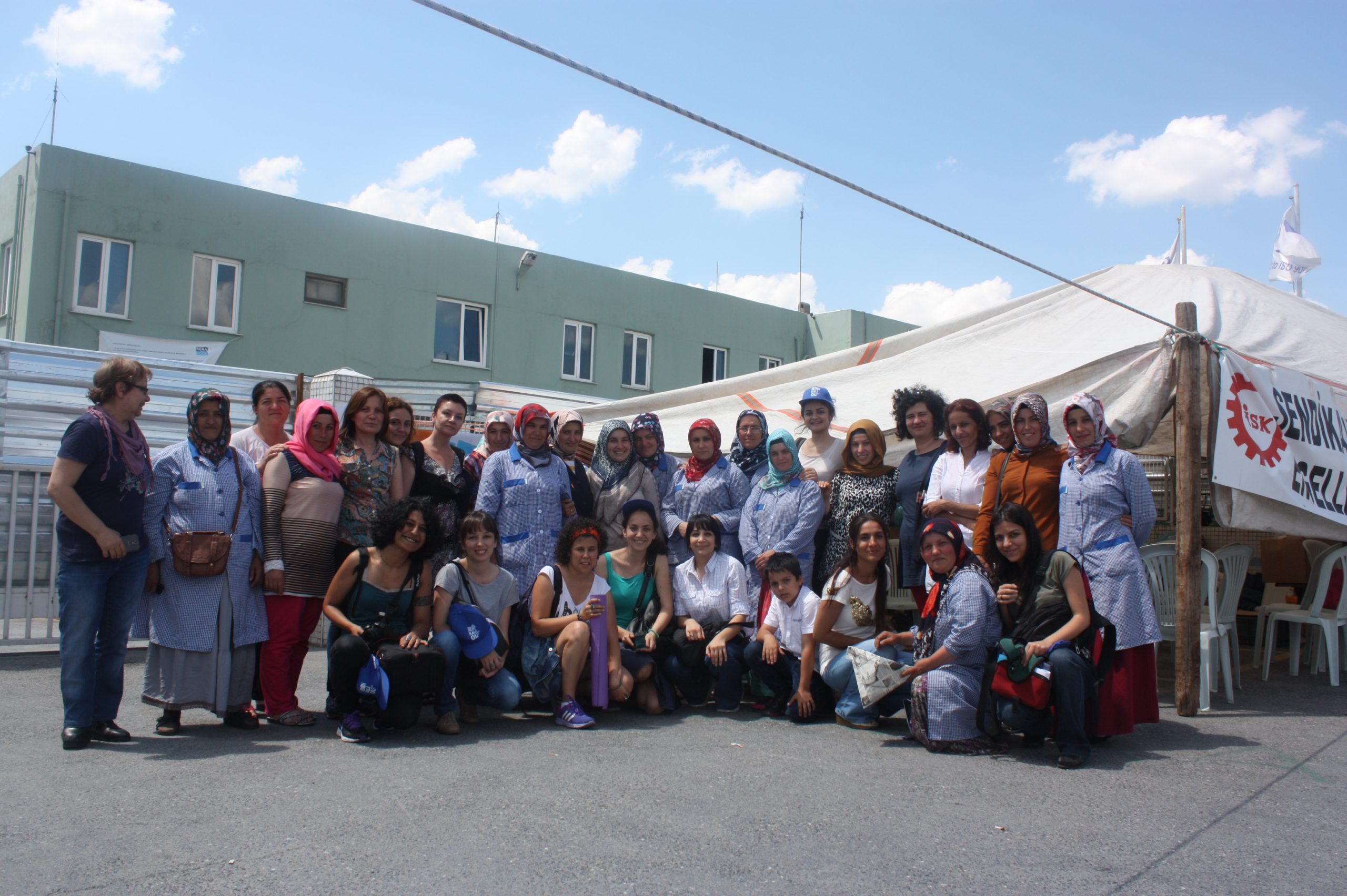 Alanda işçilerle yapılan görüşmelerin ardından hepberaber halaylar çekildi. Kadınlar, Çan Ortak/Norm Sanayi direniş ziyareti sonrasında alandan ayrılarak, başka bir direniş yeri olan SeraPool’e gitti. Kötü çalışma koşulları ve düşük ücretler nedeniyle Cam-Keramik-İş’te örgütlenen 120 civarında kadın, işten çıkarılmalarının ardından 11 Haziran’dan beri fabrika önünde direnişte.
