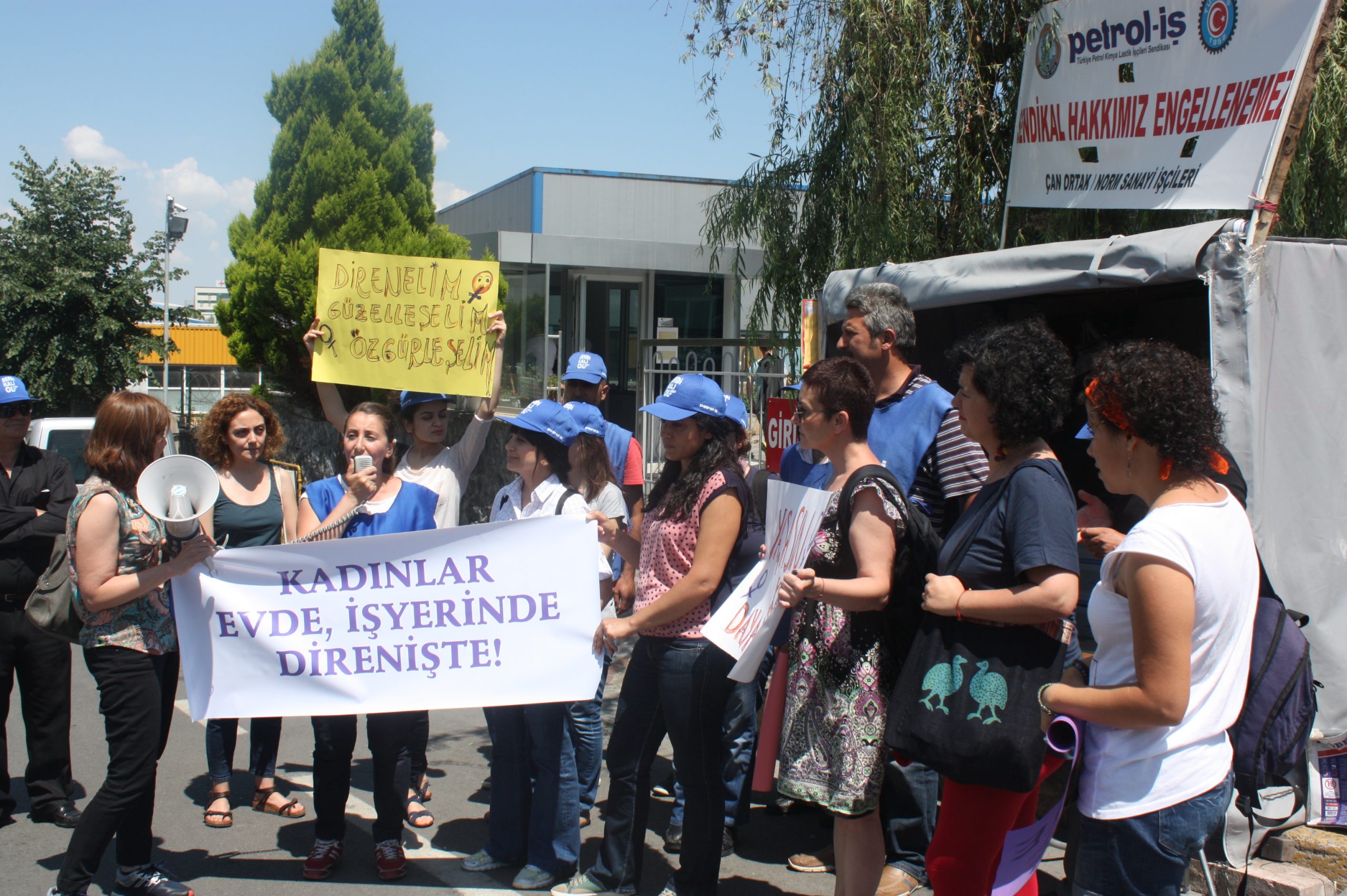 Petrol-İş Sendikası Kadın Dergisi’nin de içinde olduğu farklı platformlardan birçok kadın, Çan Ortak Girişimi Norm Sanayi ve SeraPool direnişine dayanışma ziyaretinde bulundu. İlk önce Tuzla’da faaliyet gösteren Çan Ortak Girişimi Norm Sanayi fabrikasına giden kadınlar, direnişteki işçilerle çalışma şartlarını konuştu.Kötü çalışma koşulları ve düşük ücretler nedeniyle sendikalaşan 12 işçi, işten çıkarılmalarının ardından işyeri önünde kurdukları çadırda 30 gündür direnişlerini sürdürüyor.