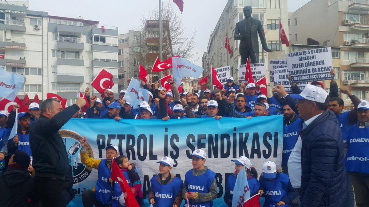 İstanbul Silivri’de bulunan ve 300’ü aşkın işçinin çalıştığı Kale Kayış fabrikasında işçiler, sendikamız Trakya Şubesi aracılığıyla Petrol-İş Sendikasında örgütlenmişlerdi. Kötü çalışma koşulları, işçi sağlığı ve iş güvenliği önlemlerinin yetersizliği ve işverenin tüm bu koşullara kayıtsız kalışına karşı Kale Kayış işçileri çalışmama hakkını kullanmaya başladılar.