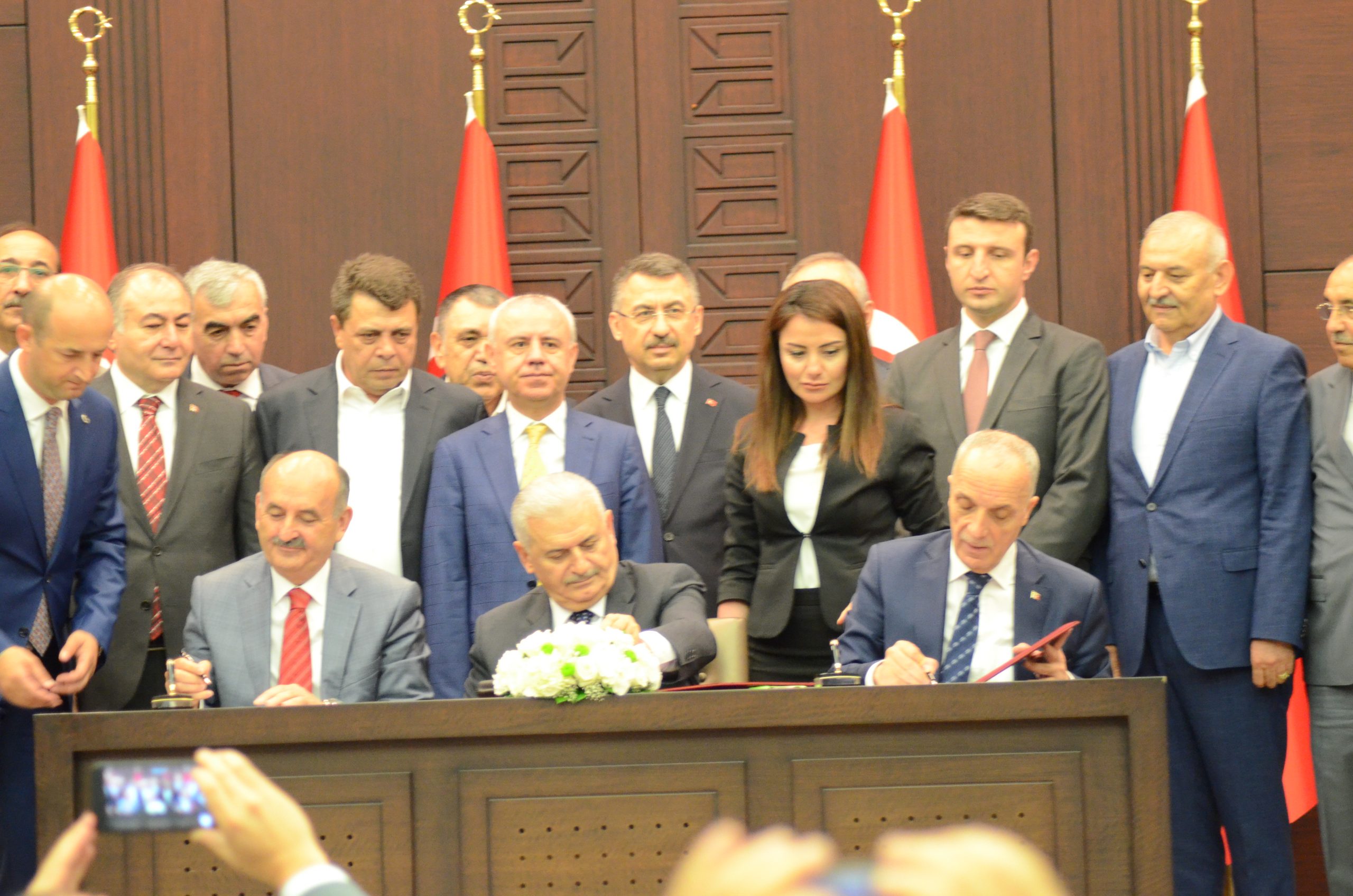 Kamu kesimi işyerlerinde çalışan yaklaşık 200 bin işçiyi kapsayan Kamu Kesimi Toplu İş Sözleşmeleri Çerçeve Protokolü, Başbakan Binali Yıldırım, Çalışma ve Sosyal Güvenlik Bakanı Mehmet Müezzinoğlu, TÜRK-İŞ Genel Başkanı Ergün Atalay, TÜRK-İŞ Yönetim Kurulu Üyeleri, Genel Başkanımız Ali Ufuk Yaşar’ın da aralarında bulunduğu TÜRK-İŞ Koordinasyon Kurulu Üyeleri ile uzmanların katılımıyla Başbakanlıkta yapılan törenle imzalandı.