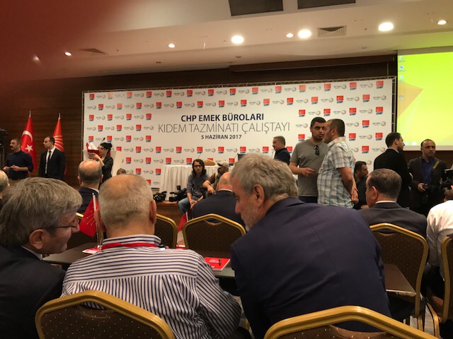 Ankara’da 5 Haziran 2017 tarihinde CHP Emek Büroları tarafından düzenlenen Kıdem Tazminatı Çalıştayı’na konfederasyonumuz Türk-İş’in Genel Başkanı Ergün Atalay, DİSK Genel Başkanı Kani Beko ve Hak-İş Genel Başkanı Mahmut Arslan, Ankara Şube Başkanımız Şuayip Gül, Başkan Yardımcılarımız Sabri Polat, Baki Turan, sendikaların temsilcileri, çok sayıda akademisyen ve uzmanlar katıldı. Çalıştayda ”Kıdem tazminatının fona devri”başta olmak üzere ”Türkiye’de emeğin genel durumu”, “Kıdem tazminatı fonu ne anlama geliyor ?”, “Fon ne getiriyor?” konuları ele alındı.