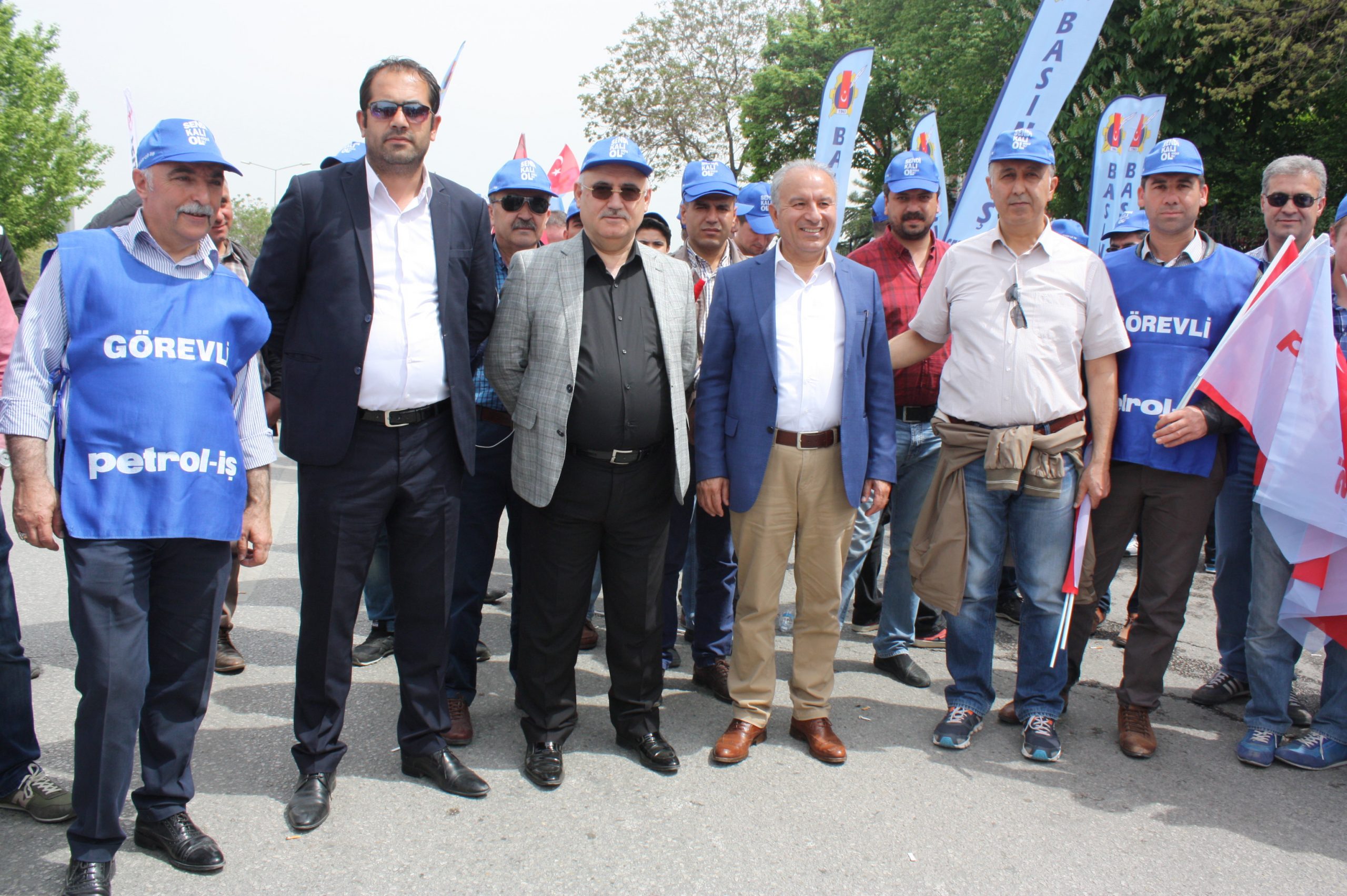 Sabah saatlerinde Ankara Hipodrom Caddesi’nde toplanılmasının ardından Petrol-İş merkez yöneticilerimiz, şube başkanlarımız, temsilcilerimiz ve üyelerimiz saat 9.30’dan itibaren yürüyüşe geçti. Diğer sendikalarla birlikte on binlerce emekçinin oluşturduğu kortej, sloganlar eşliğinde Anadolu Meydanında bulunan miting alanına ulaştı. Bu yıl 1 Mayıs kutlamalarına Ankara, Adıyaman, Adana, Bursa, Kırıkkale, Kocaeli, İstanbul 1 Nolu Şube, İstanbul 2 Nolu ve Mersin şube yöneticilerimiz ve üyelerimizle kitlesel bir biçimde katılan Petrol-İş Sendikası’nı, merkez yönetim düzeyinde Genel Başkanımız Ali Ufuk Yaşar, Genel Sekreterimiz Ahmet Kabaca temsil ettiler.