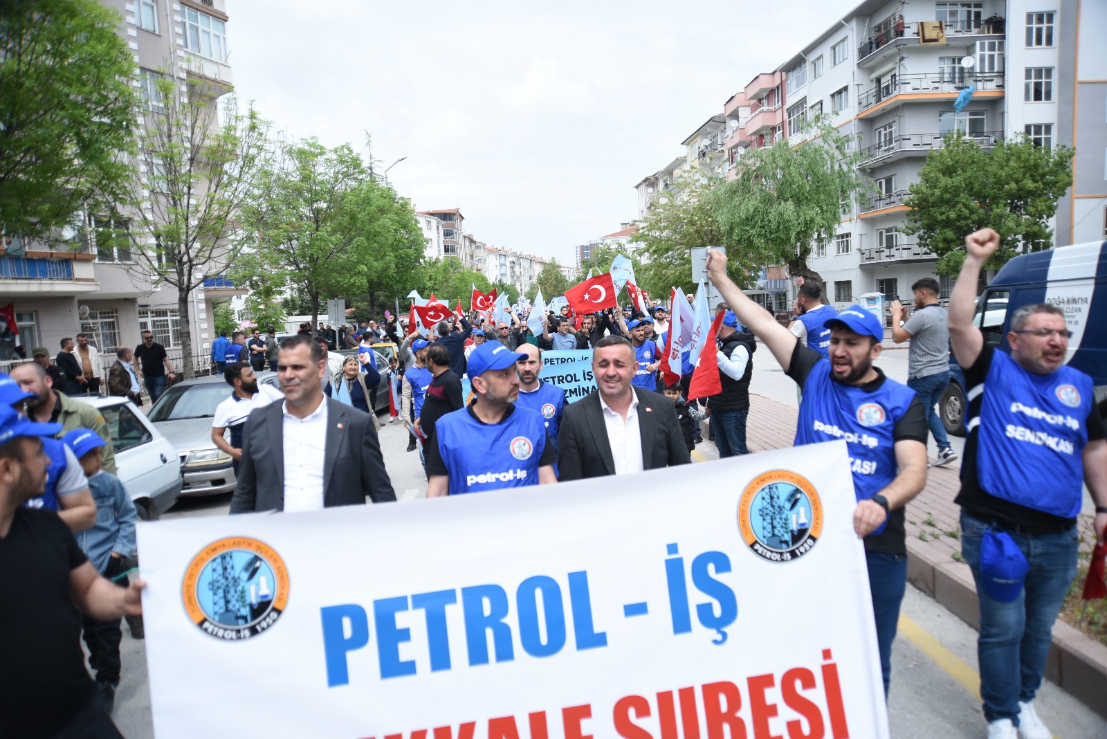 Sendikamız Kırıkkale Şubesi 1 Mayıs’ta alanlara çıkarak bayramlarını coşkuyla kutladılar. Kırşehir İrtibat Bürosu önünde başlayan 1 Mayıs kutlaması, halay ve marşlarla devam etti. İrtibat Bürosu önünde yapılan kutlamaların ardından Kırşehir 1 Mayıs Tertip Komitesi’nin organize ettiği programa geçildi. Tertip Komitesi Üyesi Kırıkkale Şube Başkanımız Mehmet Doğan burada yaptığı konuşmasında vergide adaletsizlik, kıdem tazminatı, düşük ücretler, emekli aylıkları ve hayat pahalılığı başlıklarına vurgu yaptı. Kırşehir’deki kutlamaların ardından Şube Başkan Yardımcısı Fatih Küşüm ve TÜPRAŞ, MKE Barut Fabrikası ve BOTAŞ’ta çalışan üyelerimiz Ankara Tandoğan’da yapılan 1 Mayıs programına katıldılar.