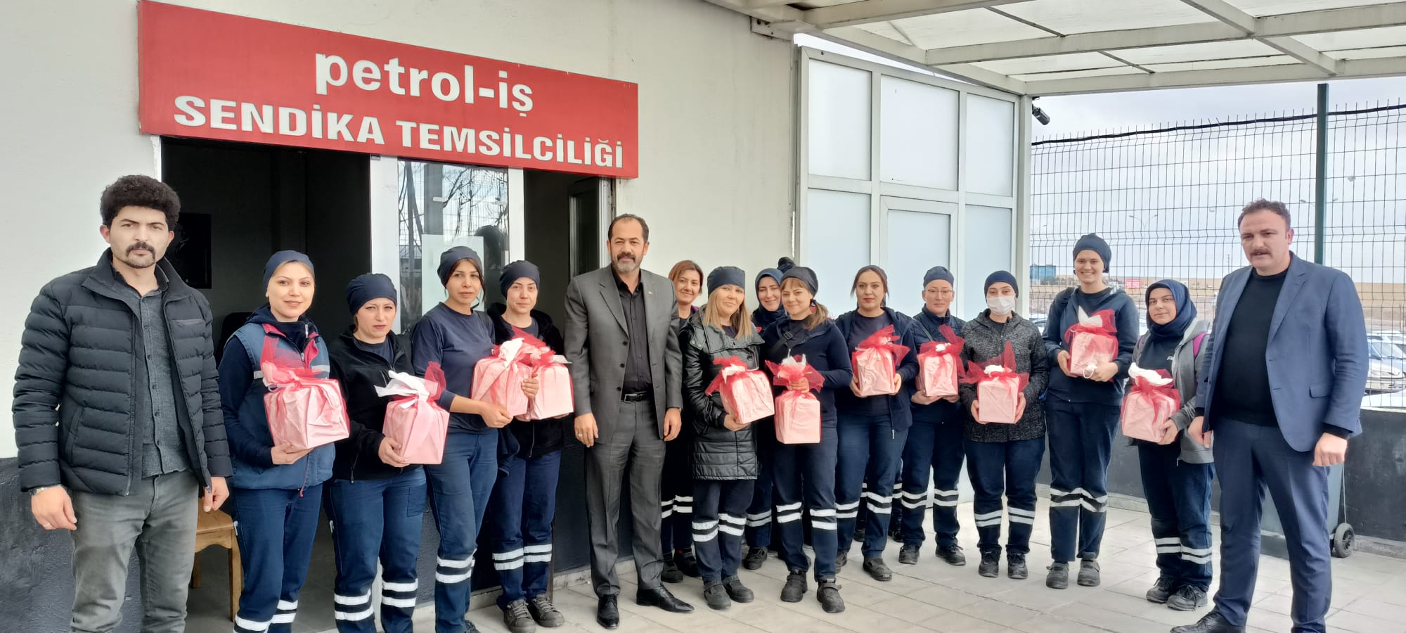 Sendikamız Kırıkkale Şubesinde 8 Mart Kadınların Uluslararası Mücadele ve Dayanışma günü kutlandı. 8 Mart Dünya Kadınlar Günü dolayısıyla Kırıkkale Şube Başkanımız Murat Kaya, Şube Başkan Yardımcılarımız Osman Çakıl, Osman Aslan (Mali) ve temsilcilerimizle beraber örgütlü olduğumuz işyerlerinde çalışan kadın üyelerimizle biraraya gelerek bu anlamlı günlerini kutladılar.