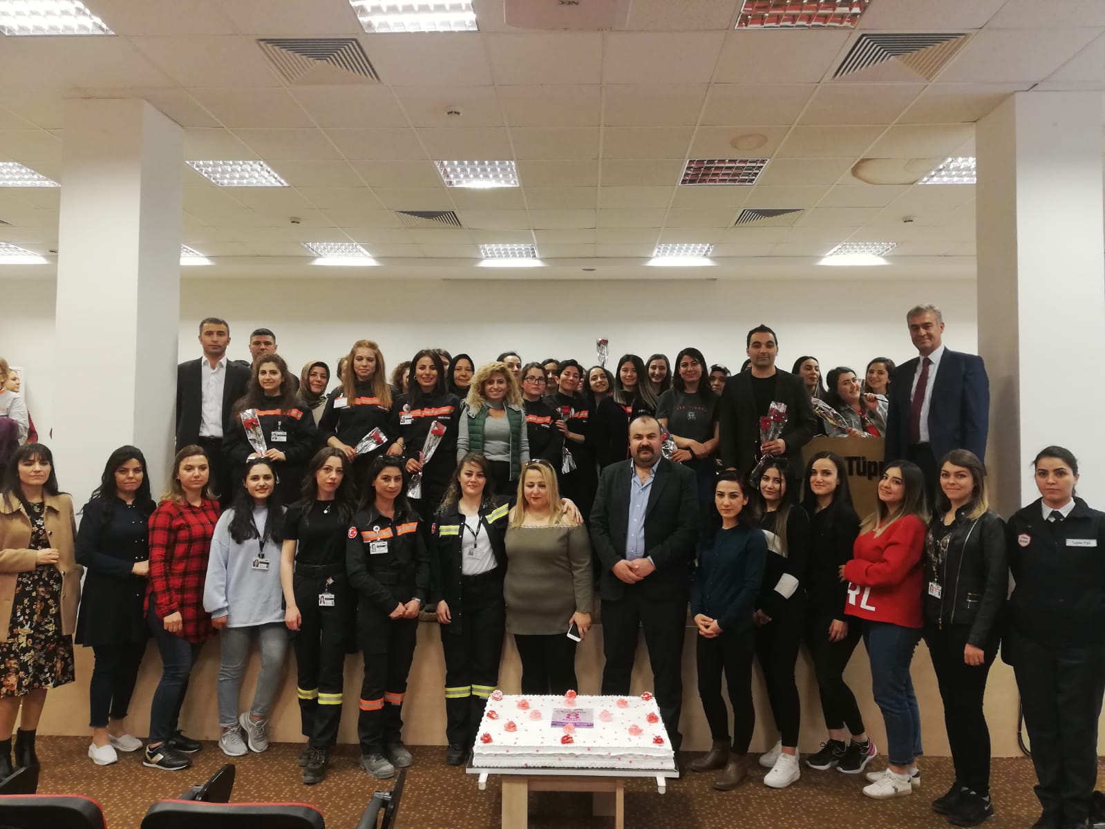 Kadınların Uluslararası Mücadele ve Dayanışma Günü 8 Mart, Kırıkkale Şubemizin örgütlü olduğu Tüpraş işyerinde de kutlandı. Şube Başkan Yardımcımız Osman Çakıl ve işyeri temsilcilerimiz Tüpraş’ta çalışan kadın üyelerimizin 8 Mart’ını tebrik ederek, 8 Mart’ın birlik ve dayanışmayı güçlendirmesi temennisinde bulundular.