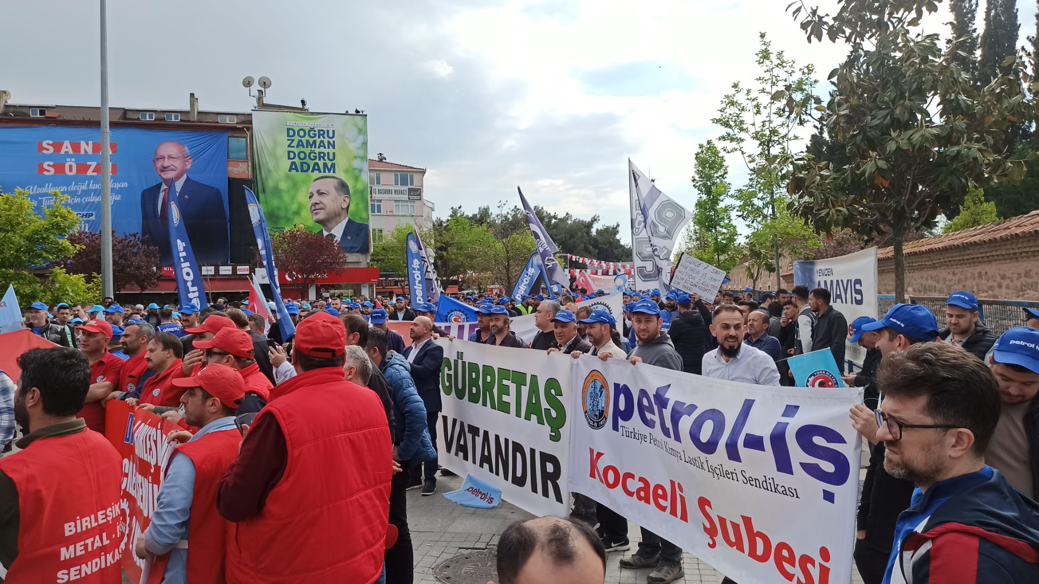 Sendikamız Kocaeli Şubesi, barış ve kardeşlik içerisinde yaşanılacak bir dünya için mücadele veren emekçilerin 1 Mayıs Birlik, Mücadele ve Dayanışma Gününü Gebze’de kutladı. Gebze’de Trafo Meydanı’nda yapılan programa katılan Kocaeli Şube Yöneticileri ve üyelerimiz haklı taleplerini bir kez daha 1 Mayıs alanında dile getirdiler. Özellikle tis müzakerelerinin devam ettiği ve taleplerin şimdiye kadar yerine getirilmediği Gübretaş ve Ege Kimya işyerlerinde yaşanan sıkıntılar hem sloganlarla hem de üyelerimizin taşıdıkları pankartlarla kamuoyuna bilgisine sunuldu.