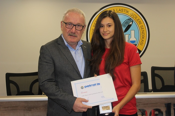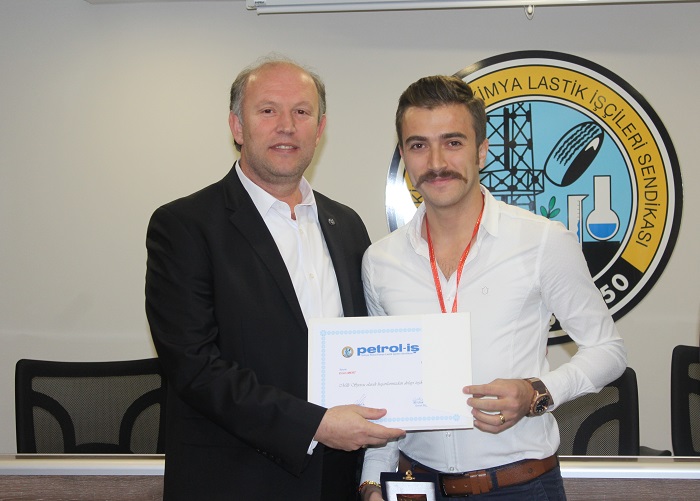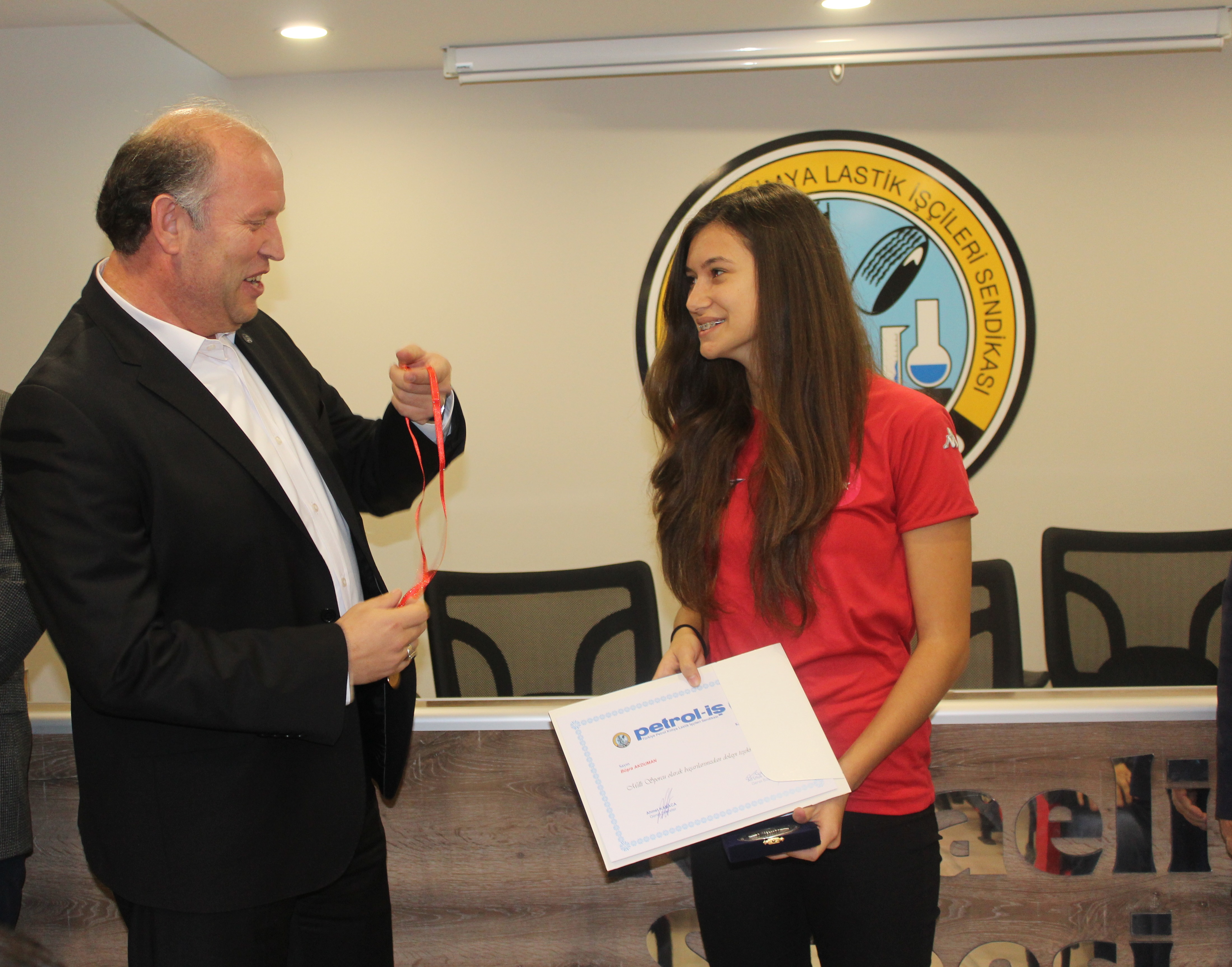 İşitme Engelliler Milli Futbol Takımında Avrupa Şampiyonluğu yaşayan, Tüpraş İzmit Rafineri Müdürlüğü’nde çalışan üyemiz Ersin Mert, “Crotia Open” Uluslararası Zagreb Yarışlarına YE8 dalında ekip halinde altın madalya alan Tüpraş İzmit Rafinerisi  çalışanı İsmail Uyar’ın oğlu Behlül Uyar, Kocaeli Şube Başkanımız Salih Akduman’ın Milli yüzücü olan ve katılmış olduğu turnuvalarda başarı sağlayan kızı Büşra Akduman, Petrol-iş Marş yarışmasında dereceye giren Kocaeli Şube çalışanımız Behlül Engin’e plaket ve ödülleri Genel Merkez ve Kocaeli Şube yöneticilerimiz tarafından verildi.