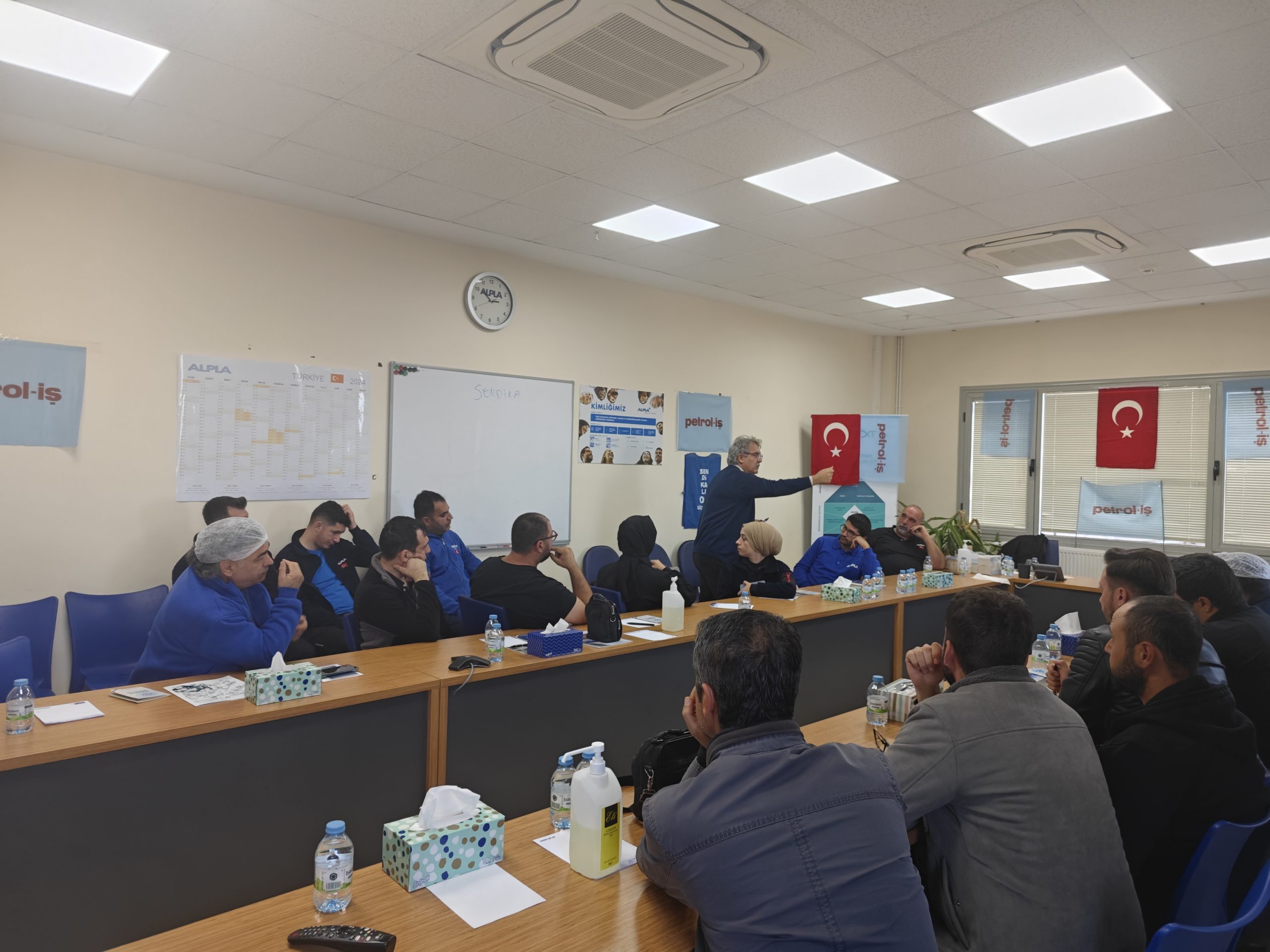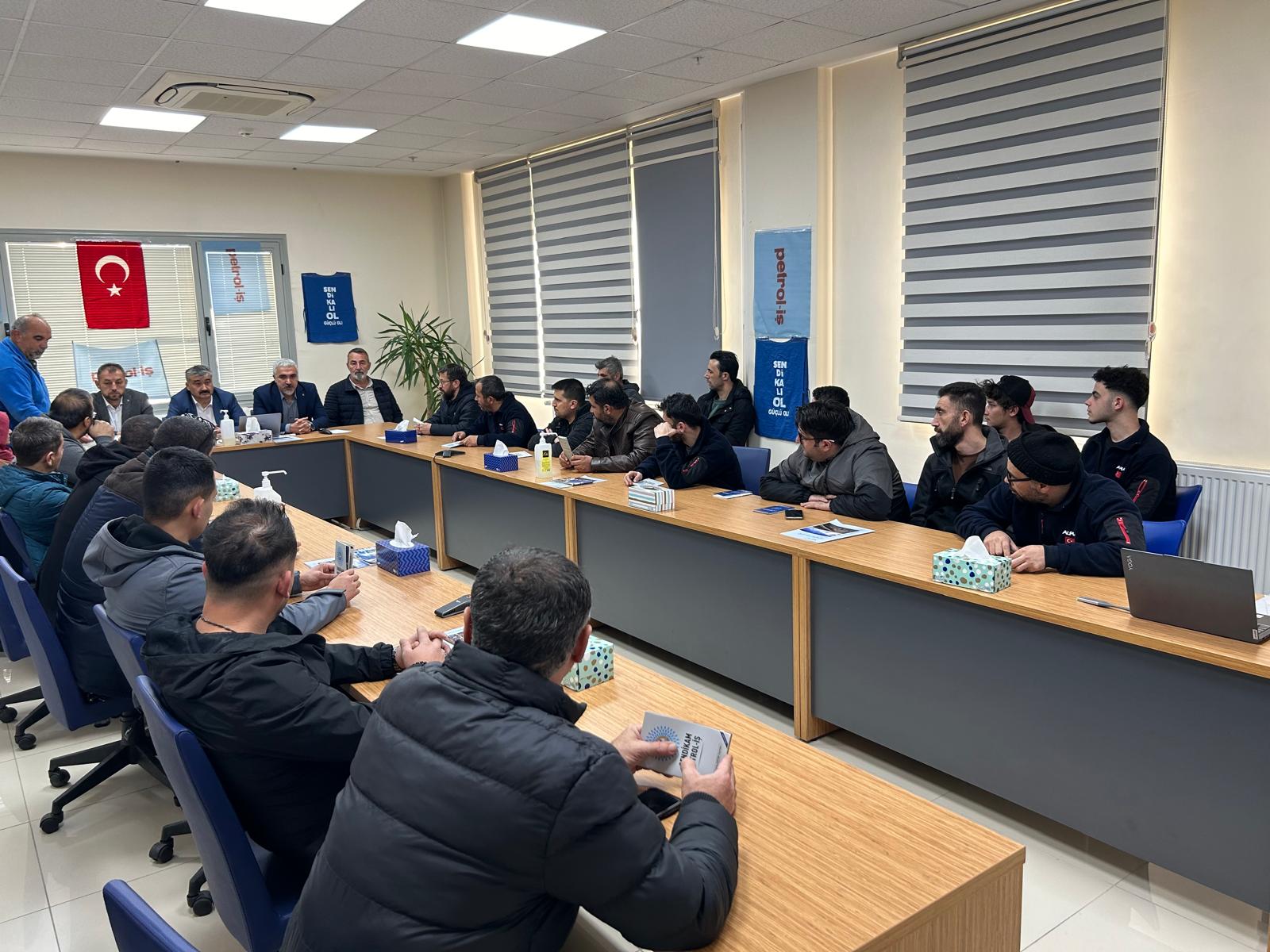 İşçilerin sorularının cevaplanmasının ardından, Eğitim Uzmanlarımızın gerçekleştirdiği eğitime geçildi. Eğitimlerde, sendikanın ne olduğu, neden sendikalı olduğumuz, çalışma hayatında hangi tarafların bulunduğu aktarılırken Petrol-İş Sendikası’nın tarihi de ele alındı.