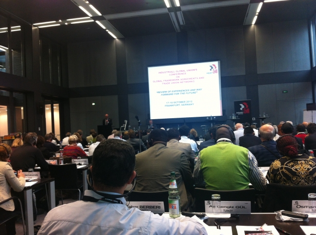 140 ülkeden 50 milyon sanayi işçisini temsil eden IndustriALL Küresel Sendika tarafından 17-18 Ekim günlerinde IG Metall’in sahipliğiyle Frankfurt’ta düzenlenen, küresel çerçeve sözleşmeler ve sendikal ağlar konulu konferans, sonuçlandı. Yeni sendikal ağlar için hedef şirketler seçilecek, asgari standartlar belirlenecek, sendikal ağlar için mali kaynaklar güçlendirilecek…