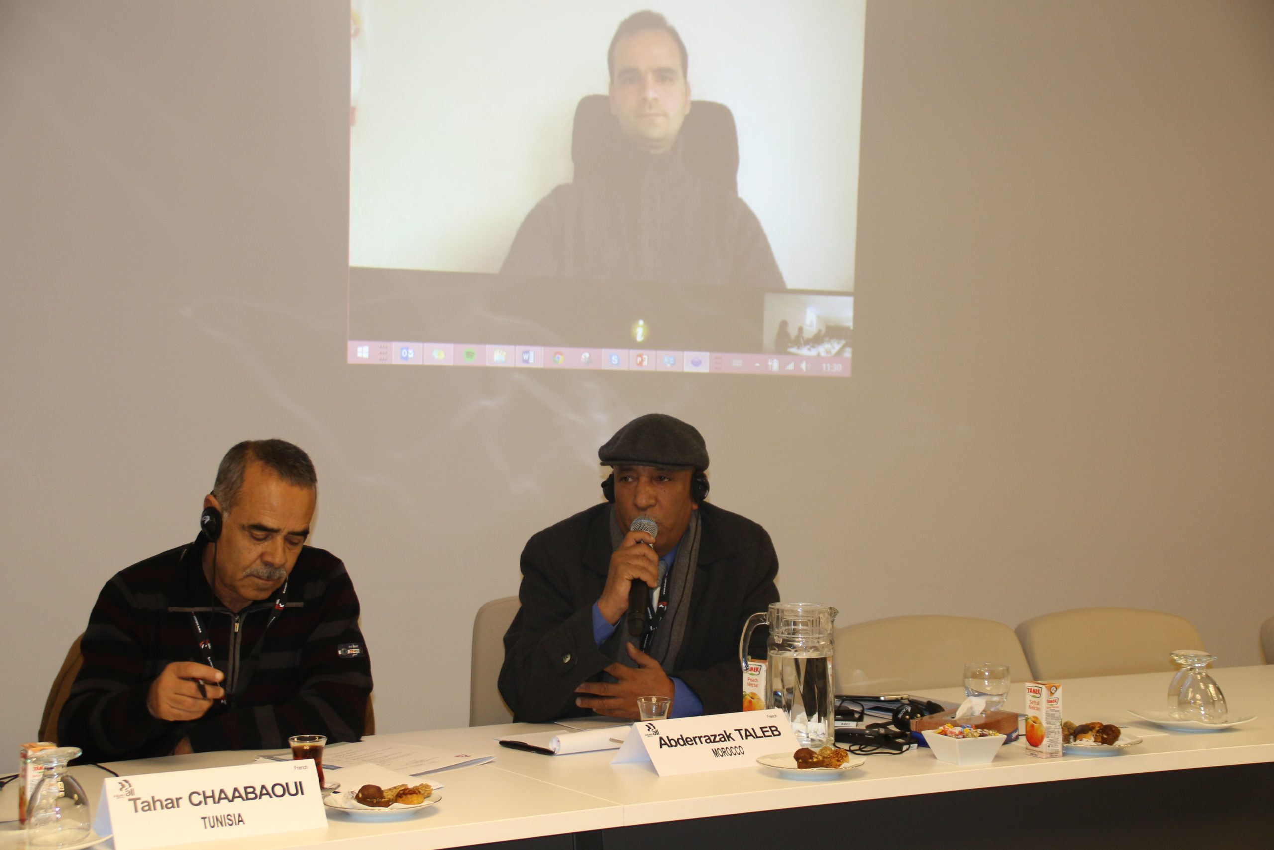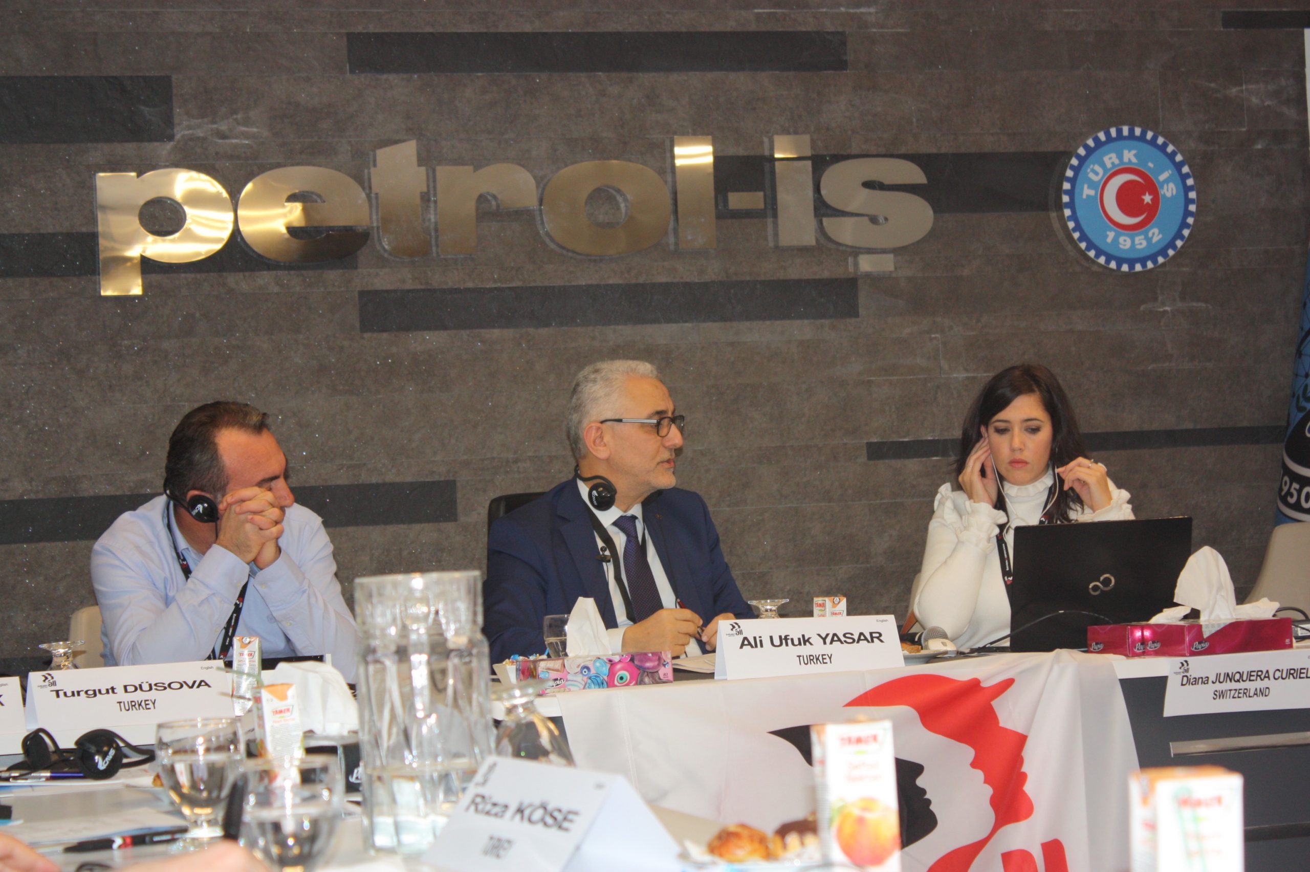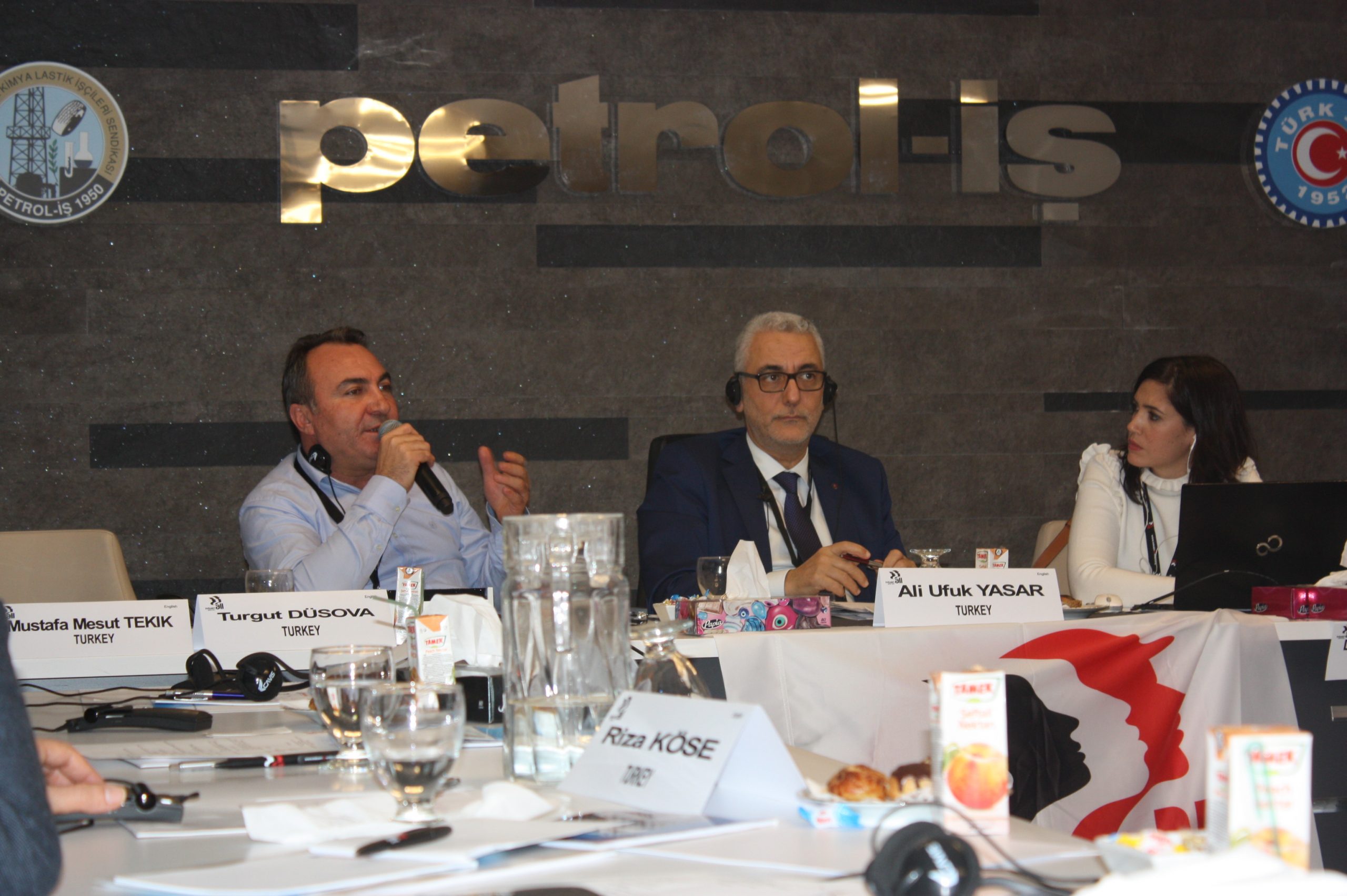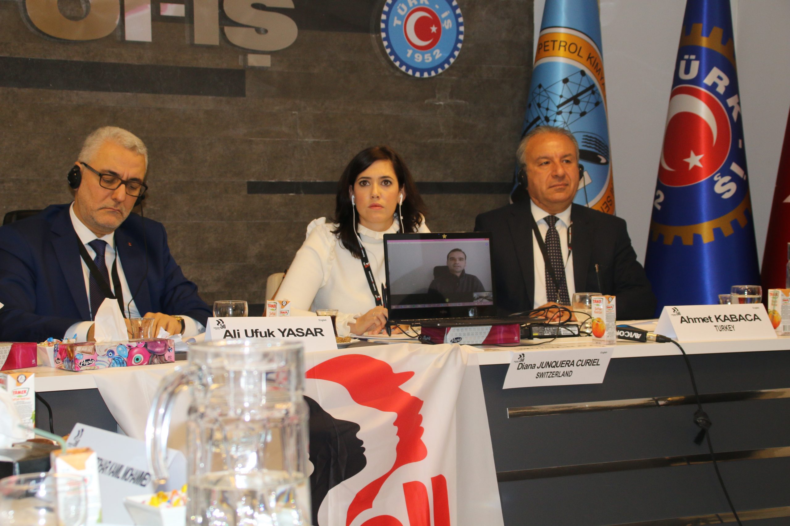 Almanya’da bulunan IndustriALL Küresel Sendika MENA Bölgesi İrtibat Sorumlusu Ahmed Kamel ise toplantıya Skype üzerinden katıldı.