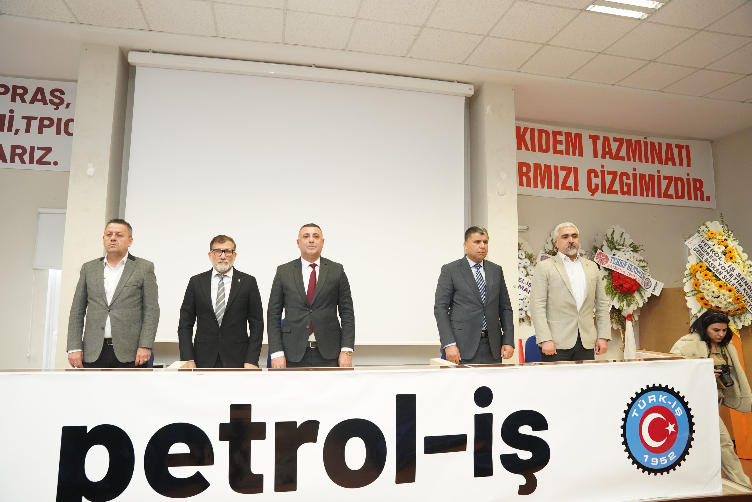 İstiklal Marşı’nın okunmasının ardından ülke ve dünyadaki gelişmeleri değerlendirmek, sendikal ve sınıfsal mücadelede Petrol-İş Sendikası’nın konumunu aktarması için Genel Başkanımız Süleyman Akyüz kürsüye davet edildi.