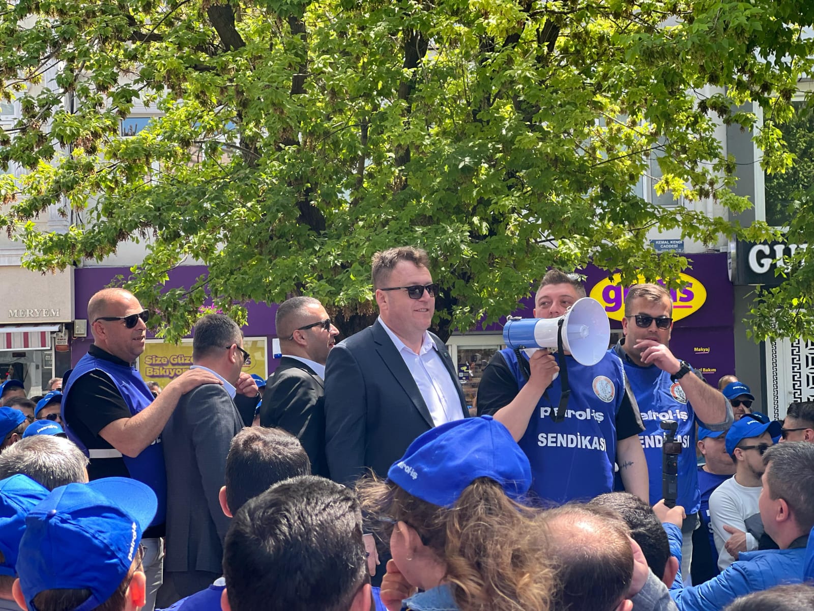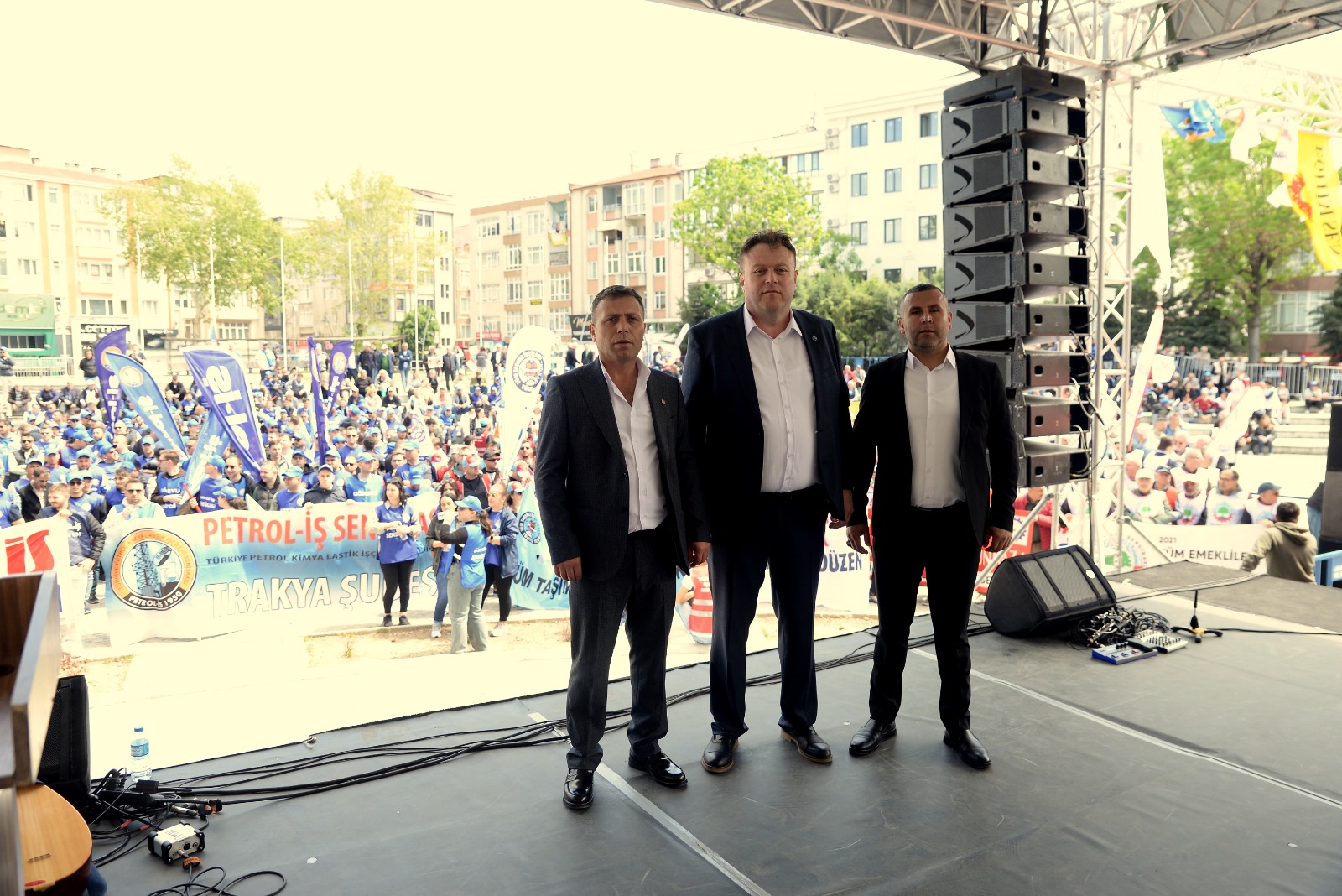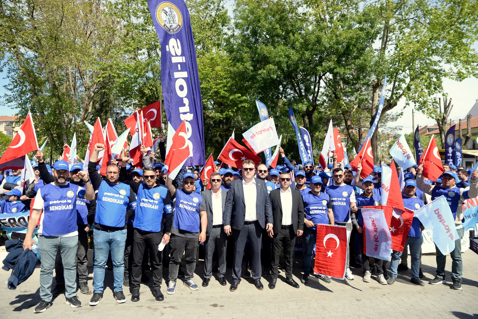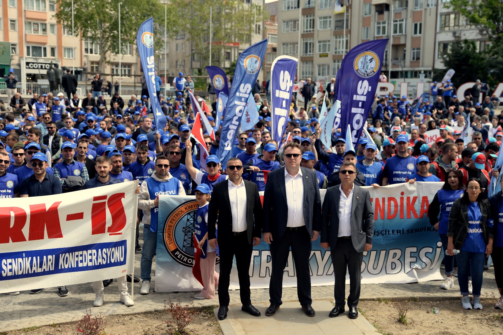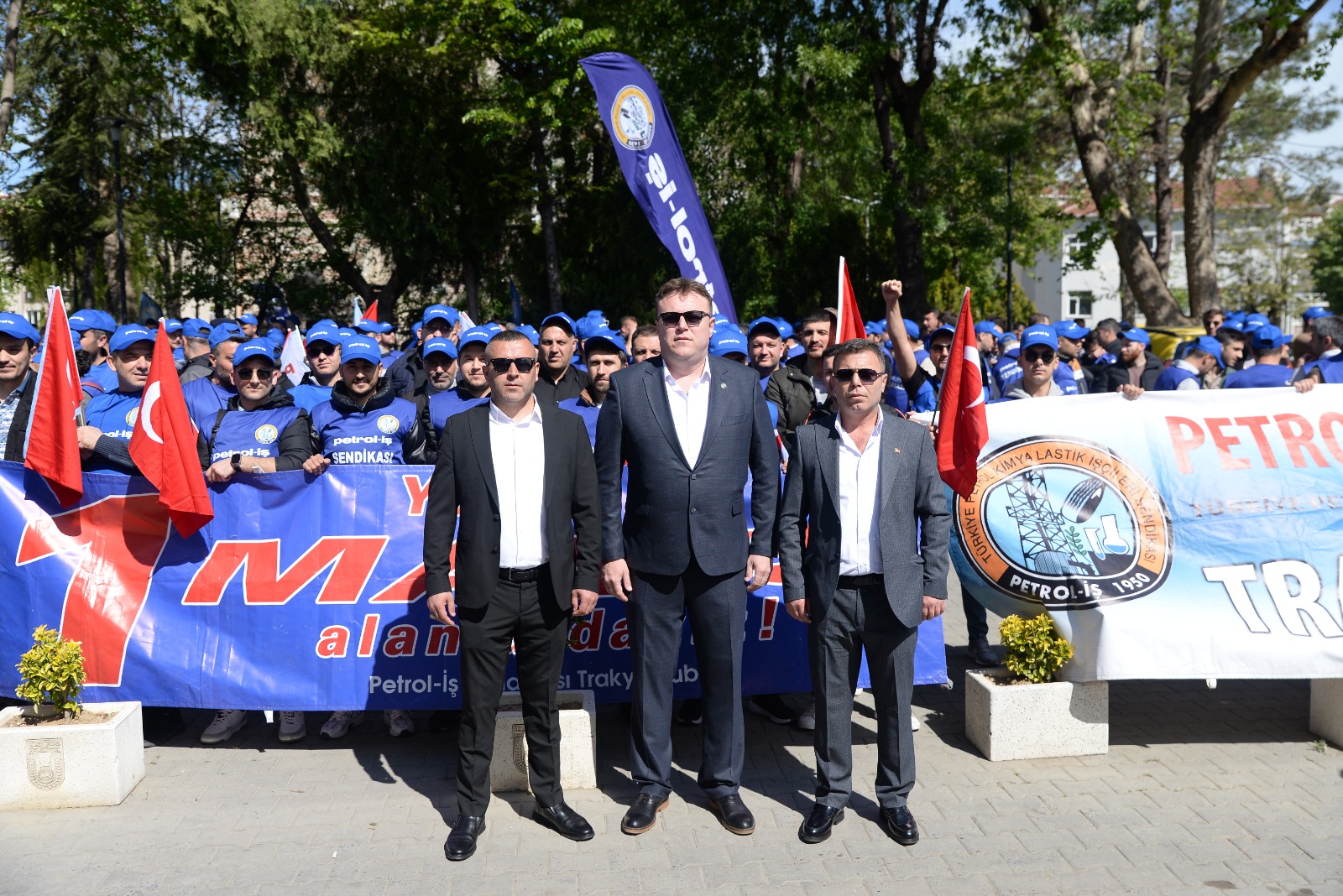 Sendikamız Trakya Şubesi de şube yönetimi ve örgütlü olduğu işyerlerinden üyelerinin yoğun katılımı ile mitingde yerini aldı. Sloganlarla miting meydanına yürüyen Petrol-İş Korteji canlılığı ve enerjisiyle mitinge renk kattı. Miting tertip komitesi adına konuşmacılar arasında yer alan Trakya Şube Başkanımız Ümit Çetintaş da kitleye hitaben bir konuşma yaptı. Konuşmasında özelleştirmelerden vazgeçilerek kamucu yönetim ve yeni istihdam alanlarının açılması gerektiğini ifade Çetintaş, işçi ve emekçilerin, emeklilerin açlık sınırının altında çalışmaya ve yaşamaya zorlandığını belirtti. Ümit Çetintaş, “Bugün ülkede coşku ile kutladığımız 1 Mayıs İşçi ve Emekçi Bayramımız kutlu olsun. Bizler haklarımızı ve alın terimizin karşılığını ancak birlik ve mücadele içinde hareket ederek alırız. Kurtuluş yok yok tek başına ya hep beraber ya hiç birimiz ” dedi.