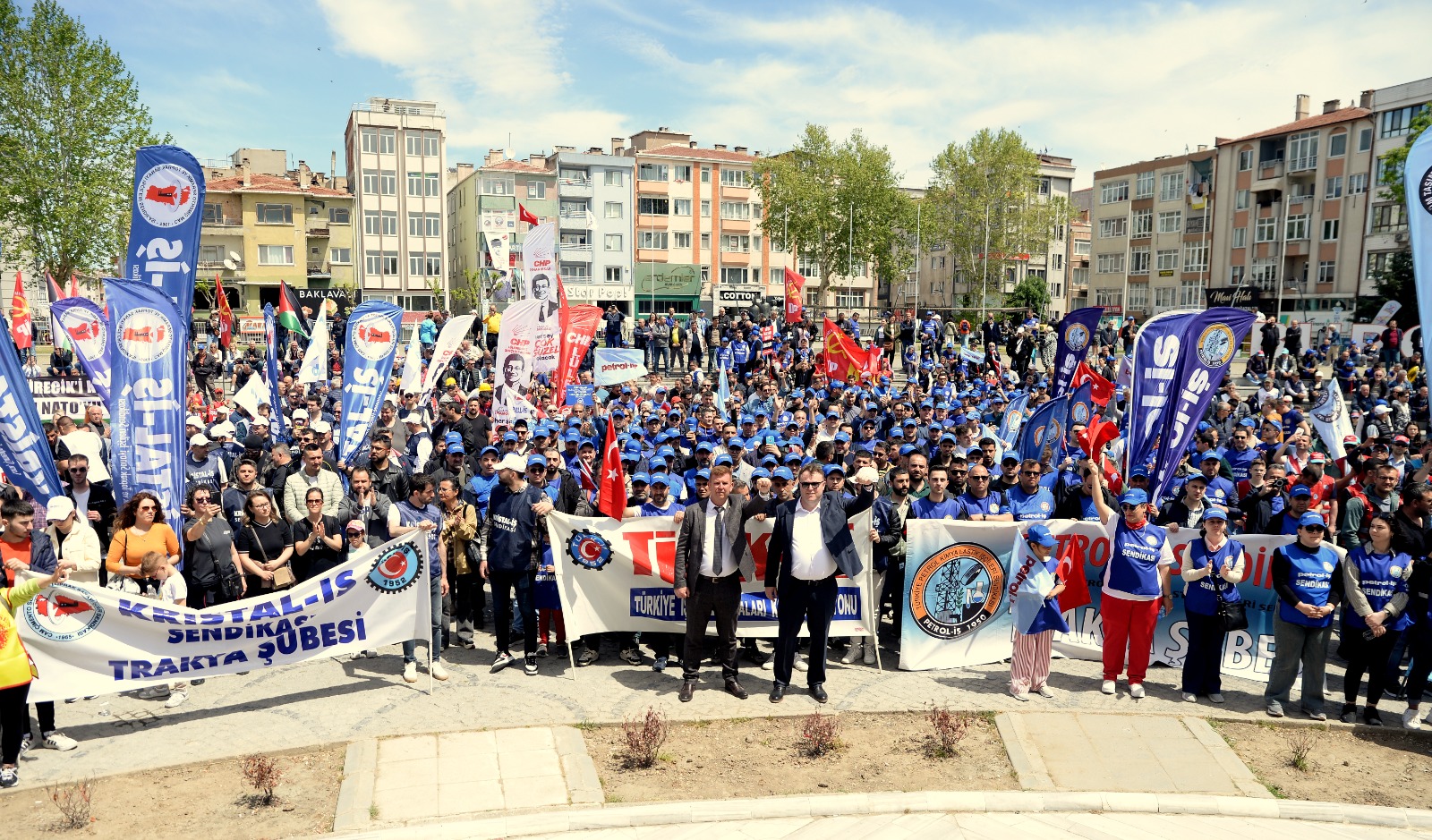 Kırklareli’nin Lüleburgaz ilçesinde 1 Mayıs İşçilerin Uluslararası Birlik, Mücadele ve Dayanışma günü Lüleburgaz Emek ve Demokrasi Platformu’nun koordinasyonunda, sendikaların yoğun katılımı ile coşkulu bir şekilde kutlandı. Sabah saatlerinde Eski Hükümet Konağı önünde toplanan sendikalar, sivil toplum kuruluşları ve vatandaşlar, Kongre Meydanı’na sloganlarla yürüyüş gerçekleştirdiler.