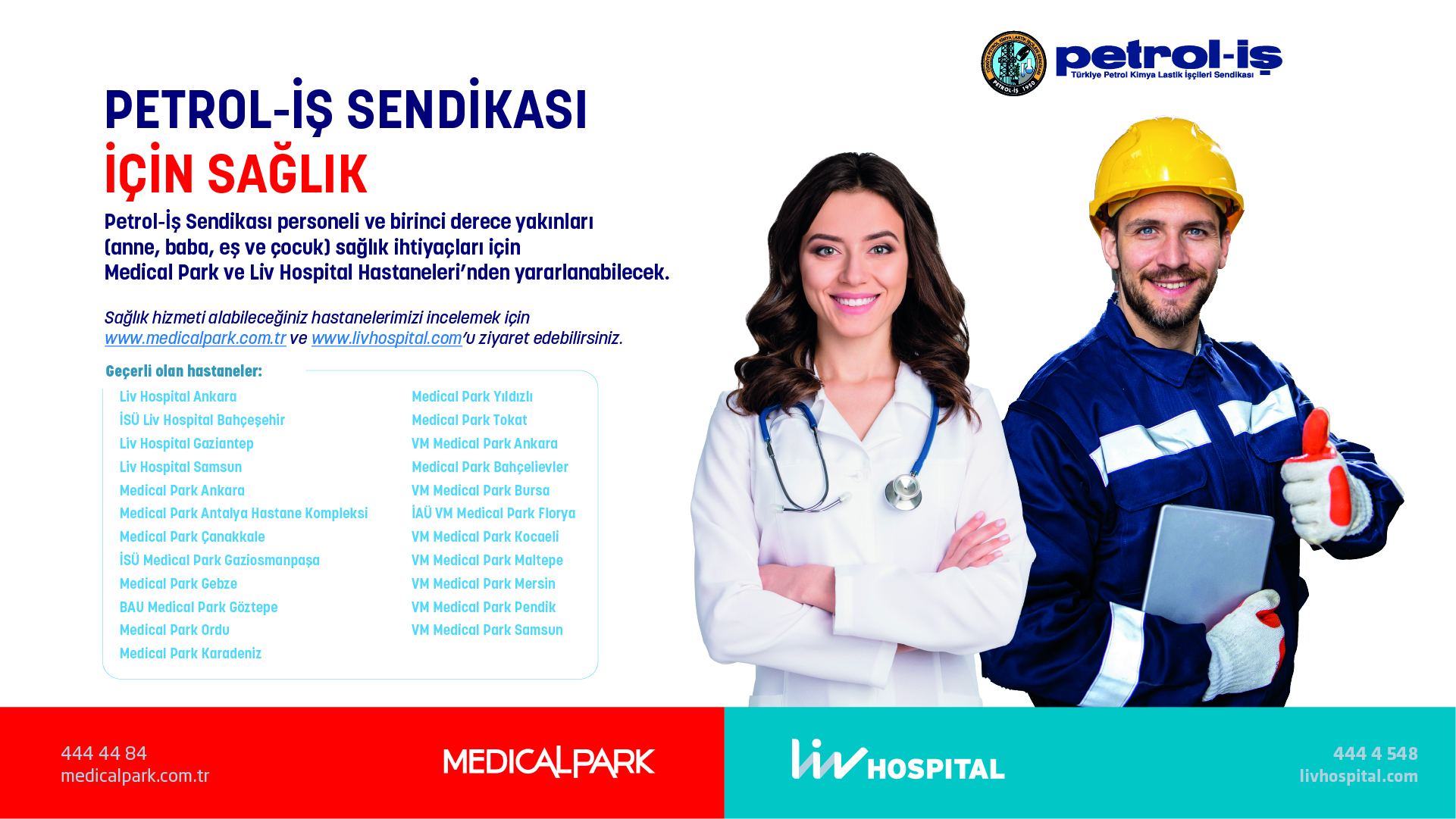 Sendikamız ile Medicalpark Göztepe ve Medicalpark Pendik Diş Klinikleri arasında üyelerimizin uygun fiyatlarla sağlık hizmeti alması konusunda kurumsal anlaşma yapılmıştır. Detaylara web sitemizin anlaşmalı kurumlar panelinden ulaşabilirsiniz.