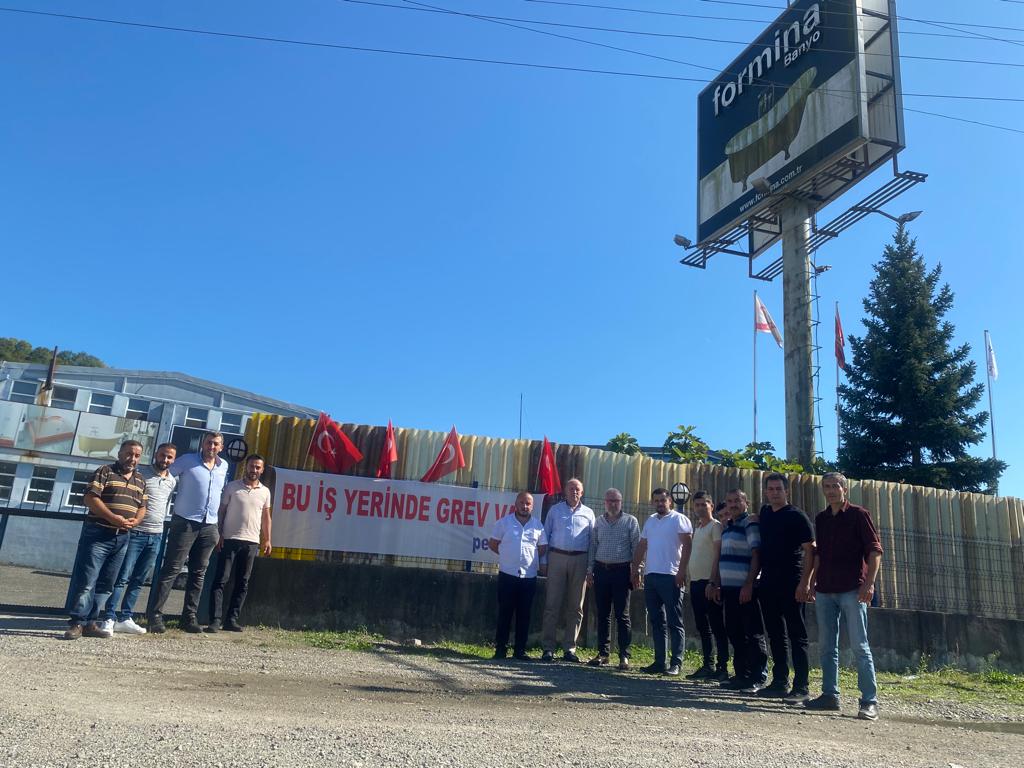 Ece Seramik işyerindeki grevimiz 69. gününde. Düzce Şubemizin örgütlü olduğu Ece Seramik ile sendikamız arasında sürdürülen toplu sözleşme görüşmelerinin uyuşmazlıkla sonuçlanması ve üyelerimizin taleplerinin karşılanmaması sebebiyle 27 Temmuz günü başlayan grevimiz kararlılıkla devam ediyor.