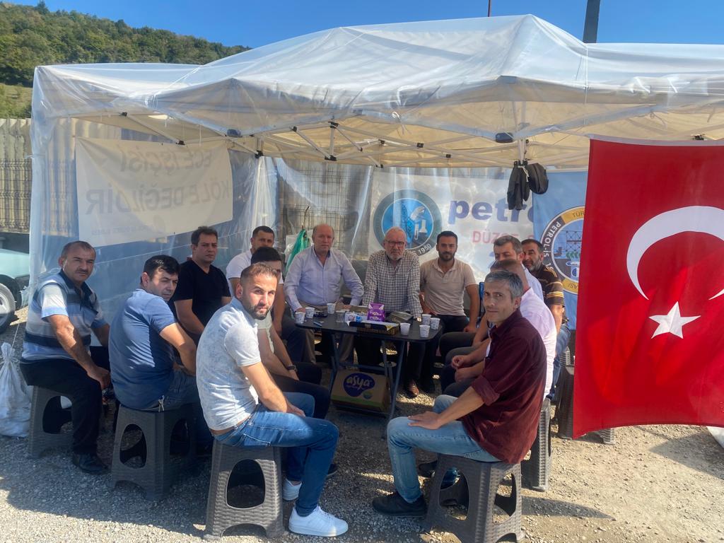 Sendikamız Merkez Yönetimi de bu süre zarfında grevdeki üyelerimiz ve Düzce Şubemizle biraraya gelerek grevin seyrine ilişkin fikir alışverişinde bulunuyor hem de başarıya ulaşması için kararlılık mesajı veriyorlar. Bu kapsamda 30 Eylül Cuma günü, grevin 66. gününde sendikamız Genel Sekreteri Salih Akduman ve Genel Yönetim Sekreteri Ünal Akbulut grev alanını ziyaret ederek üyelerimizle biraraya geldiler.