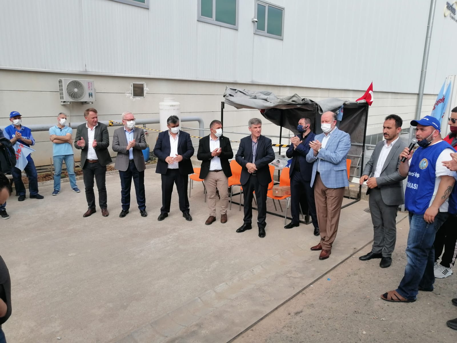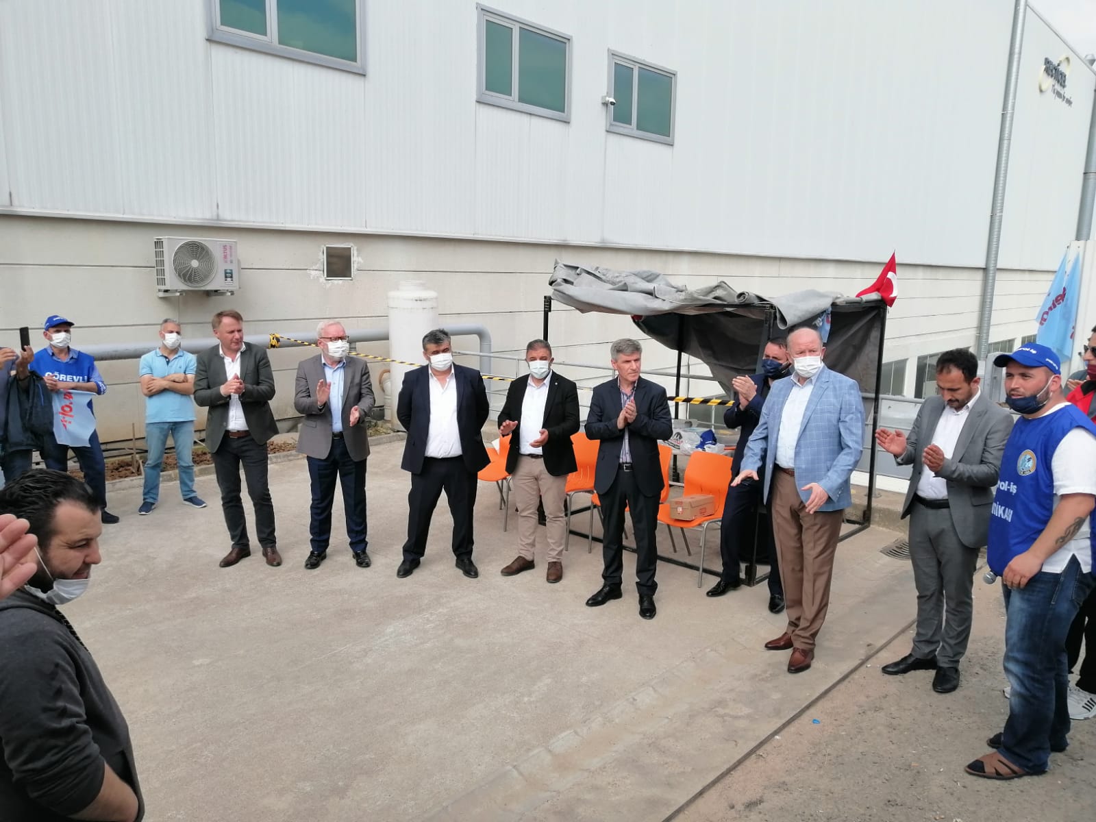 Tüm bu gelişmeler üzerine Recticel işyerinde 3 Haziran Perşembe günü başlayan grevimiz, coşkuyla devam ediyor. Bugün ise Genel Merkez Yöneticilerimiz grev alanına giderek üyelerimizle biraraya geldiler.  Merkez Yöneticilerimiz, fabrika önünde bekleyen üyelerimiz tarafından sloganlarla karşılandılar.
