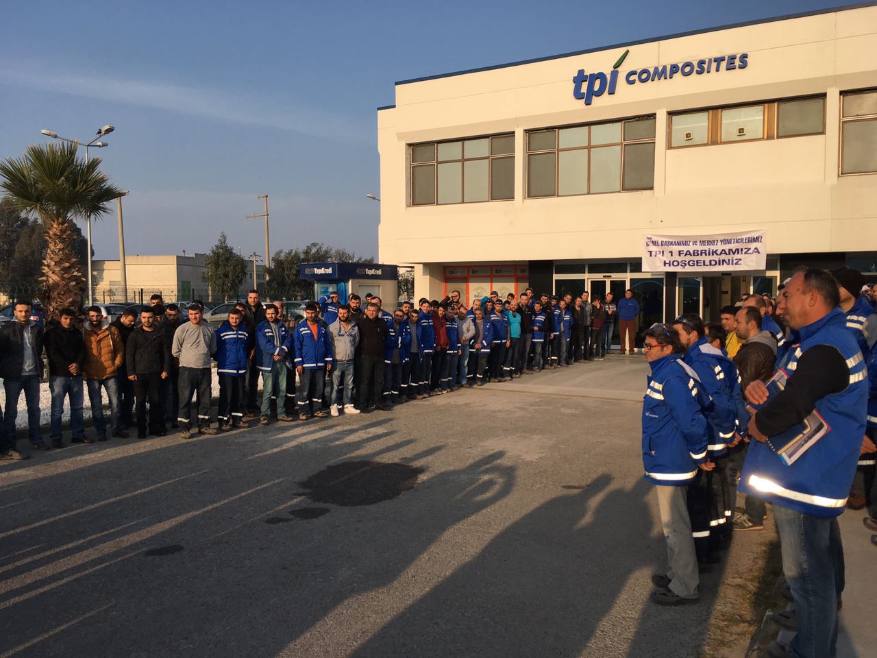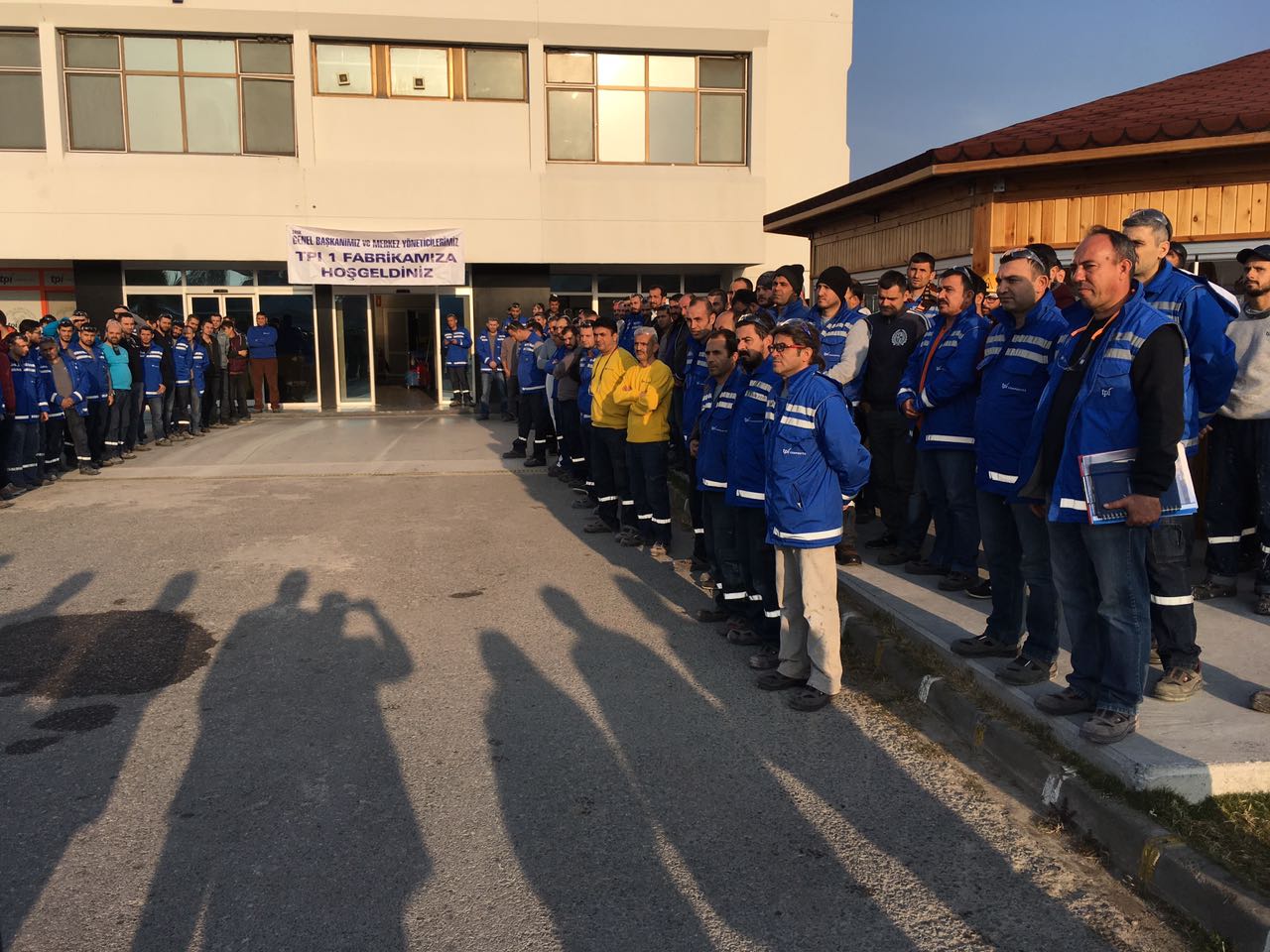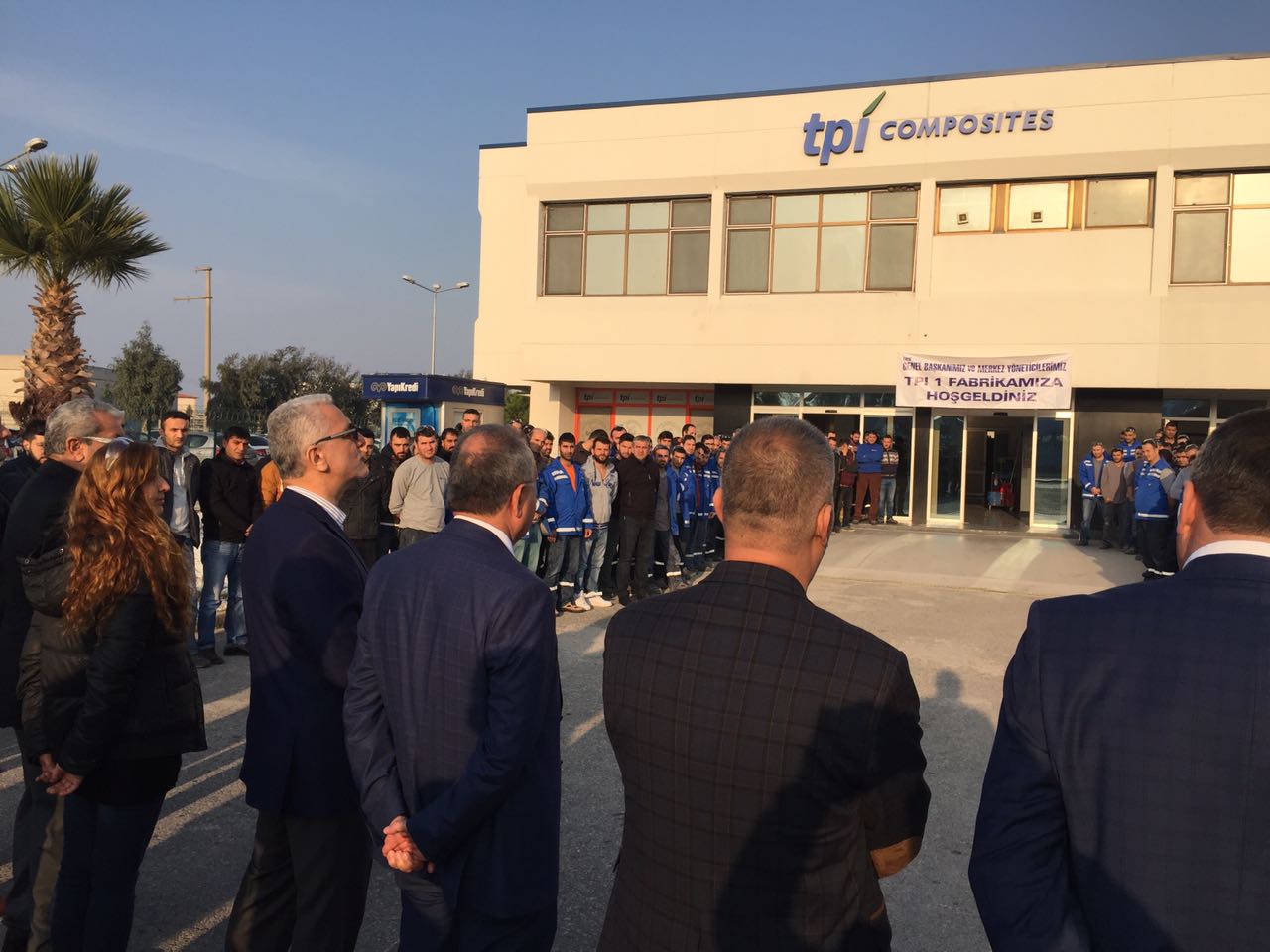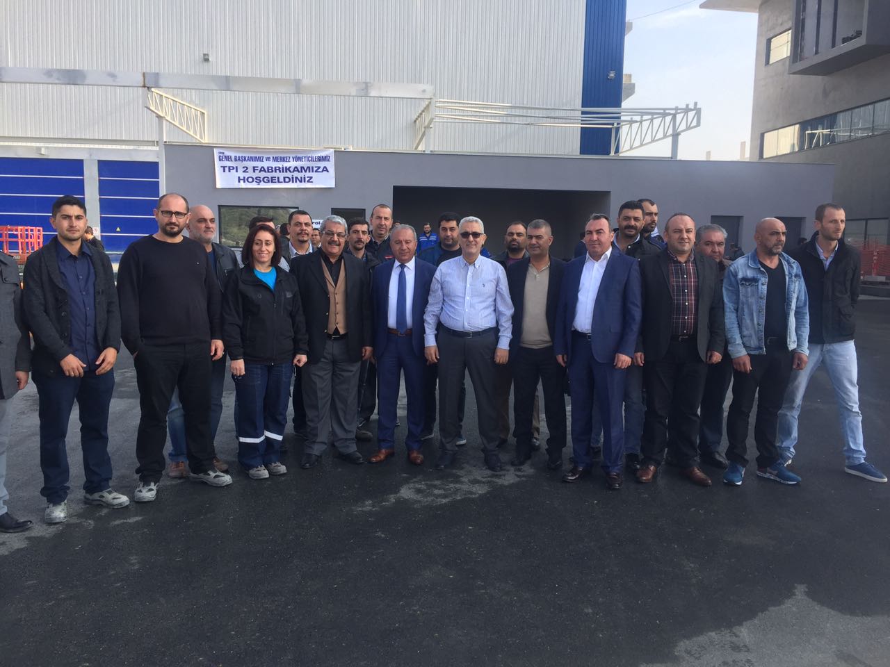 Genel Başkanımız Ali Ufuk Yaşar, Genel Sekreterimiz Ahmet Kabaca, Genel Mali Sekreterimiz Turgut Düşova, Genel Örgütlenme ve Eğitim Sekreterimiz Mustafa Mesut Tekik, İzmir Şube Başkanımız A.Gani Gündoğdu, Başkan Yardımcımız Orhan Zengin, Başkan Yardımcımız (Mali) Özgür Şadi ve işyerleri  temsilcilerimiz ile 23 Kasım Çarşamba günü TPI Kompozit 1 ve 2 işyerlerini ziyaret ederek üyelerimizle bir araya geldiler. Genel Başkanımız ve Merkez Yöneticilerimiz fabrika girişinde pankart ve çiçeklerle karşılandılar. Ardından fabrikayı gezen Merkez Yöneticilerimiz, üyelerimize sendikal gündem ve ülkedeki gelişmeler ile ilgili değerlendirmelerde bulundular ve yemekhanede öğle yemeği yediler.