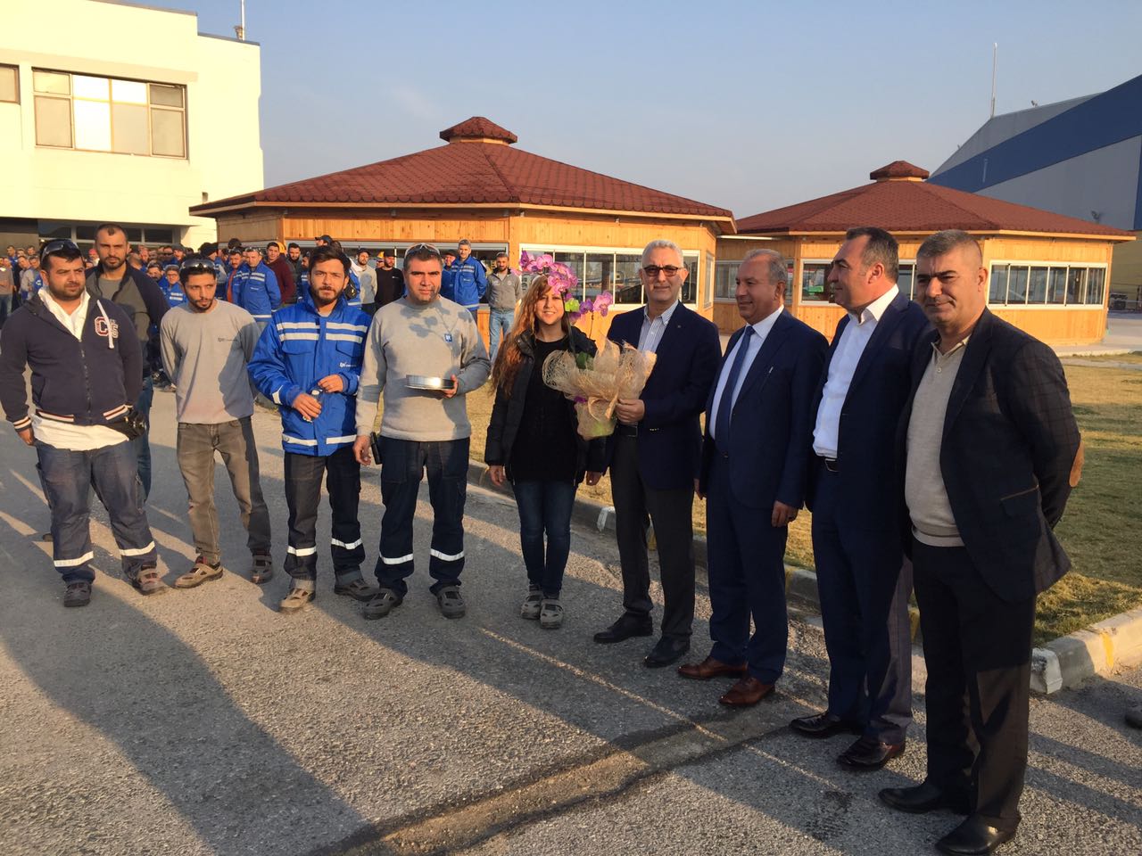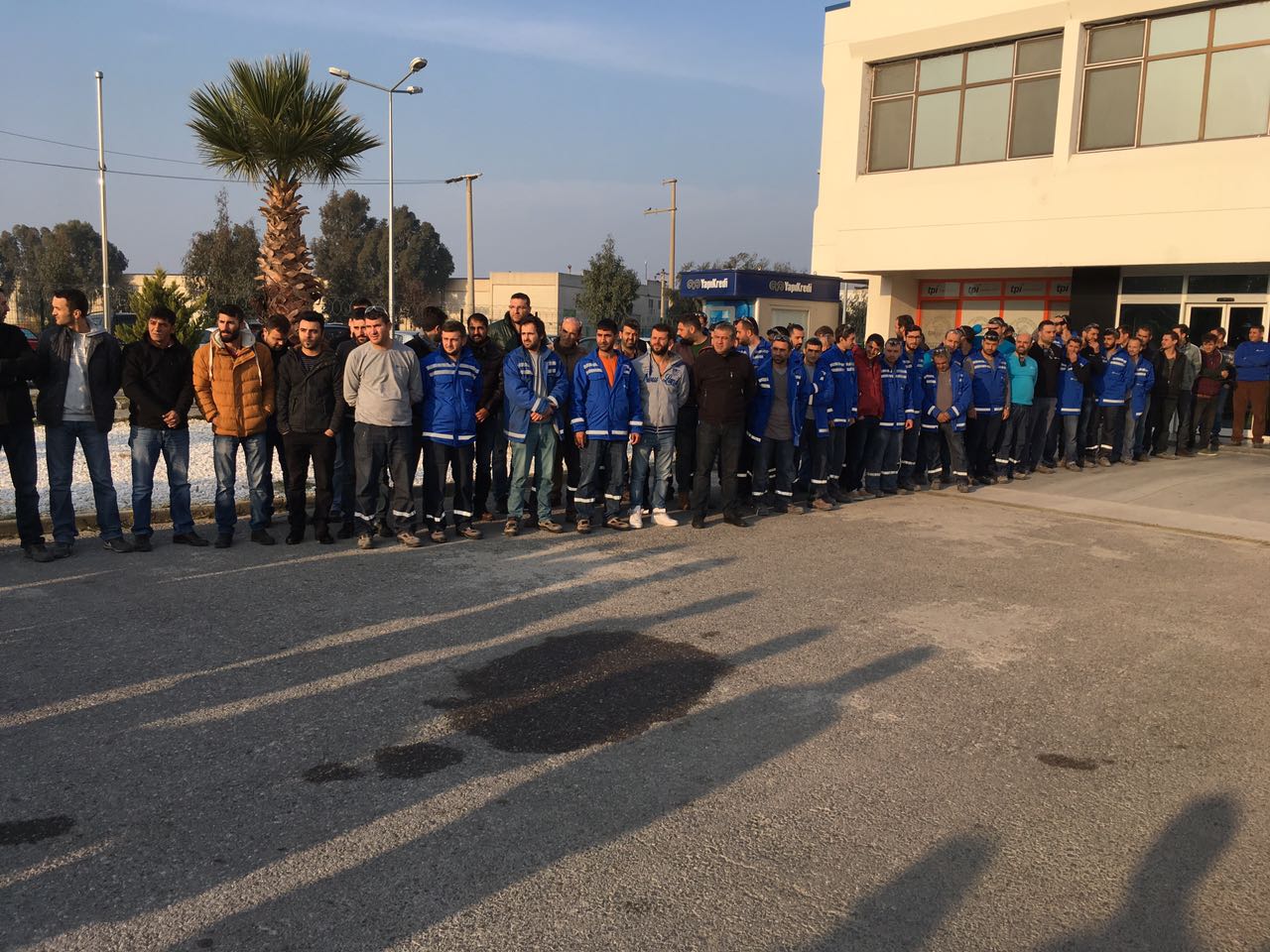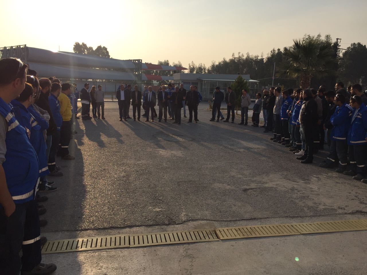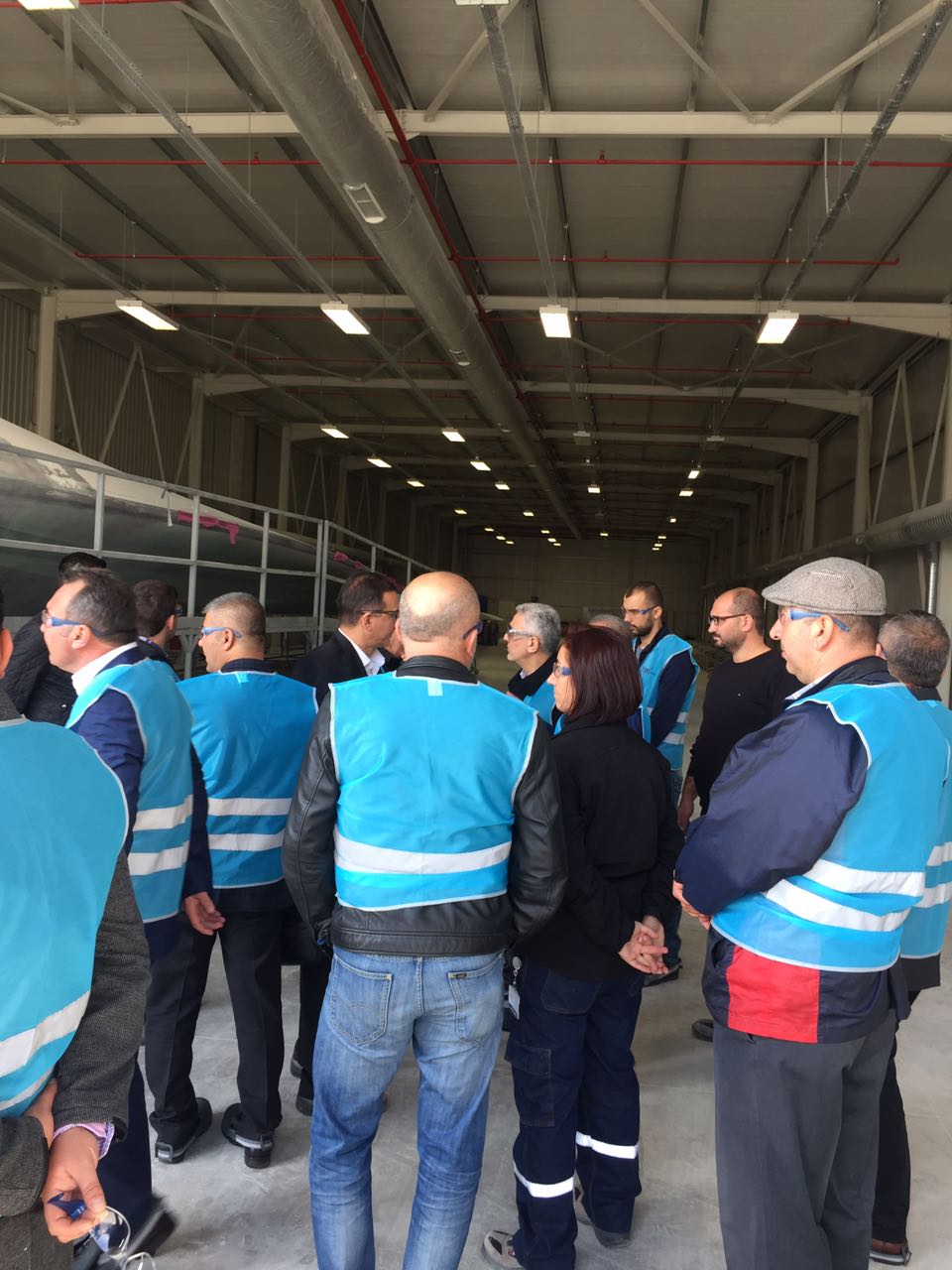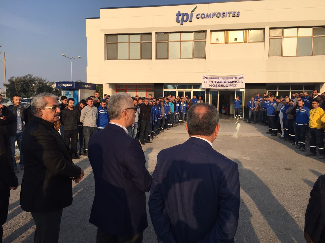 Genel Başkanımız Ali Ufuk Yaşar, Genel Sekreterimiz Ahmet Kabaca, Genel Mali Sekreterimiz Turgut Düşova, Genel Örgütlenme ve Eğitim Sekreterimiz Mustafa Mesut Tekik, İzmir Şube Başkanımız A.Gani Gündoğdu, Başkan Yardımcımız Orhan Zengin, Başkan Yardımcımız (Mali) Özgür Şadi ve işyerleri  temsilcilerimiz ile 23 Kasım Çarşamba günü TPI Kompozit 1 ve 2 işyerlerini ziyaret ederek üyelerimizle bir araya geldiler. Genel Başkanımız ve Merkez Yöneticilerimiz fabrika girişinde pankart ve çiçeklerle karşılandılar. Ardından fabrikayı gezen Merkez Yöneticilerimiz, üyelerimize sendikal gündem ve ülkedeki gelişmeler ile ilgili değerlendirmelerde bulundular ve yemekhanede öğle yemeği yediler.
