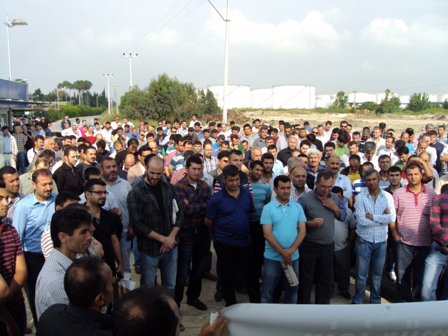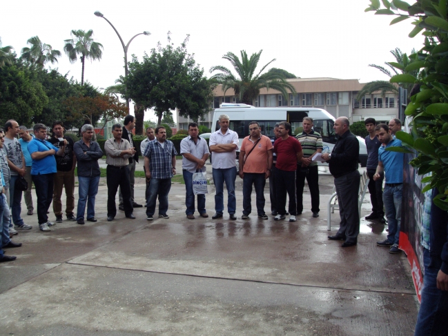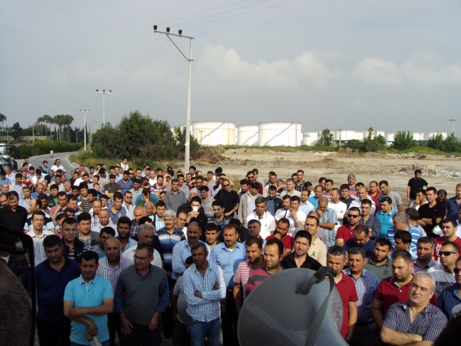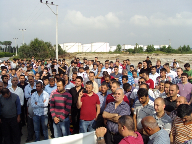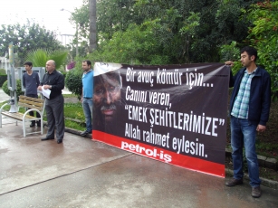 Mersin Şubemize bağlı Soda, Kromsan, Toros Tarım ve Ataş işyerlerinde Soma'da bir avuç kömür için şehit olan işçi kardeşlerimiz için saygı duruşu ve basın açıklaması gerçekleştirildi. Soma'da yaşananın kaza değil, cinayet olduğu bir kez daha haykırıldı. Açıklamada Soma'daki büyük facianın, ülkemizde yıllardır sürdürülen özelleştirme politikalarının, yaygınlaştırılan taşeronlarştırma uygulamalarının, işçi sağlığı ve iş güvenliği konusunu bir maliyet unsuru olarak gören anlayışın acı bir sonucu olduğu ve yaşananın faili belli bir cinayet olduğu ifade edildi. Sermaye yanlısı ekonomik politikaların iflasının ve ülkemizi bir emek cehennemine dönüştüğünün kanıtı olduğu dile getirildi. Soma'daki cinayetin, sermayenin daha fazla kâr elde etmek için, verimliliğin arttırılması ve rekabet gücü adına işçinin hayatını hiçe sayarak başvurulan tüm uygulamaların büyük bir suç olduğu vurgulandı.