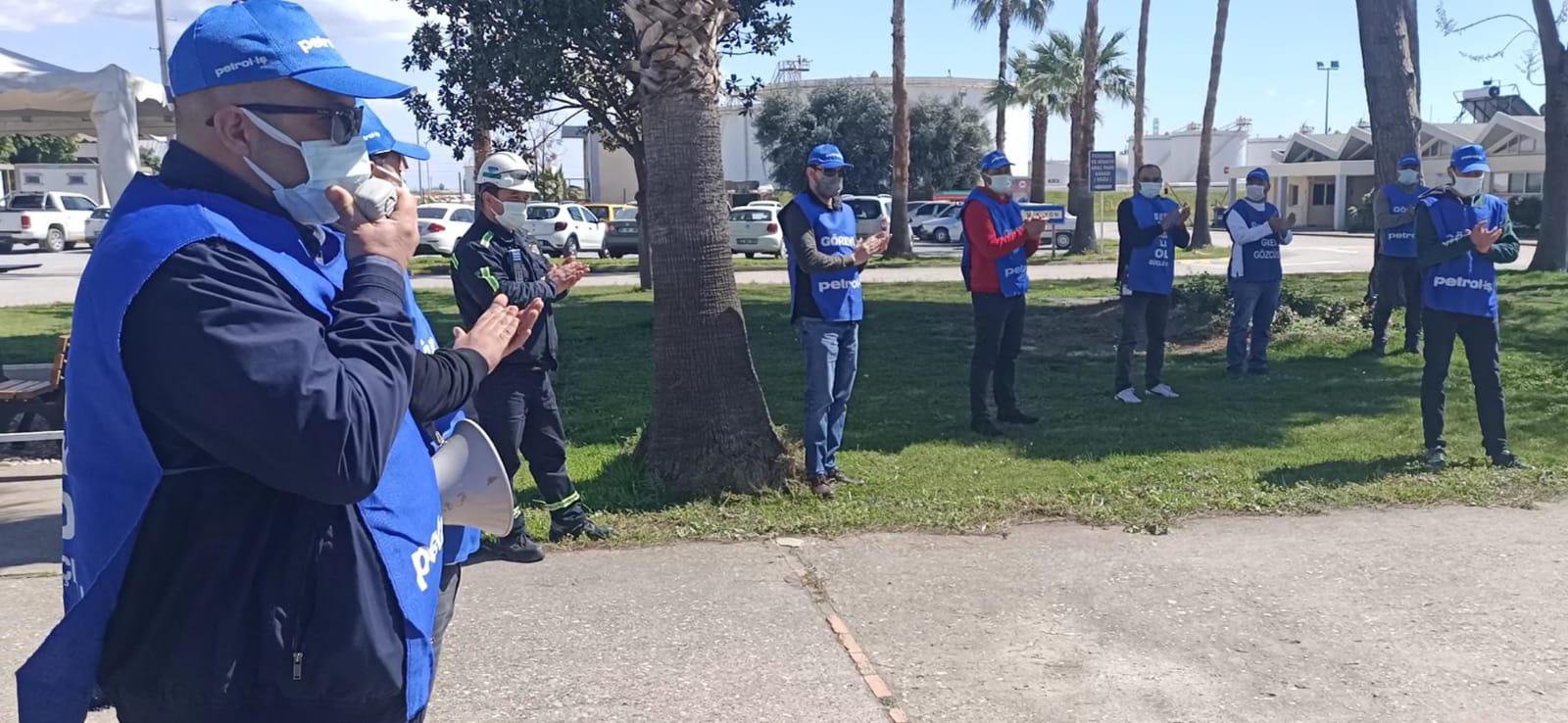 Açıklamanın arkasından çalışan arkadaşlarımız baretlerini Terminal Müdürlüğü önüne bırakarak iş barışının devam ettirilmesi gerektiğini sloganlar eşliğinde duyurdular.