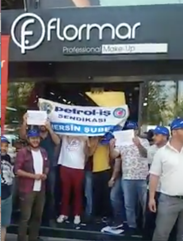 Mersin Şubemiz 29 Mayıs tarihinde sendikalaştıkları için işten atılan ve Gebze’de direnişte olan Flormar işçilerine destek amaçlı eylem yaptı. Üyelerimiz Mersin’de Flormar mağazasına giderek sloganlar atarak bildirilerini dağıttı.
