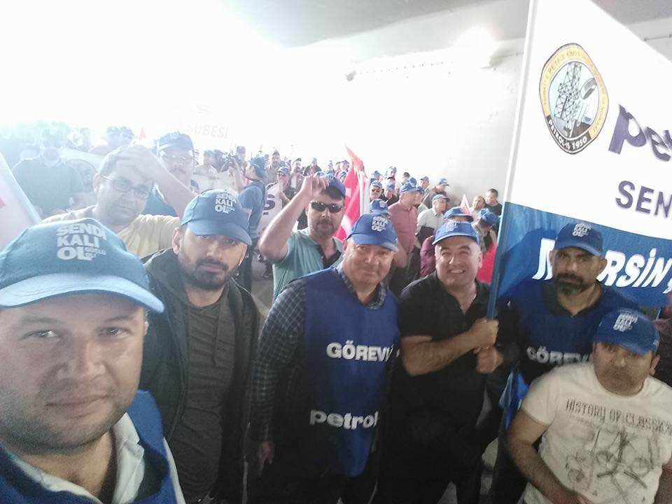 Bu yıl 1 Mayıs kutlamalarına Ankara, Adıyaman, Adana, Bursa, Kırıkkale, Kocaeli, İstanbul 1 Nolu Şube, İstanbul 2 Nolu ve Mersin şube yöneticilerimiz ve üyelerimizle kitlesel bir biçimde katılan Petrol-İş Sendikası’nı, merkez yönetim düzeyinde Genel Başkanımız Ali Ufuk Yaşar, Genel Sekreterimiz Ahmet Kabaca temsil ettiler.