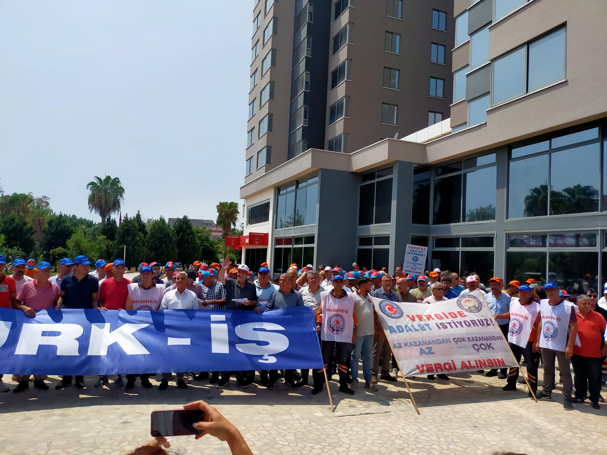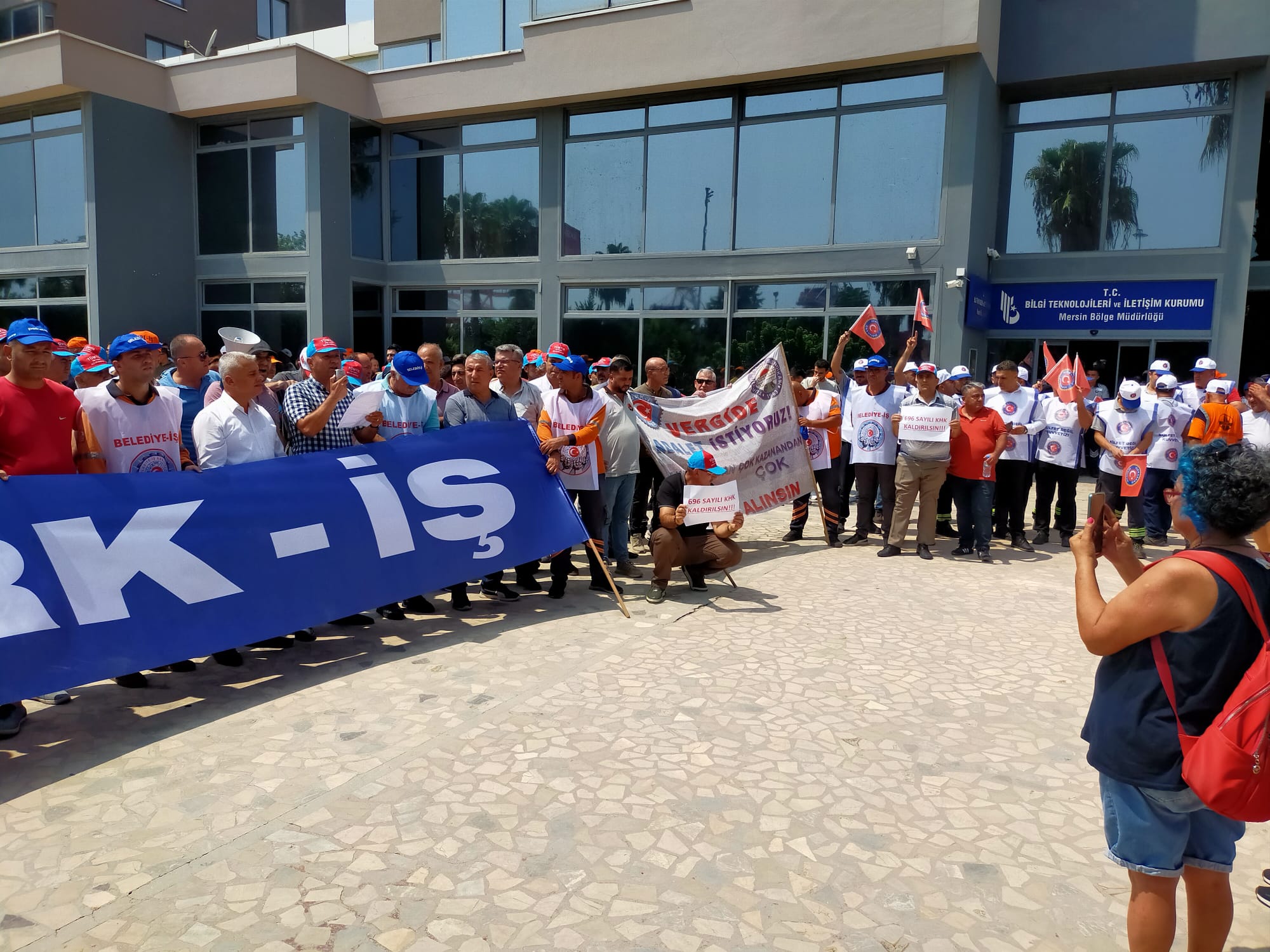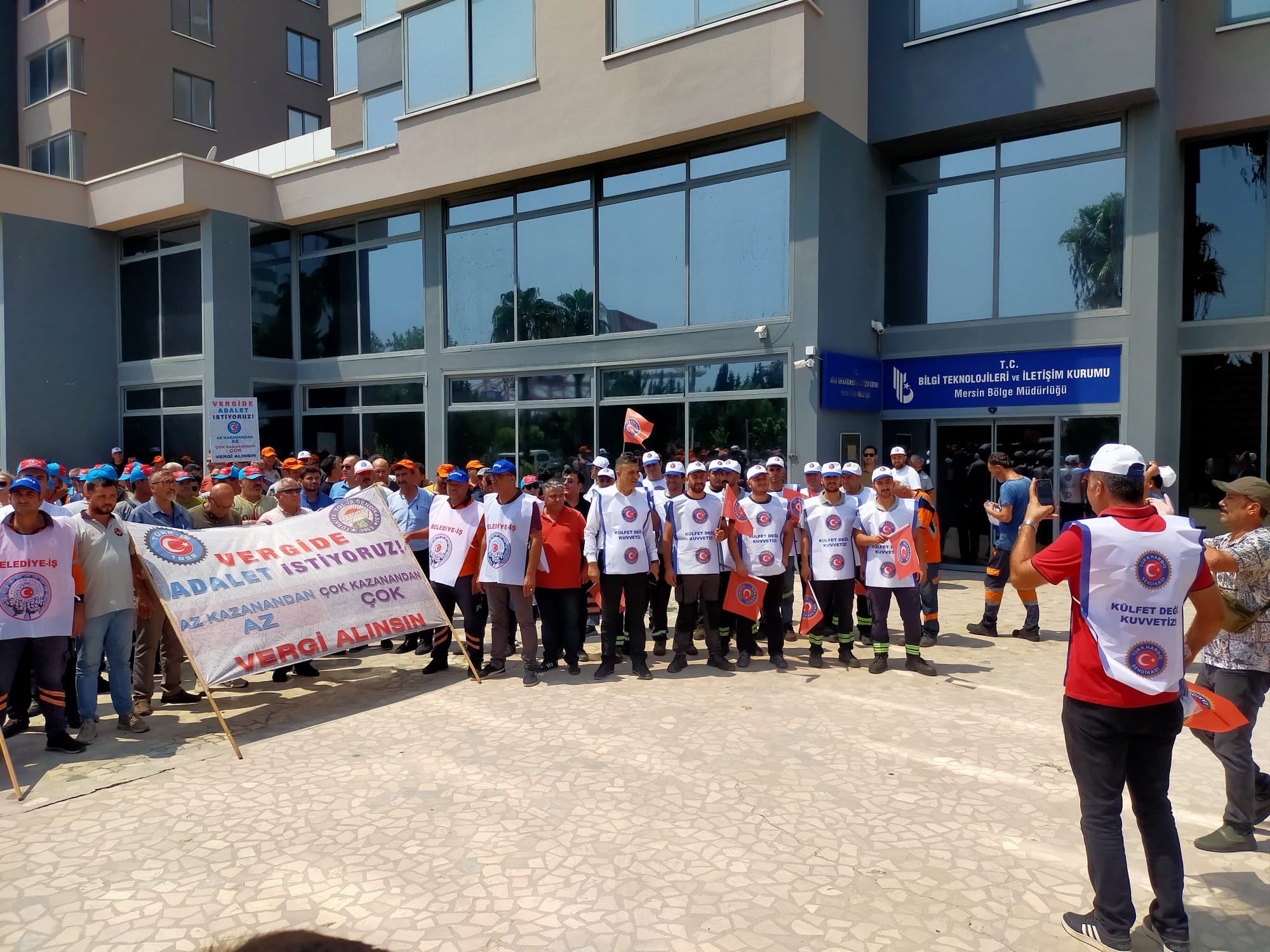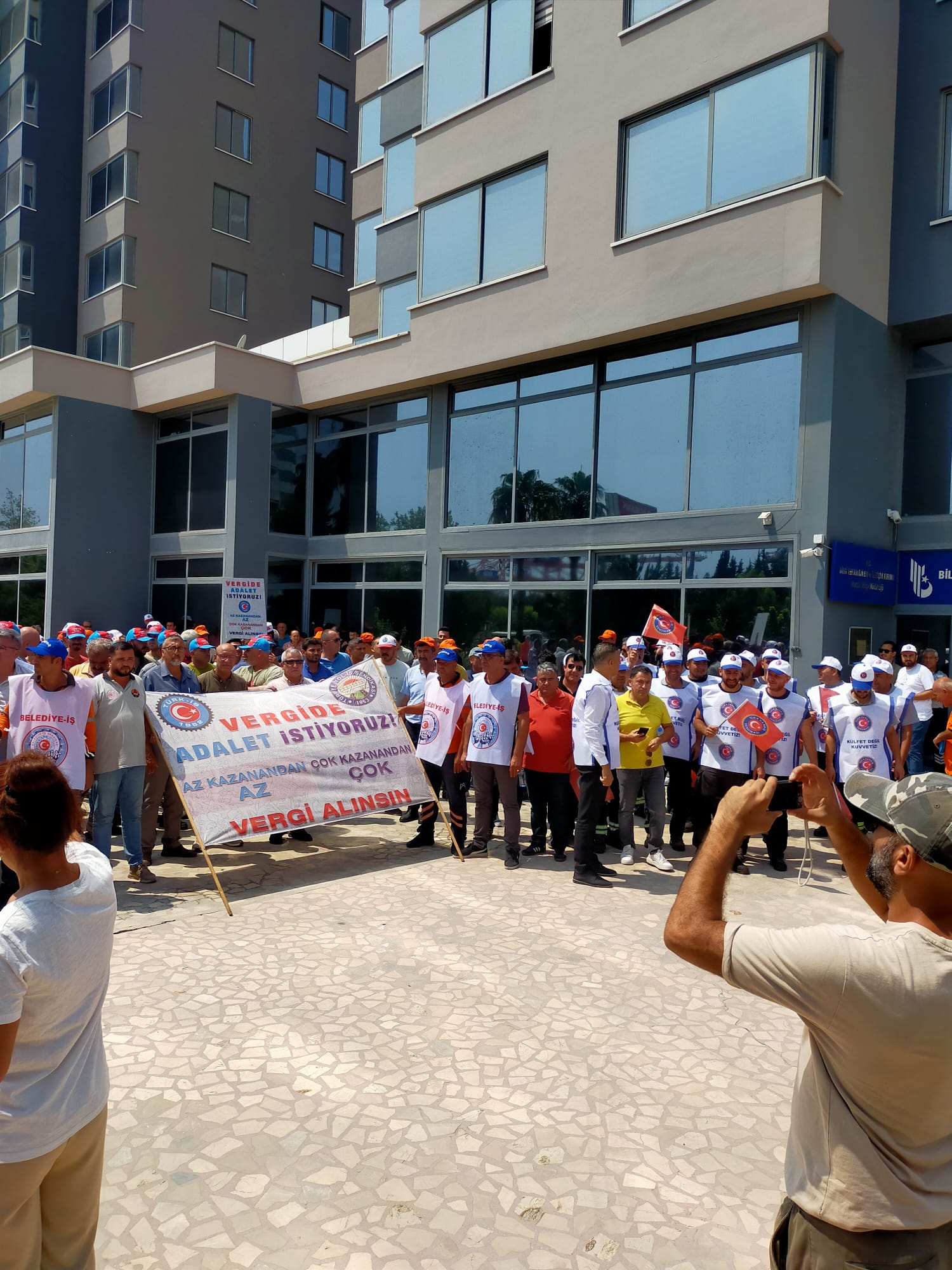 Mersin’de, Türk-İş Mersin İl Temsilciliği önünde yapılan basın açıklamasına, Türk-İş’e bağlı sendikaların yönetici ve üyeleri ile sendikamız Mersin Şube Yönetimi ve şubemizde örgütlü temsilci ve üyelerimiz katıldı. Öğlen 12.30’da yapılan basın açıklamasında emekçilerin vergide adalet, yüksek enflasyon, hayat pahalılığı başta olmak üzere emekçilerin gündemindeki sorunlar dile getirildi, talepler bir kez daha yinelendi. Basın açıklaması örgütlenme ve mücadele vurgusuyla sona erdi.